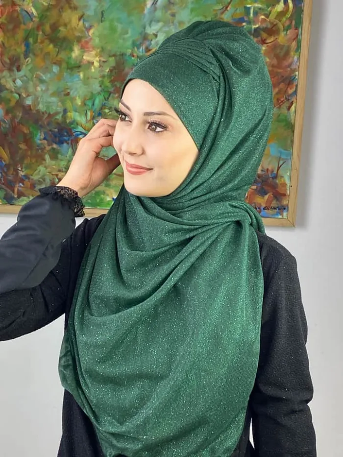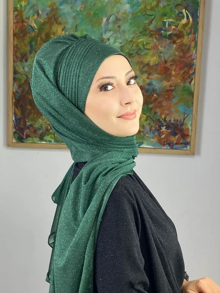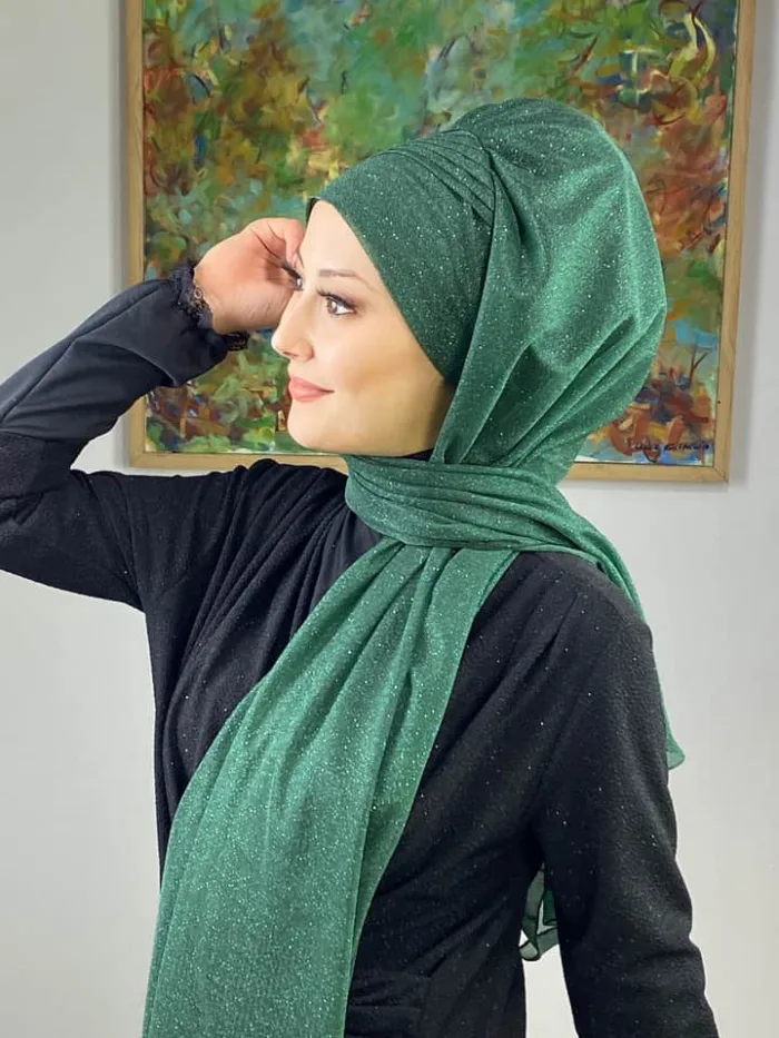 Zenginliğin ve ihtişamın rengi… Saray Model Simli Yan Drapeli Şal – Yakut Yeşili, her adımda sizden önce parlar. Yeşilin en derin ve en değerli tonlarından biri olan yakut yeşili, özel günlerin vazgeçilmez stil detayı olarak modadaki iddiasını ortaya koyar. Simli yüzeyi ışığı en zarif şekilde yakalayarak, tüm kombinlere doğal bir asalet katar.