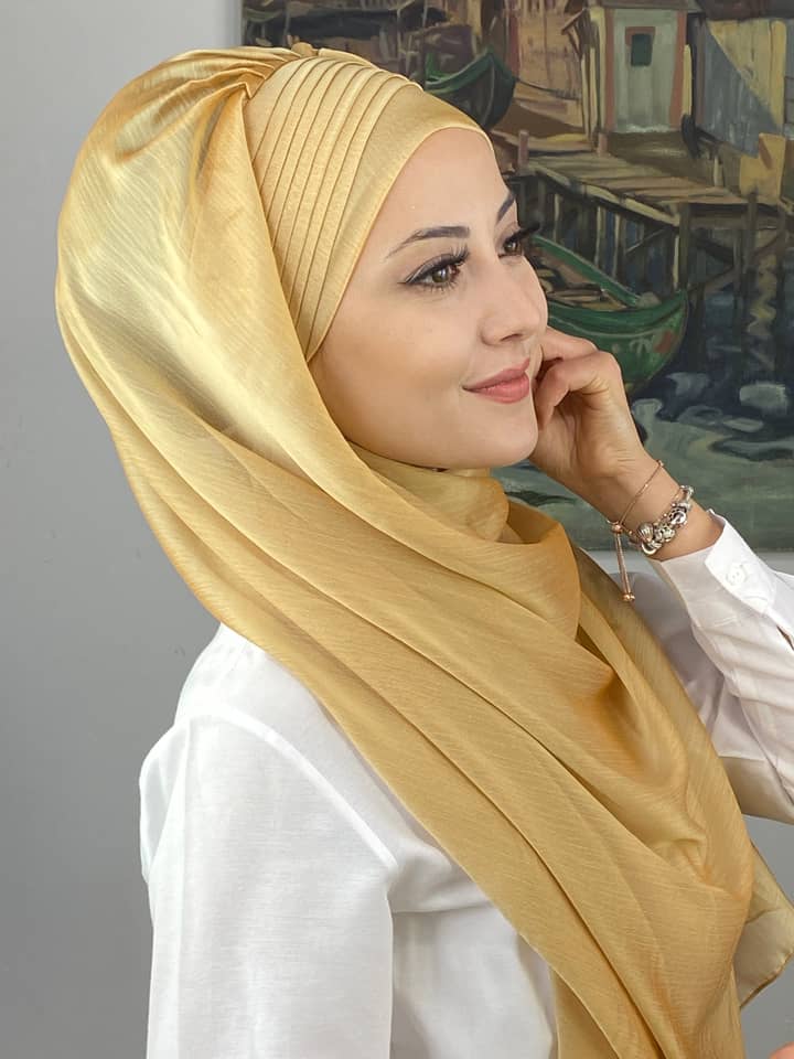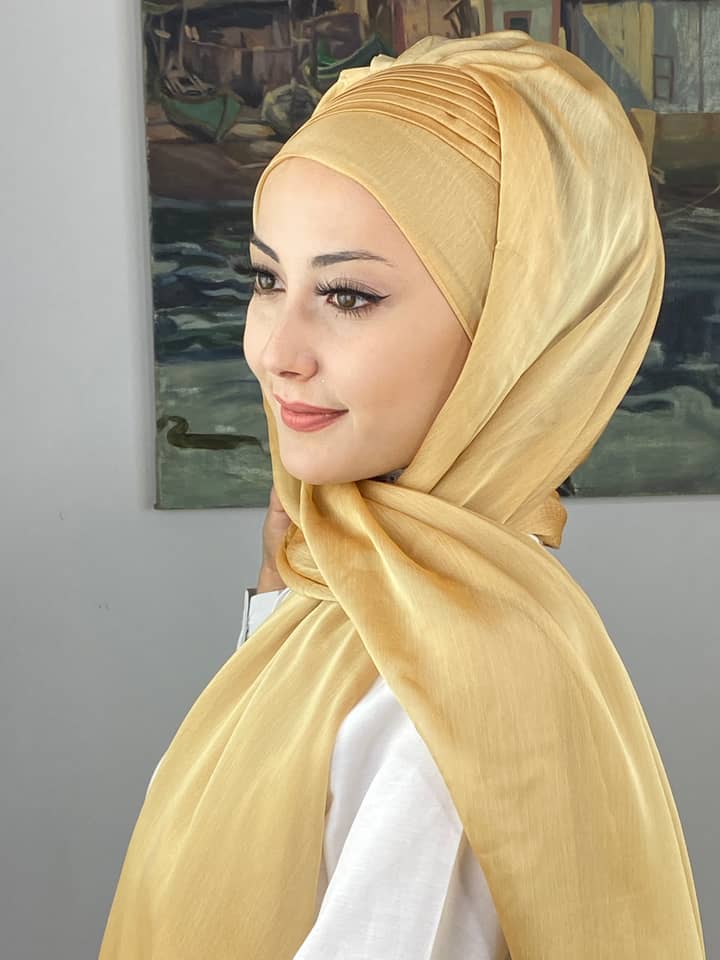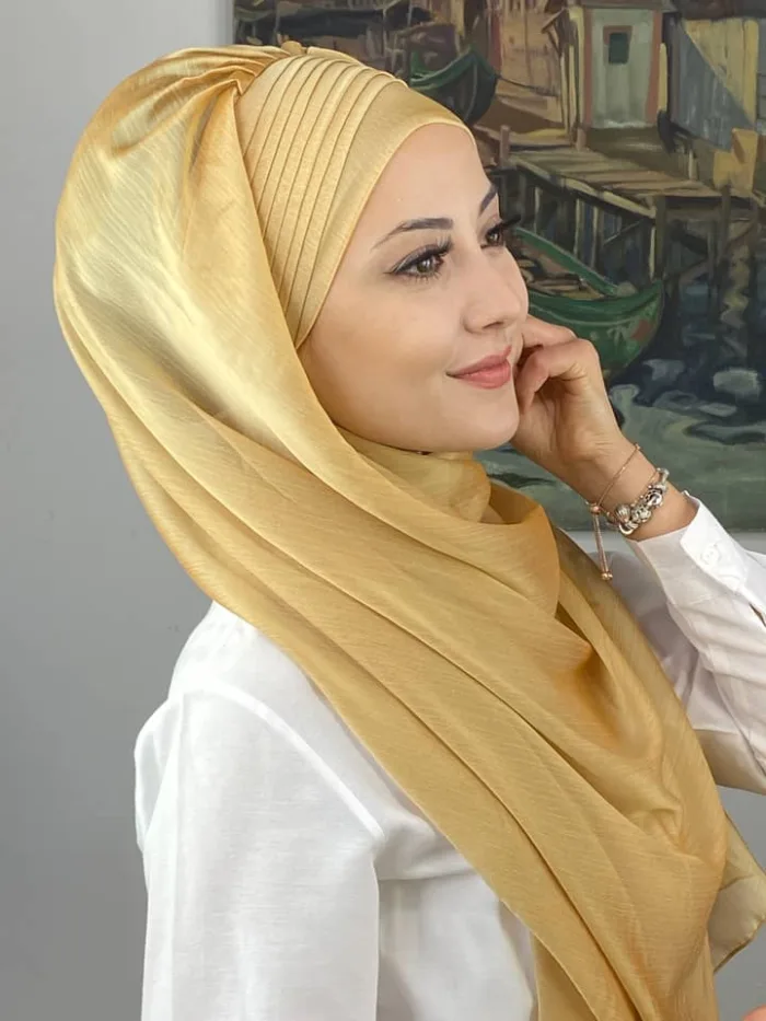 Saray Model Yan Drapeli Fransız Şifon Hazır Şal – Altın, özel günlerde lüks ve zarafeti bir araya getirir. Altın rengin sıcak ve ışıltılı tonu, simli Fransız şifon ile birleşerek abiye kombinlerde göz alıcı bir son dokunuş sağlar. Yan drapeli tasarım, yüz hatlarını toplar ve şalın başta kusursuz duruş sağlamasına yardımcı olur. Işıltılı detaylar ışıkla buluştuğunda tüm bakışları üzerinize çeker.