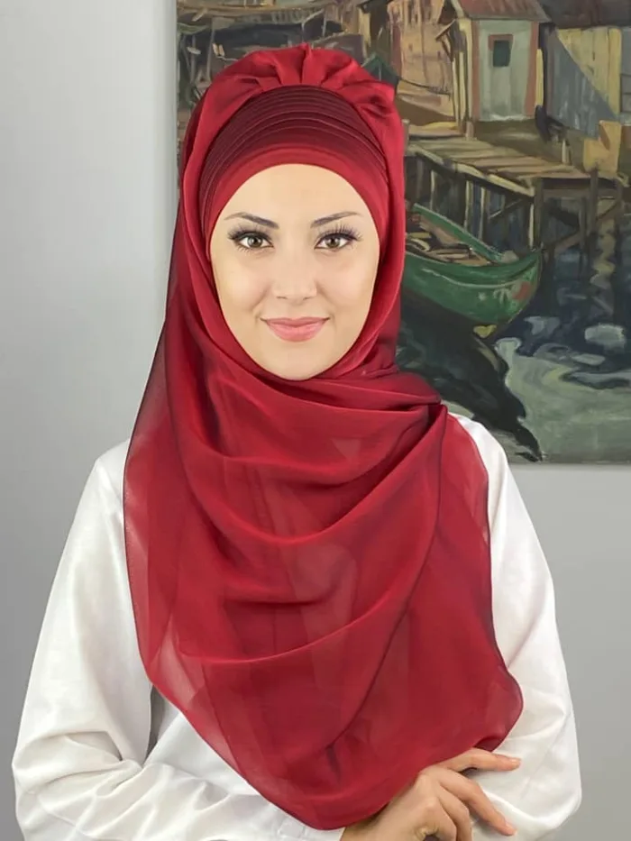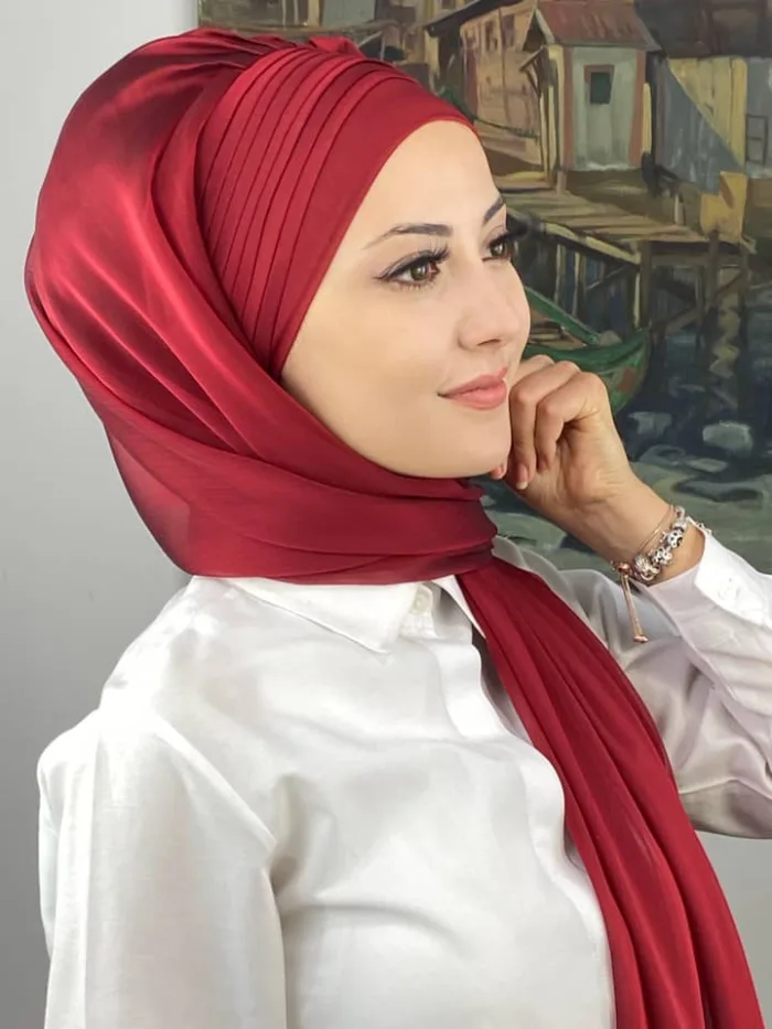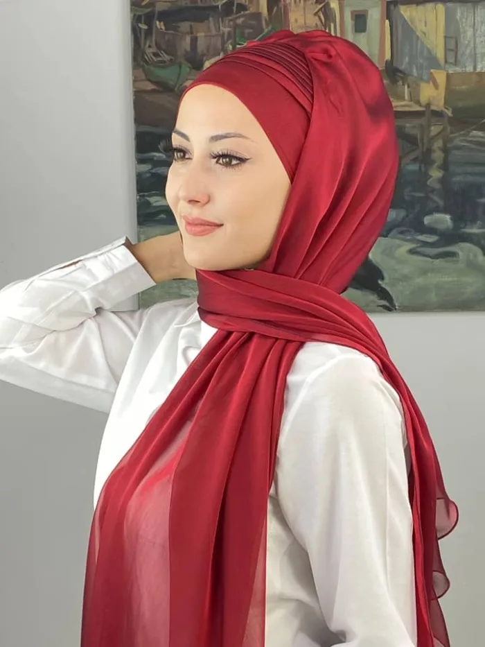 Saray Model Yan Drapeli Fransız Şifon Hazır Şal – Kırmızı; göz alıcı, güçlü ve dikkat çeken bir stilin en etkili tamamlayıcılarından biridir. Kırmızının etkileyici gücünü şifonun akışkan dokusuyla buluşturarak hem romantik hem de iddialı bir görünüm oluşturur. Yan drape tasarımıyla yüz hatlarını daha uzun ve ince gösterir, modern bir form kazandırır. Abiye kombinlerinize eşsiz bir dokunuş sağlayan bu hazır şal, özellikle özel günlerde fark yaratmak isteyen kadınlar için tasarlanmıştır.