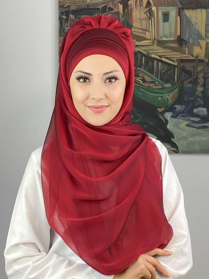 Saray Model Yan Drapeli Fransız Şifon Hazır Şal – Bordo