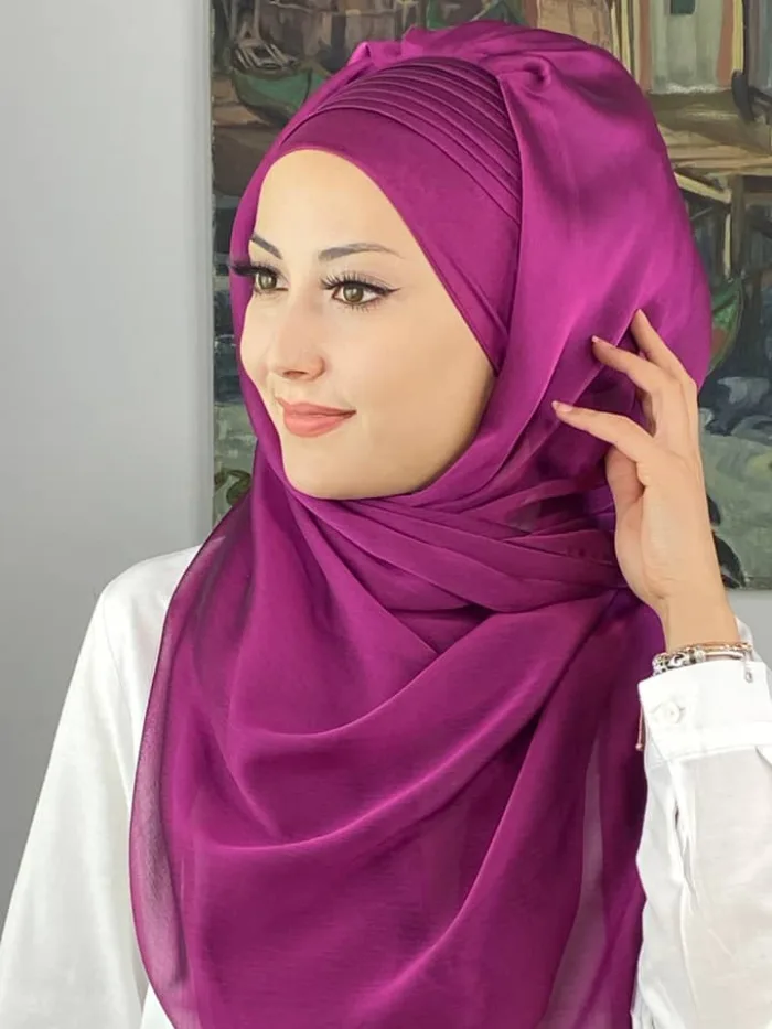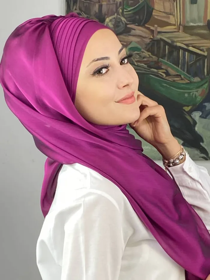 Saray Model Yan Drapeli Fransız Şifon Hazır Şal – Fuşya, özel günlerde enerjik ve göz alıcı bir şıklık sunar. Fuşya rengin canlı ve feminen havası, simli Fransız şifon ile birleşerek abiye kombinlerde zarif ve dikkat çekici bir son dokunuş sağlar. Yan drapeli tasarım, yüz hatlarını toplar ve şalın başta kusursuz duruş sağlamasına yardımcı olur. Işıltılı detaylar ışıkla buluştuğunda tüm bakışlar üzerinize çevrilir.