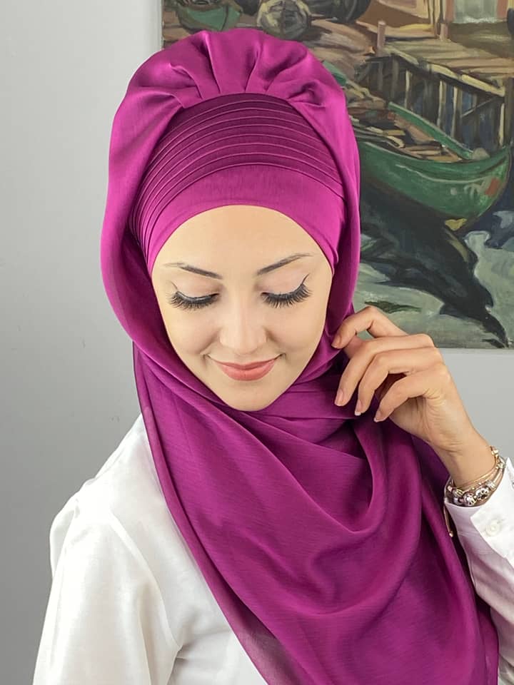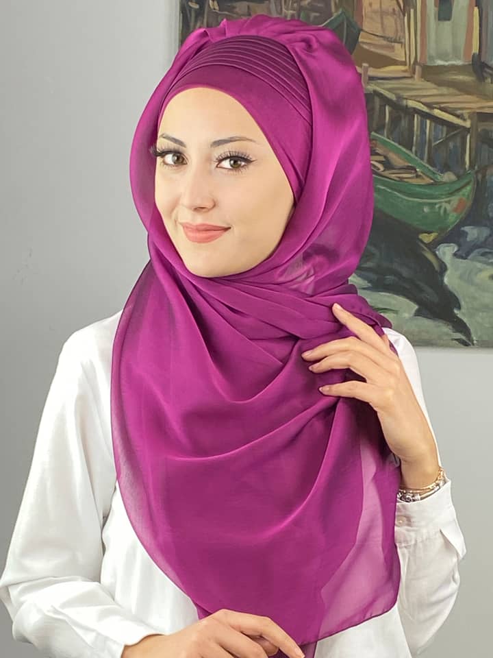 Saray Model Yan Drapeli Fransız Şifon Hazır Şal – Fuşya, gardırobunuzda mutlaka bulunması gereken enerjik ve göz alıcı bir parçadır.