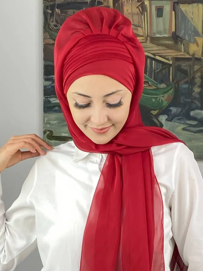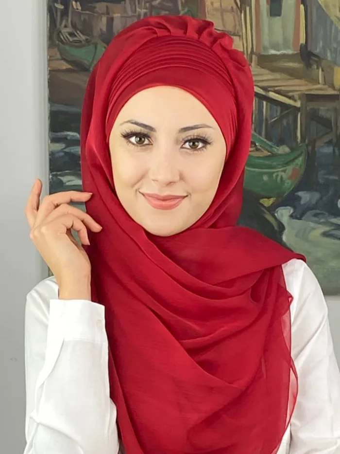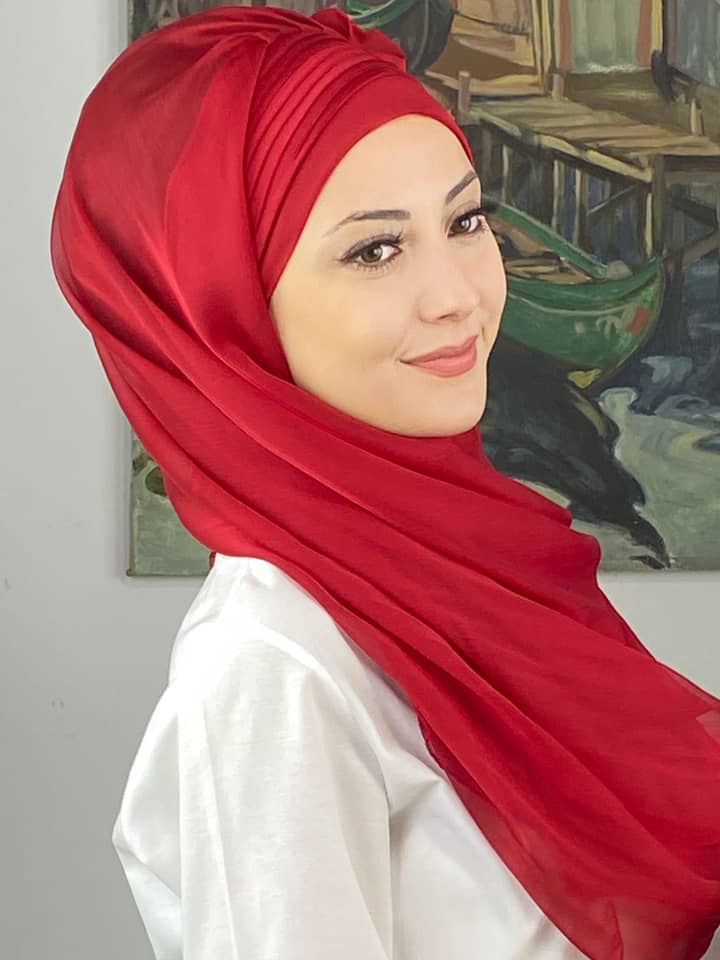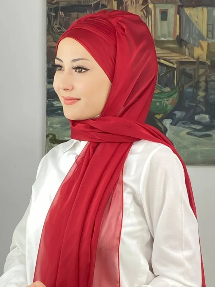 Saray Model Yan Drapeli Fransız Şifon Hazır Şal – Kırmızı; göz alıcı, güçlü ve dikkat çeken bir stilin en etkili tamamlayıcılarından biridir. Kırmızının etkileyici gücünü şifonun akışkan dokusuyla buluşturarak hem romantik hem de iddialı bir görünüm oluşturur. Yan drape tasarımıyla yüz hatlarını daha uzun ve ince gösterir, modern bir form kazandırır. Abiye kombinlerinize eşsiz bir dokunuş sağlayan bu hazır şal, özellikle özel günlerde fark yaratmak isteyen kadınlar için tasarlanmıştır.