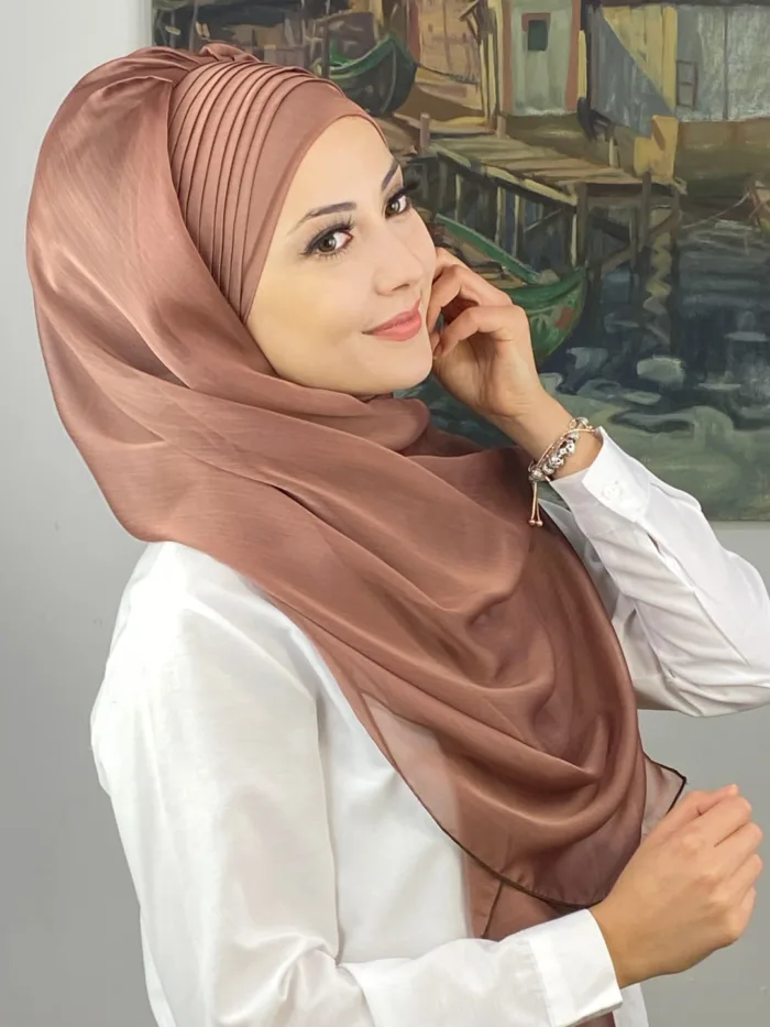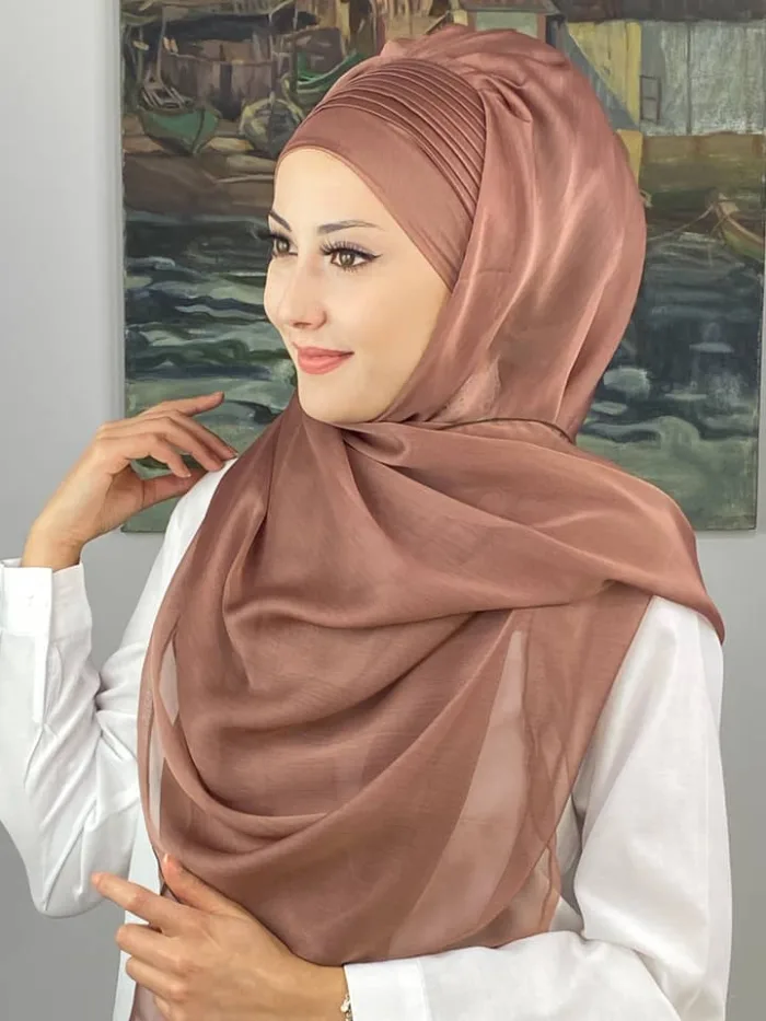 Hafif ve akışkan kumaşı, kaymayı engelleyen iç formu ve terletmeyen yapısıyla gün boyu konforlu kullanım sunar. Şal, her yüz tipi ve abiye kombinle uyumlu olacak şekilde tasarlanmıştır. Taşlı veya sade abiyelerle kombinlendiğinde estetik ve fonksiyonel bir kullanım sağlar.