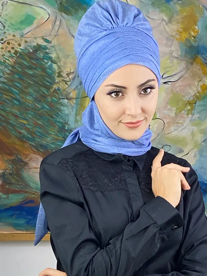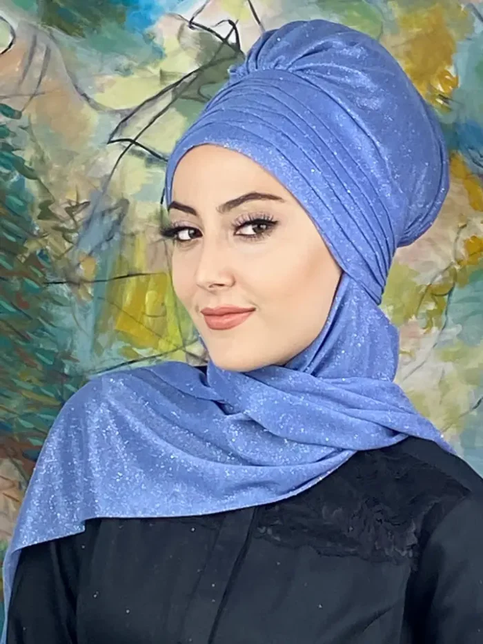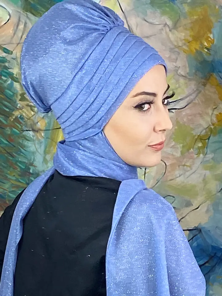 Bebe mavisi şıklığını yakalamak için Simli Atkılı Bone Şal – Bebe Mavisi’yi hemen sipariş edin!