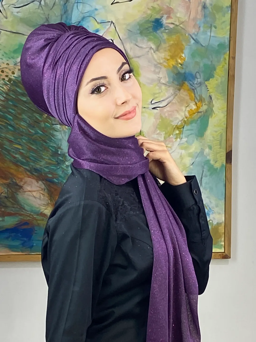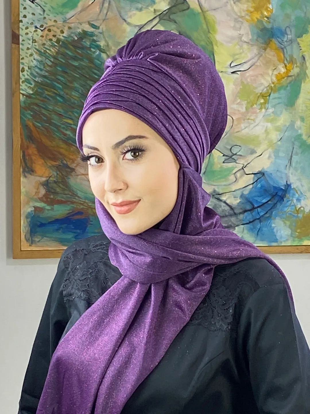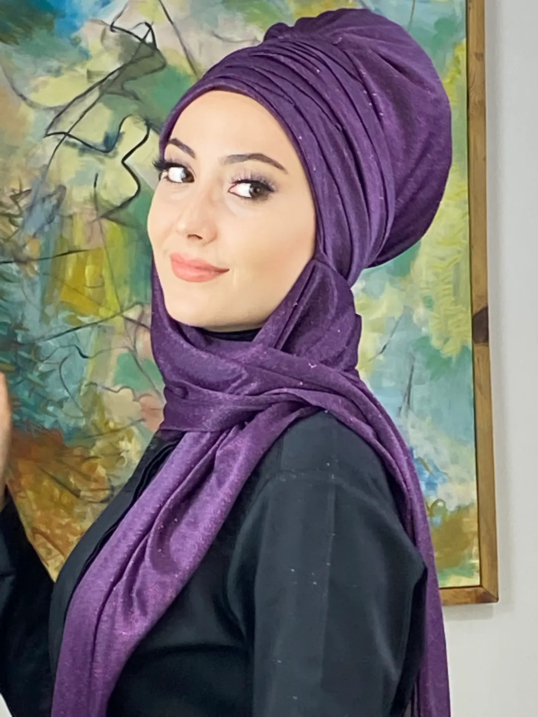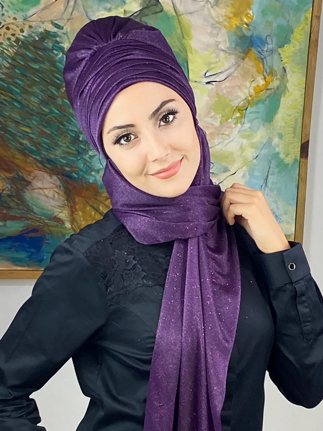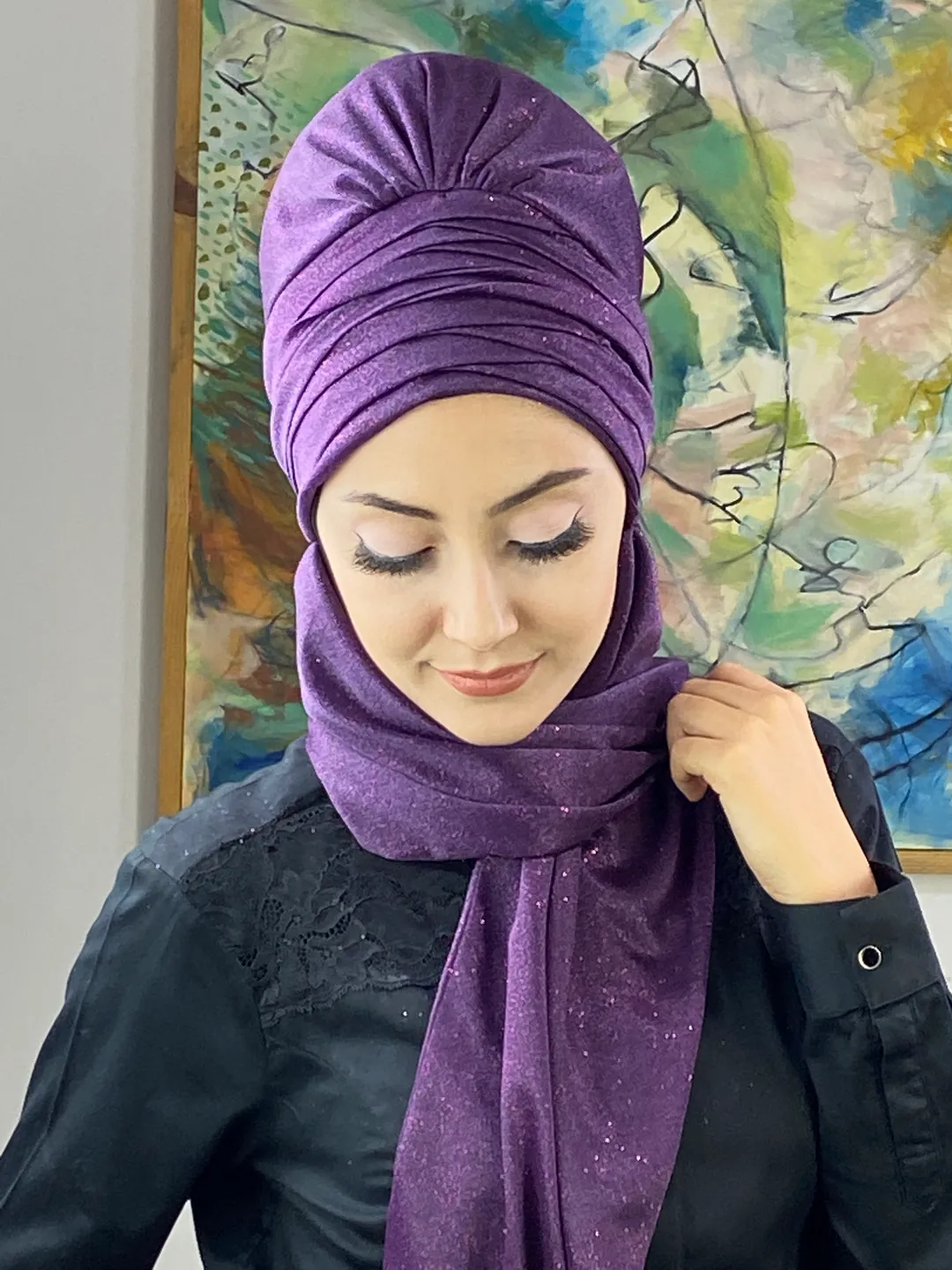 Simli Atkılı Abiye Tesettür Bone – Mor Zarafeti