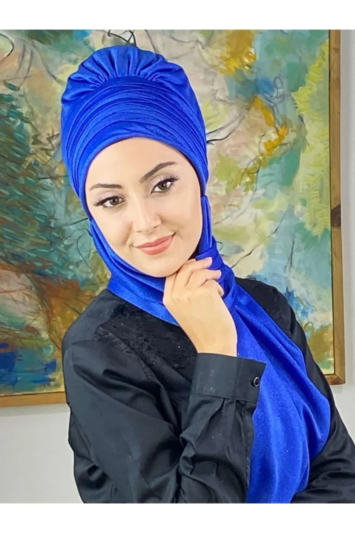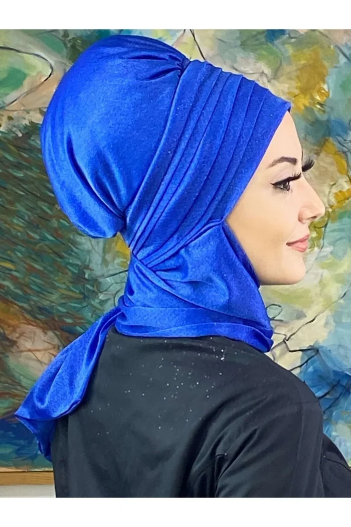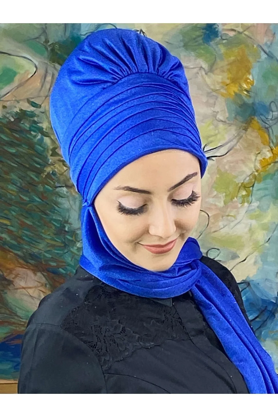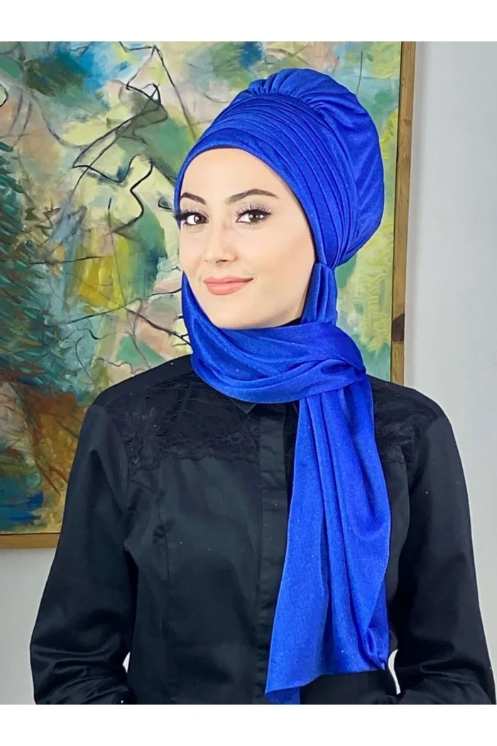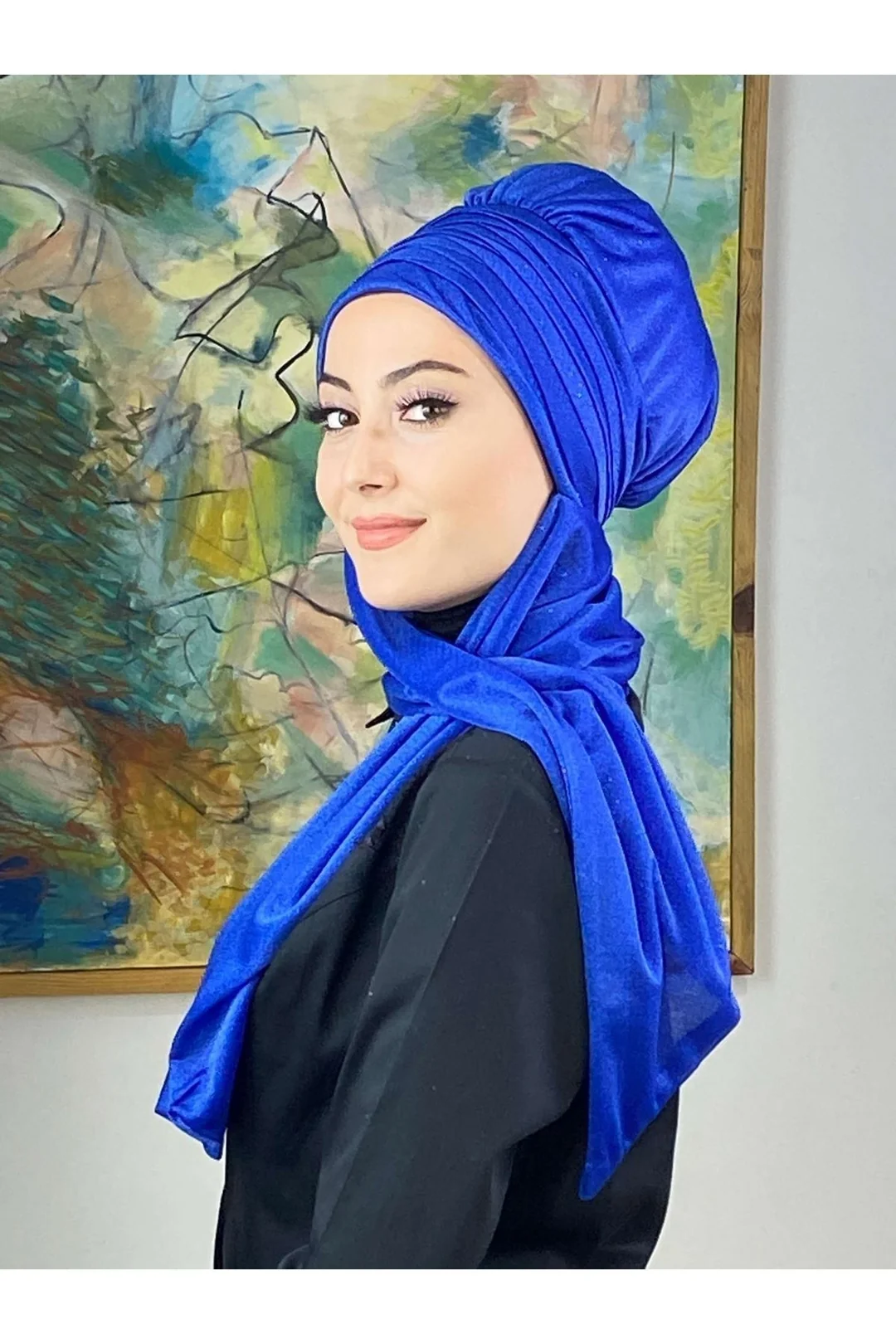 Simli Saks Mavi Atkılı Abiye Tesettür Bone