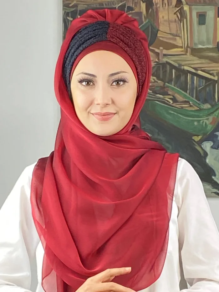 Sultan Büzgülü Oskar Fransız Şifon Hazır Şal – Bordo / Lacivert, klasik lacivertin derinliğini bordonun sıcak enerjisiyle birleştirir. Bu renk birlikteliği, asil bir duruşun yanı sıra zarif bir modernlik sunar. Özellikle kış ve sonbahar kombinlerinde göz alıcı bir etki yaratır.