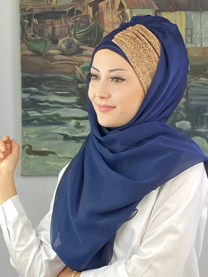Lacivertin klasik havası, sütlü kahvenin yumuşak sıcaklığıyla birleşerek zarif bir kontrast oluşturur. Sultan Büzgülü Oskar Fransız Şifon Hazır Şal – Lacivert / Sütlü Kahve, hem klasik hem de casual tarzlara uyum sağlayan nadir modellerdendir. Bu zarif renk geçişi, sadelikten vazgeçmeyen ama detaylarda fark yaratmak isteyen kadınlar için özel olarak tasarlanmıştır.