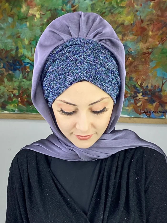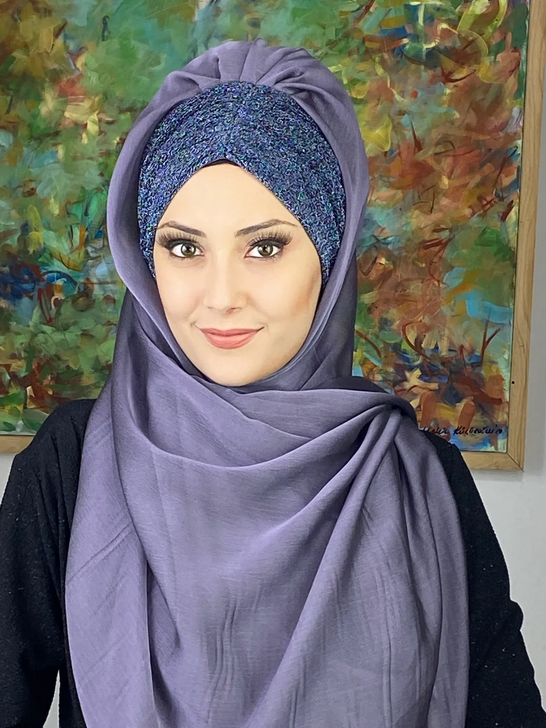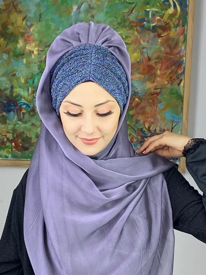 Sultan Model Fransız Şifon Büzgülü Şal – Lila 💜