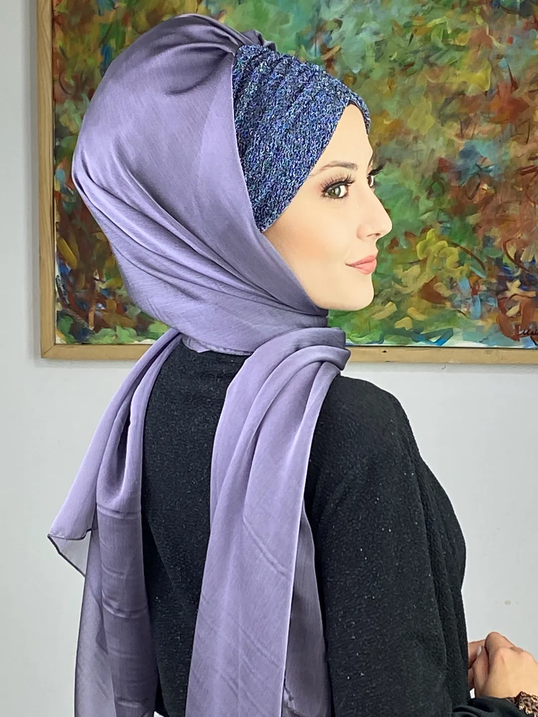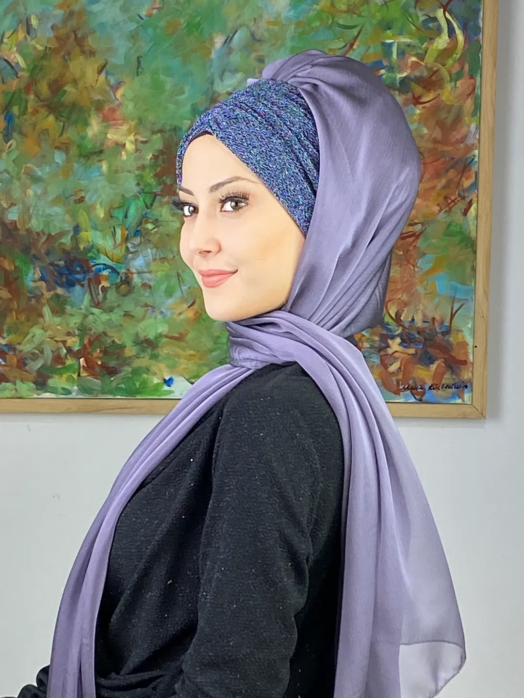 Sultan Model Fransız Şifon Büzgülü Şal – Lila