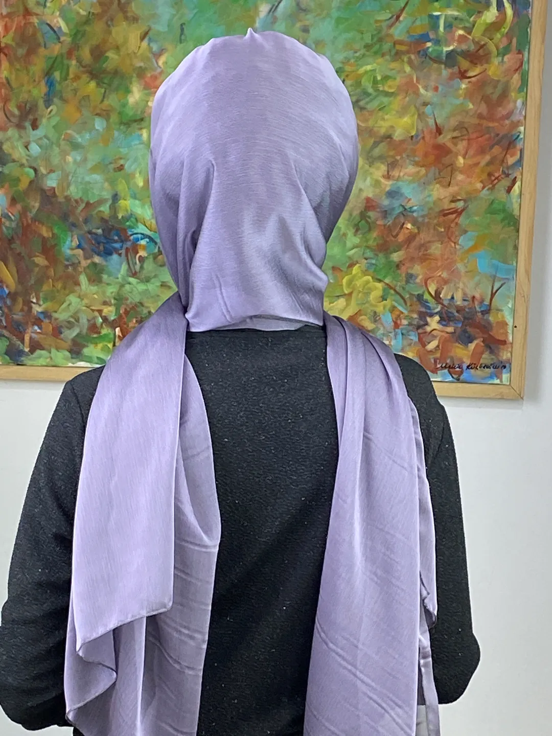 Sultan Model Fransız Şifon Büzgülü Şal – Lila, pastel tonuyla taze, zarif ve romantik bir görünüm sunar.