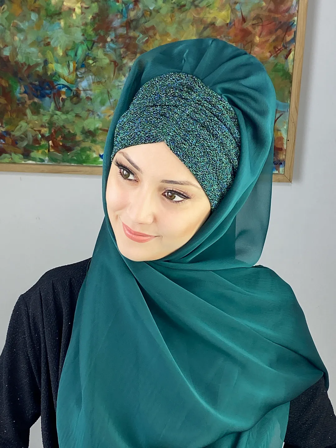 Sultan Model Fransız Şifon Büzgülü Şal – Zümrüt Yeşili