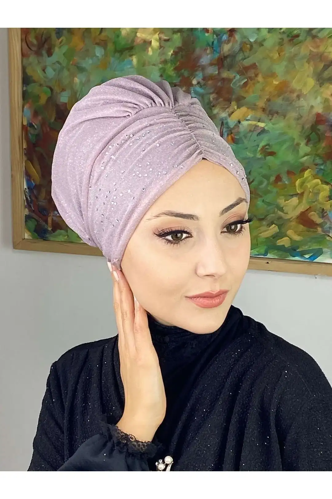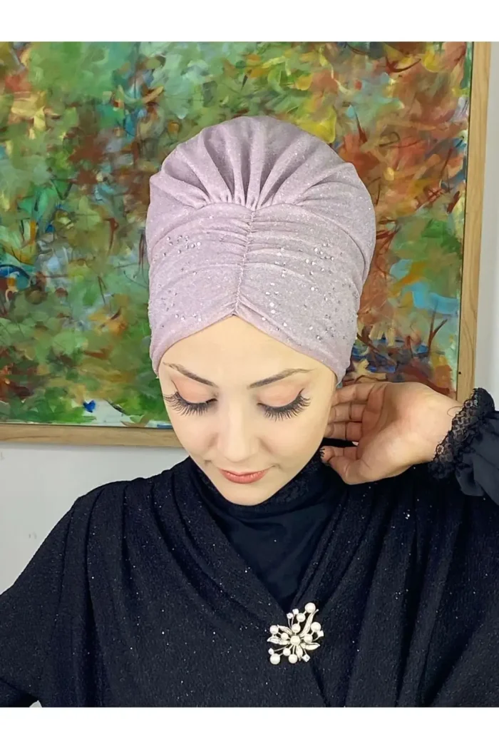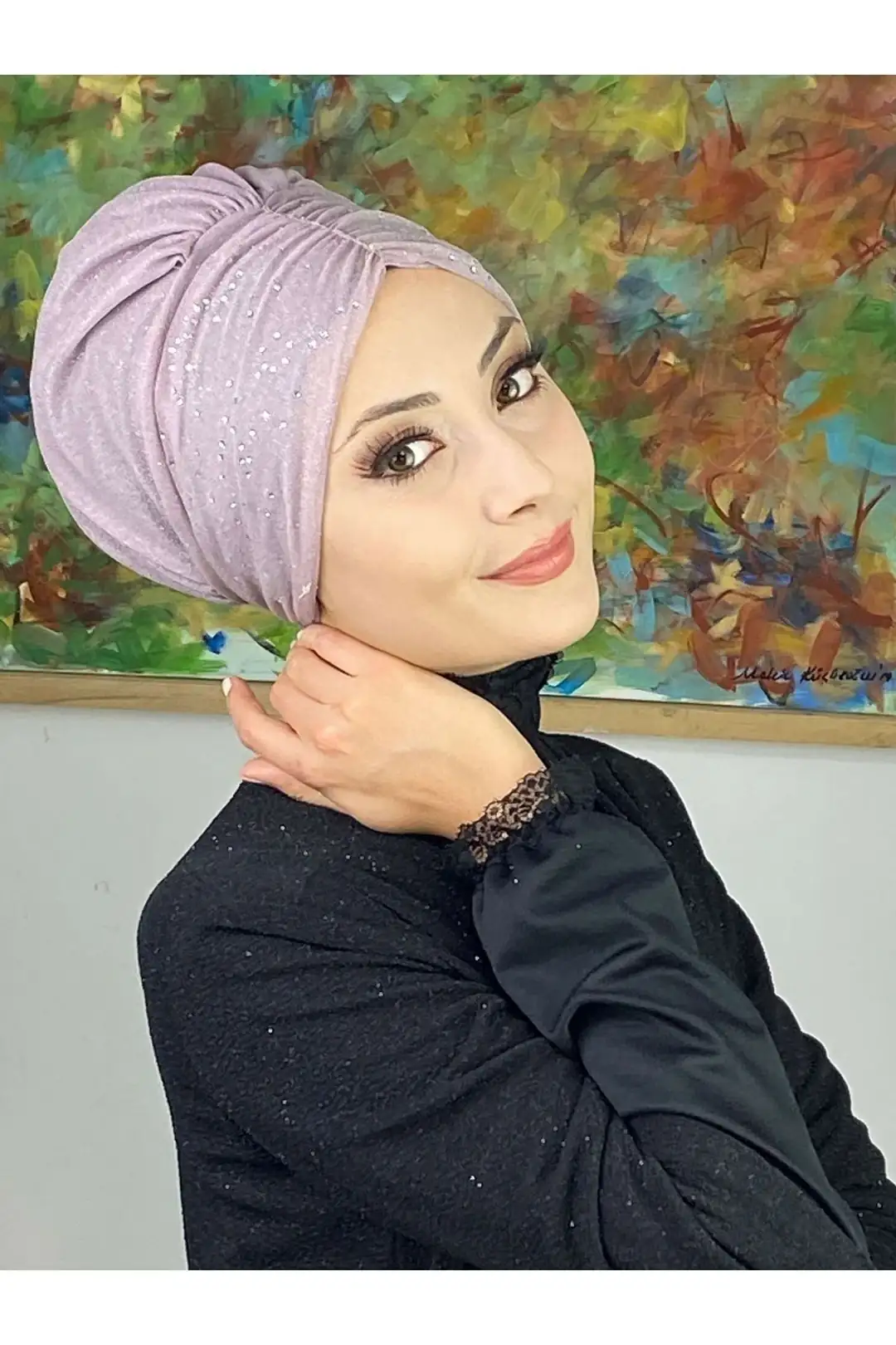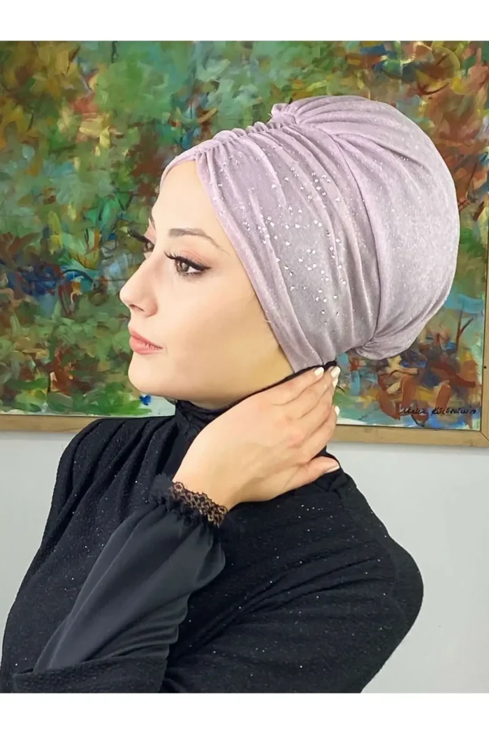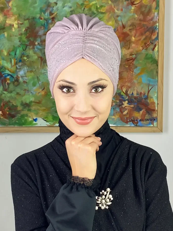 Sultan Model Simli Büzgülü Dış Bone – Lila
