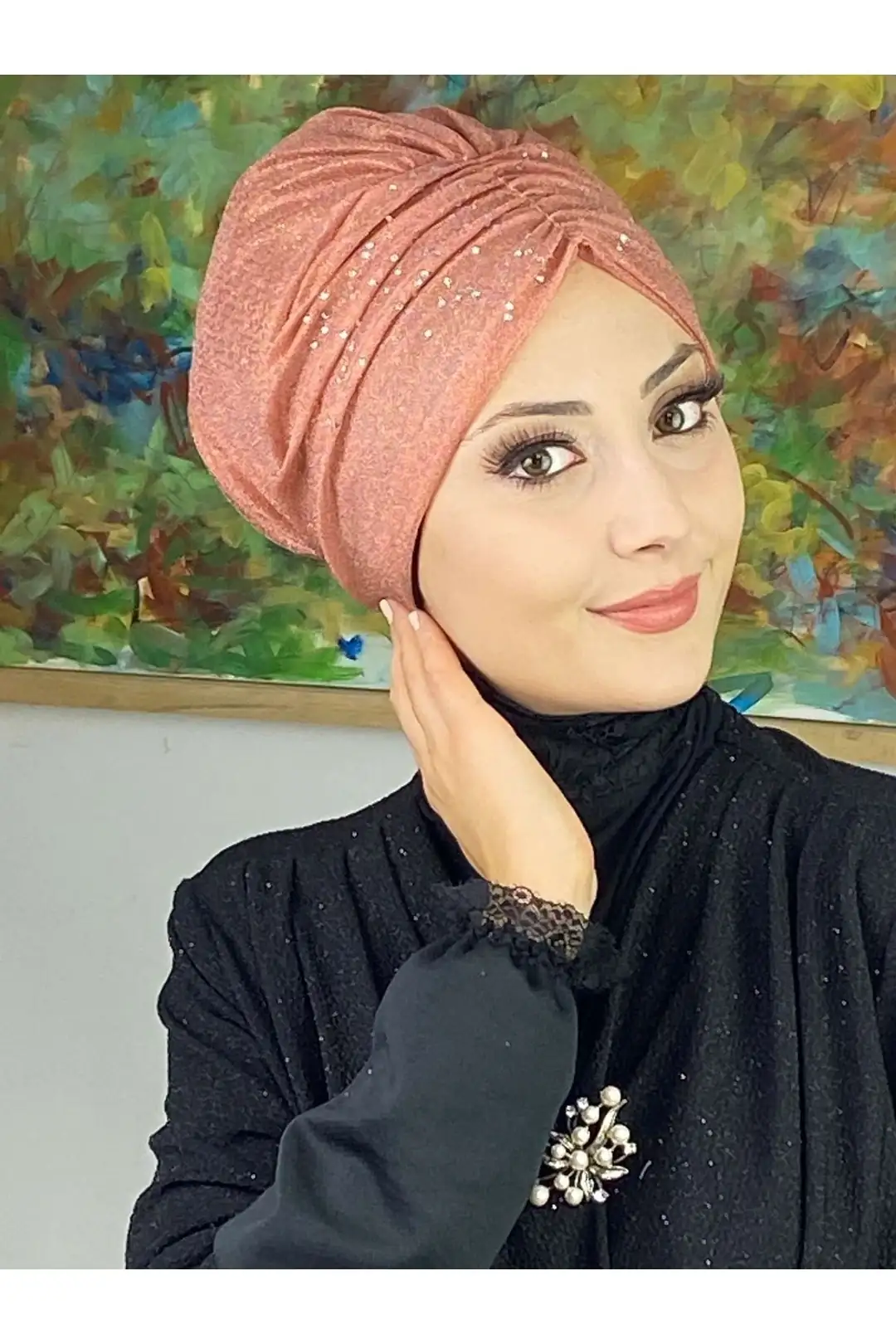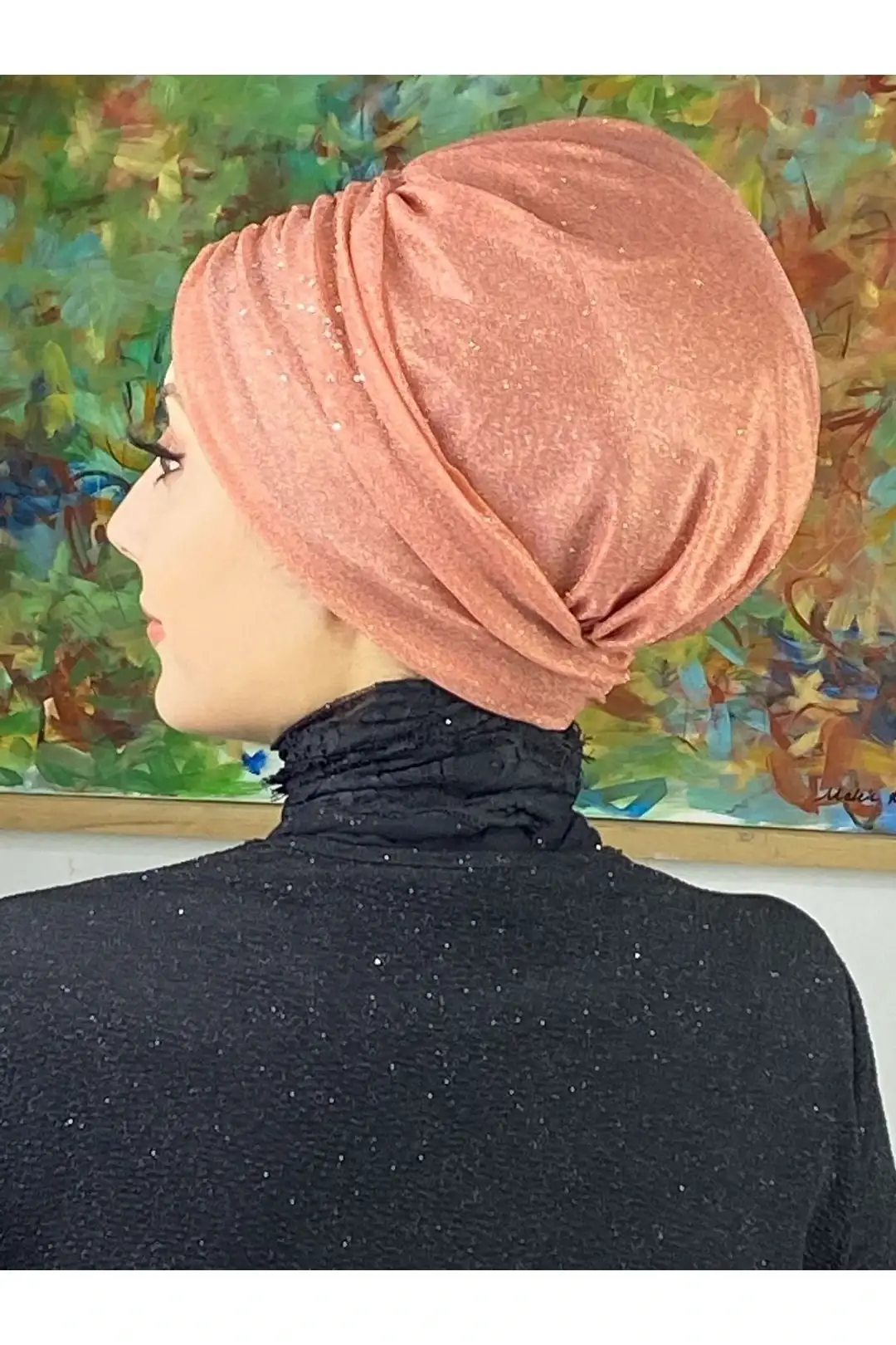 Somon büzgülü bone; beyaz, bej, kahverengi, altın ve pastel tonlarla mükemmel uyum sağlar. Günlük şıklıkta fresh bir duruş, özel günlerde ise zarif bir tamamlayıcılık sunar.