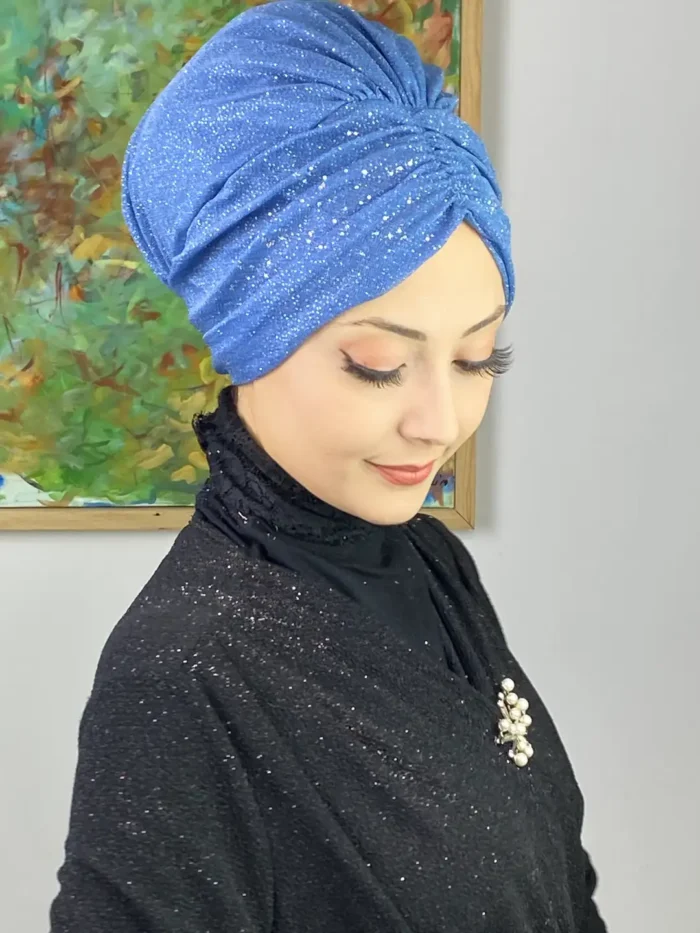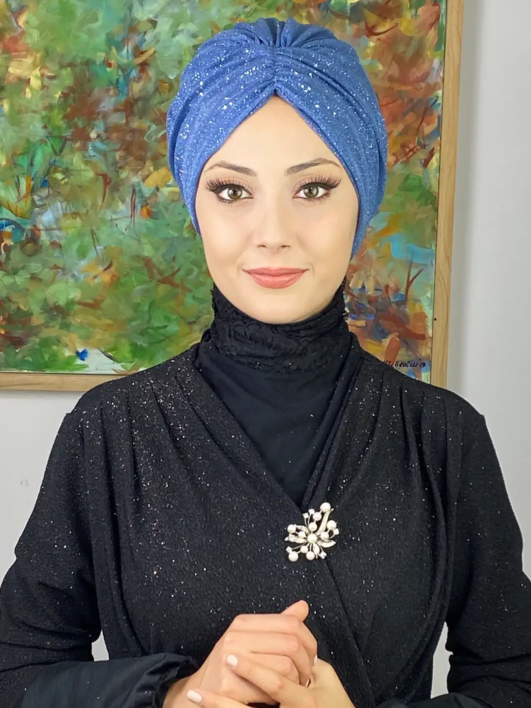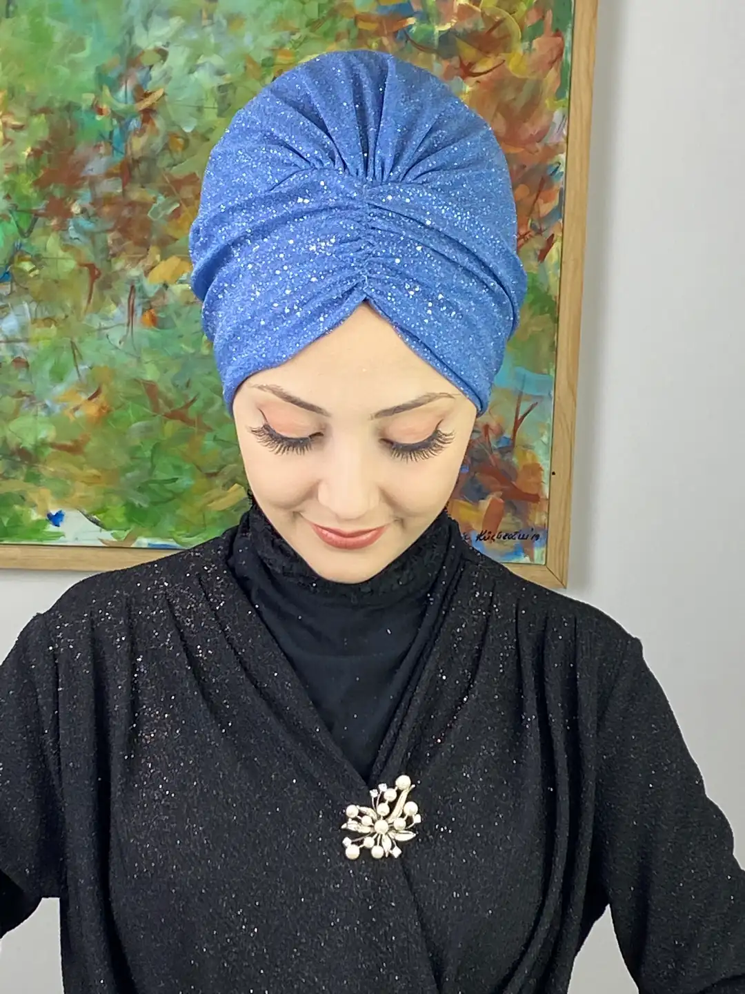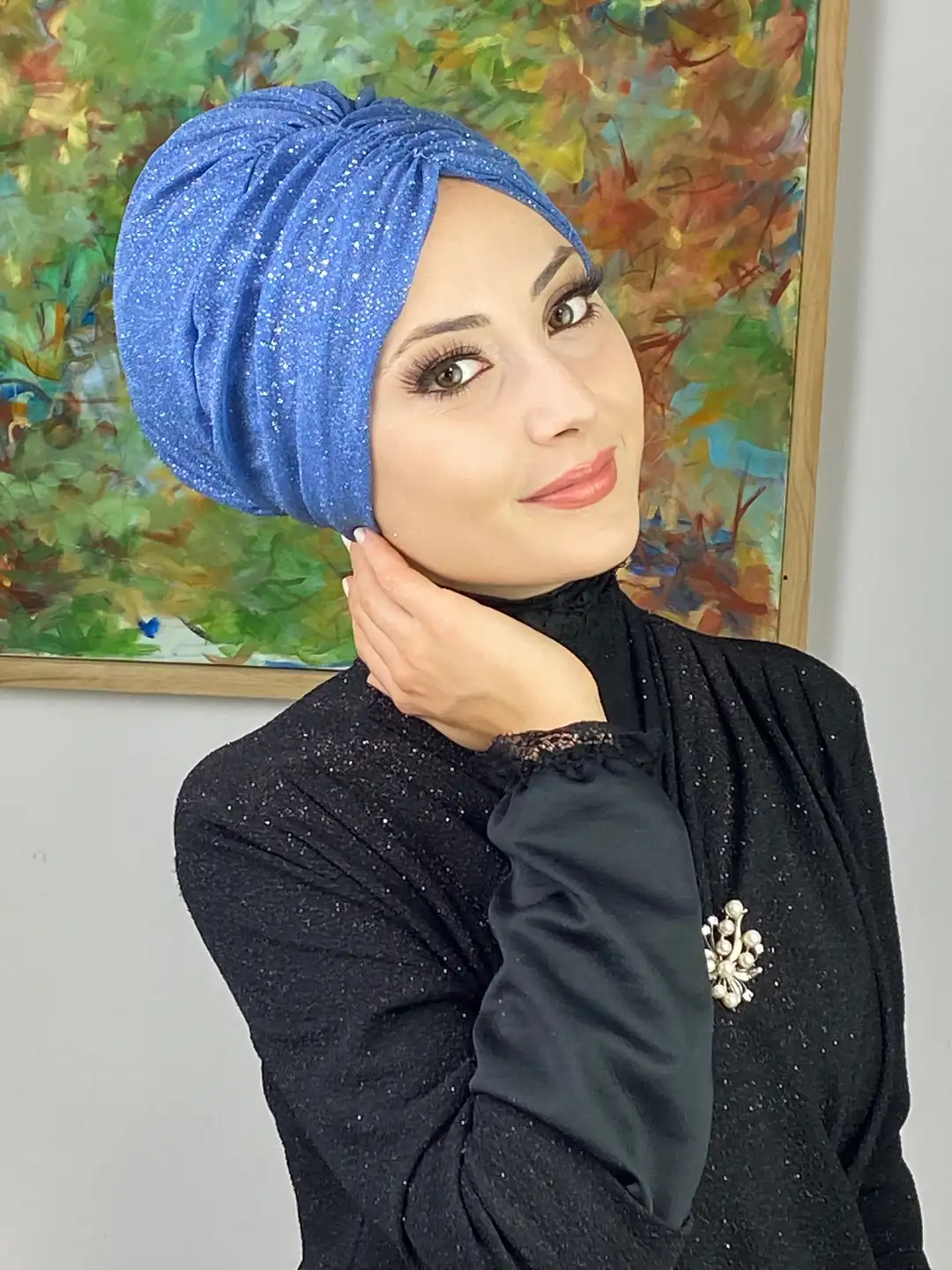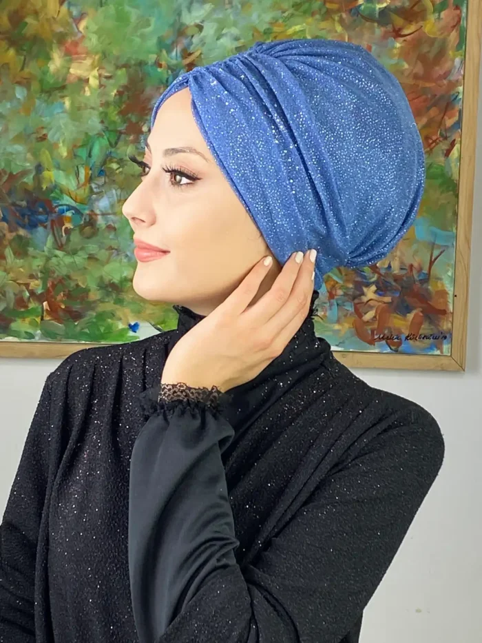 Sultan Model Simli Büzgülü Dış Bone – İndigo