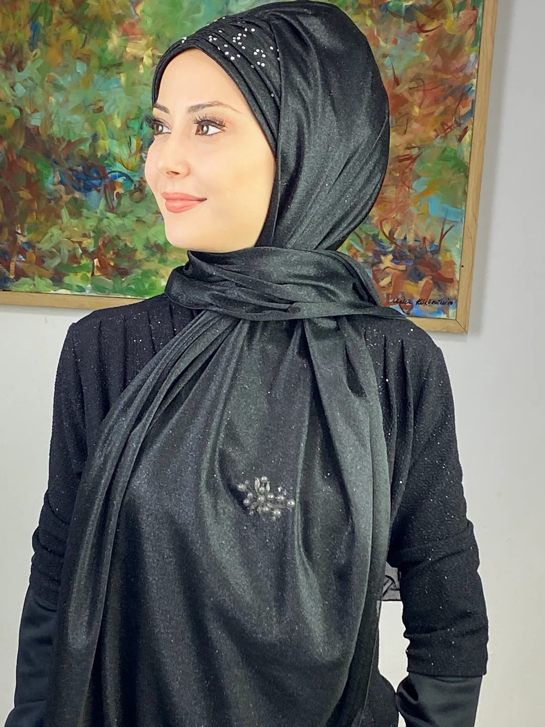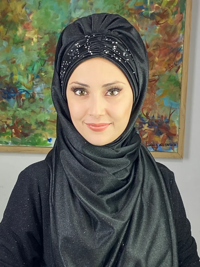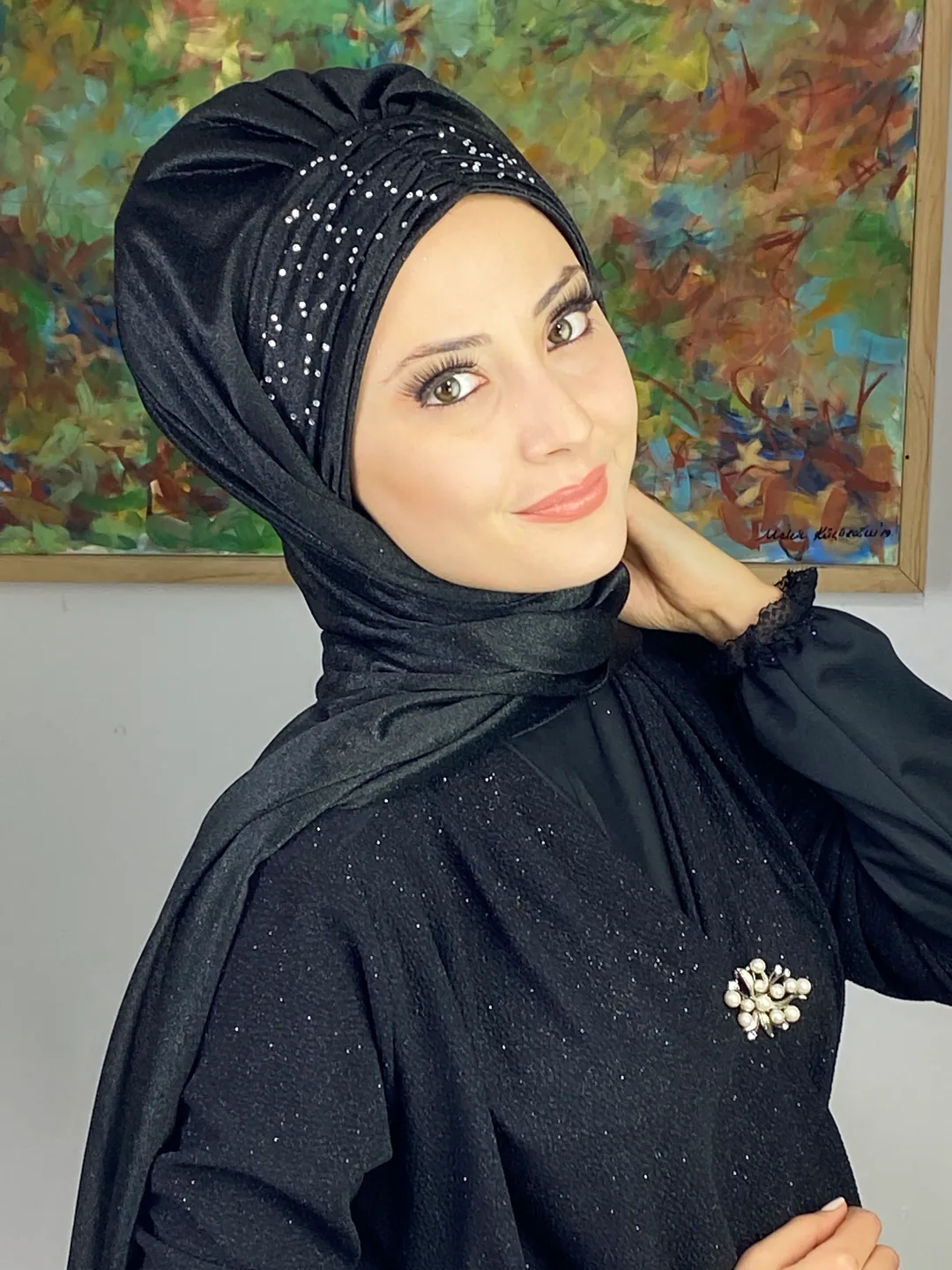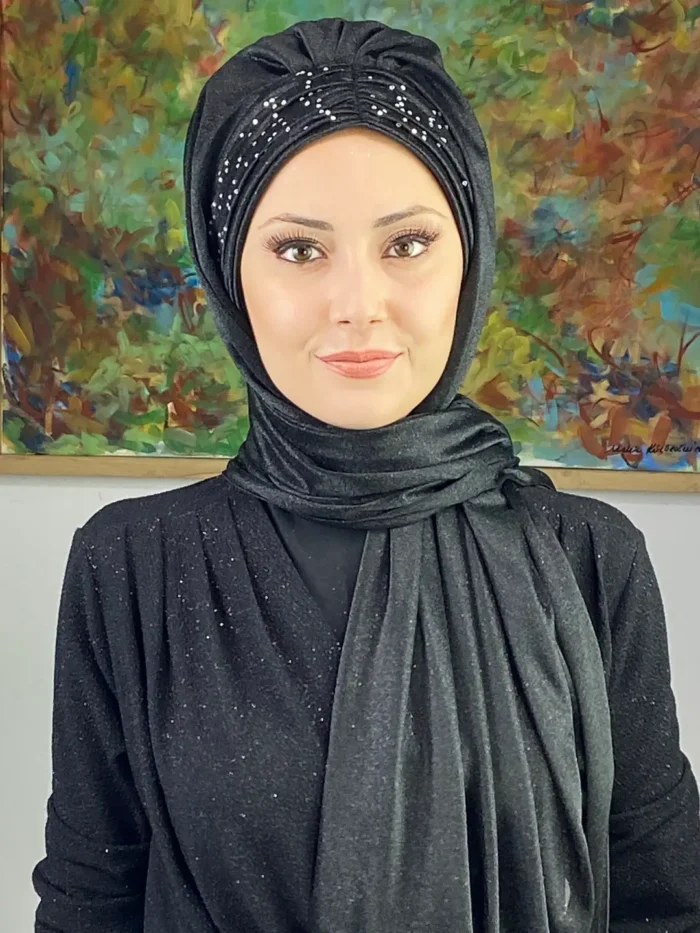 Şıklığı kadar konforuyla da ön plana çıkan Sultan Model Simli Fransız Şifon Büzgülü Şal,