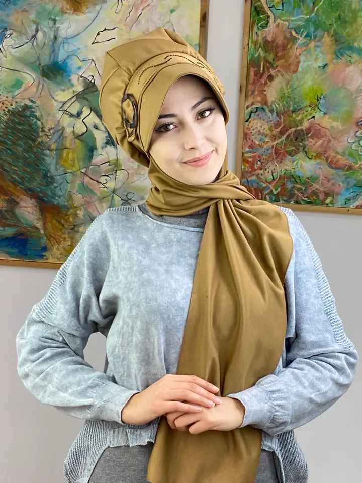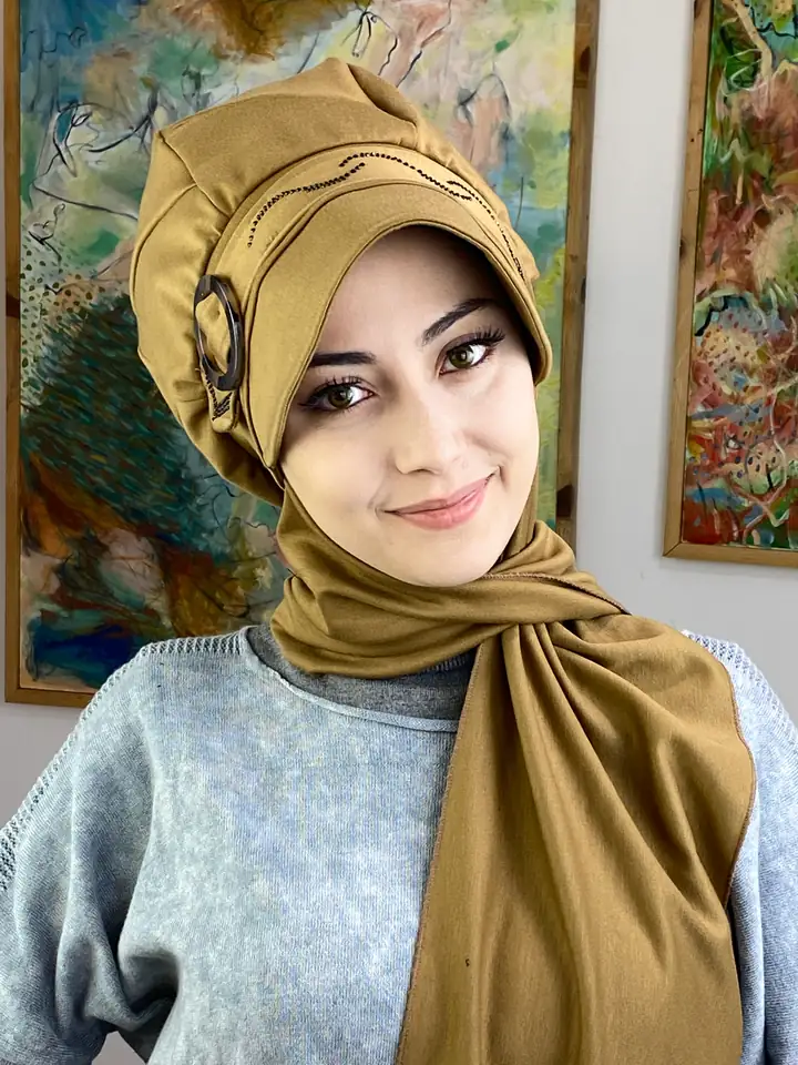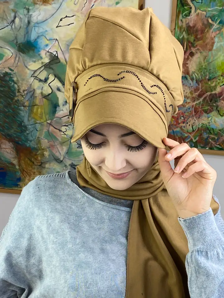 Taşlı Toka Model Şapka – Sütlü Kahve