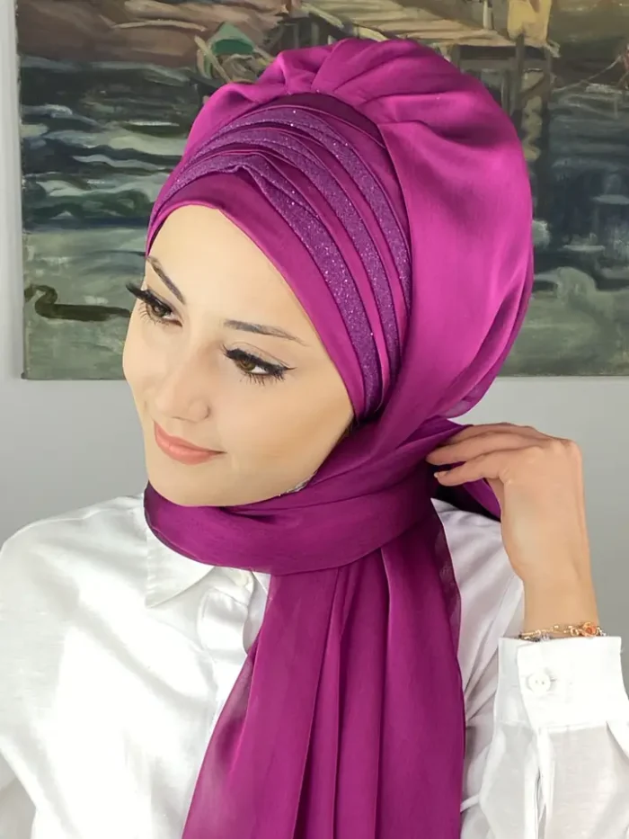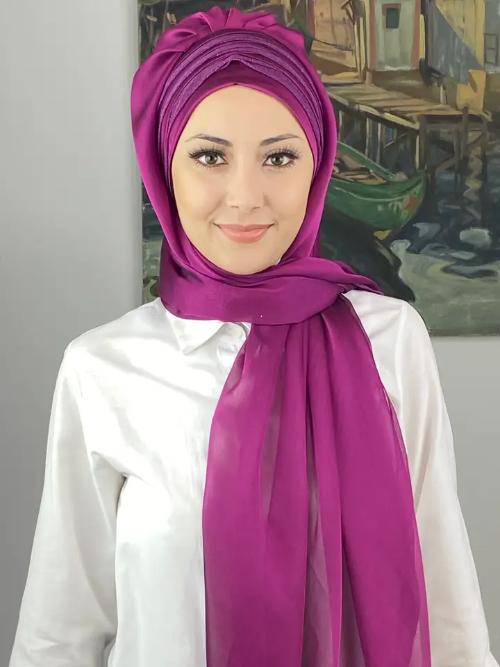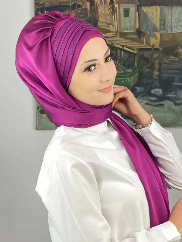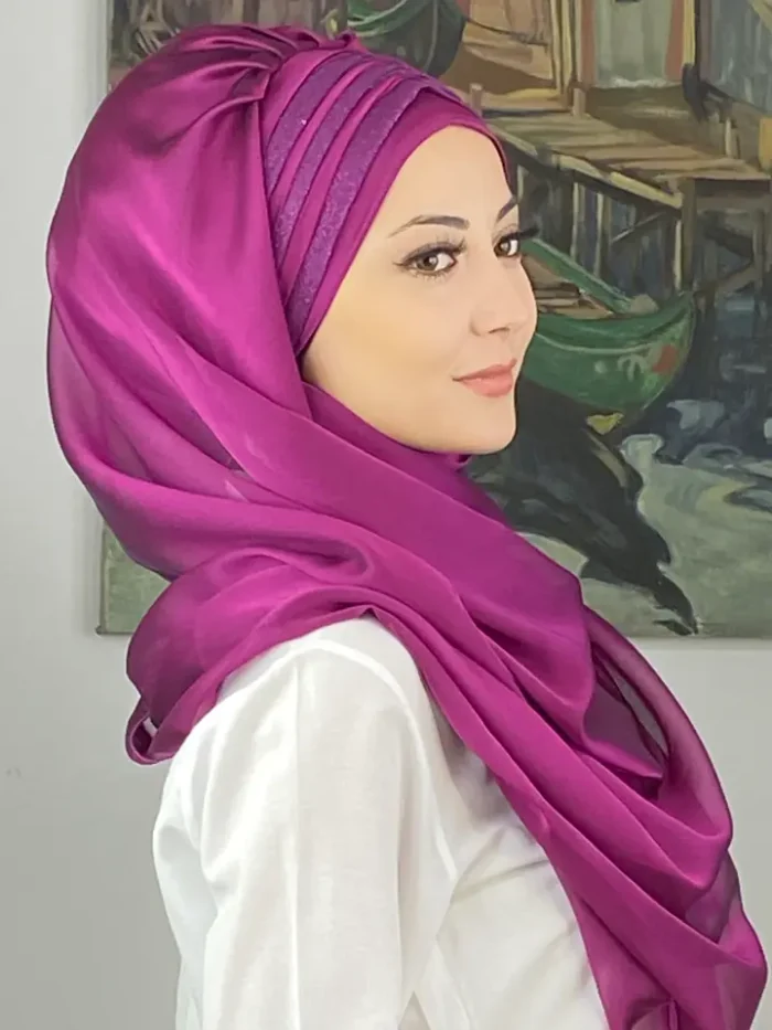 Topkapı Fuşya Şal, beyaz, gri veya siyah elbiselerle çarpıcı bir kontrast oluşturur. Nude tonlarda makyajla birlikte kullanıldığında zarif bir enerji yaratır.