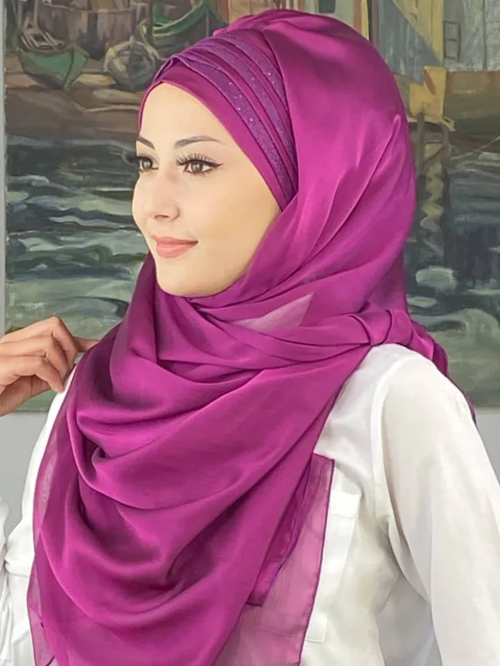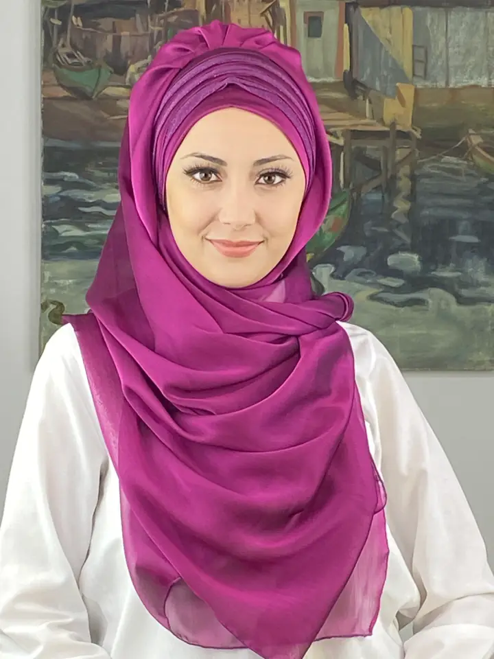 Topkapı Fuşya Şal, cesur renk seven kadınlar için özel tasarlandı. Fuşyanın enerjisi ve Fransız şifonun zarif dokusu, birlikte dinamik bir şıklık sunuyor.