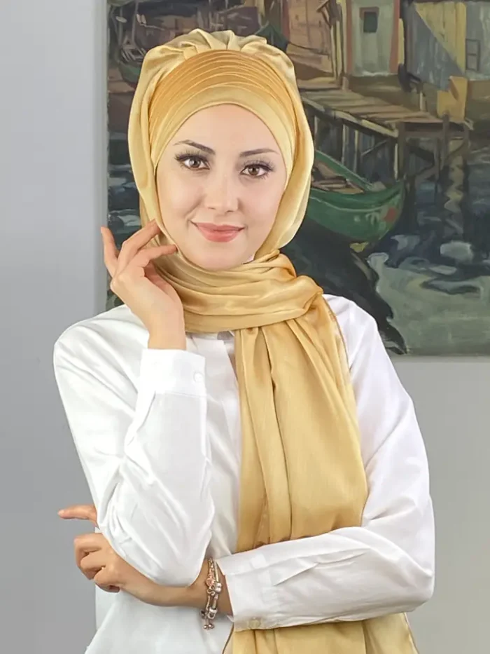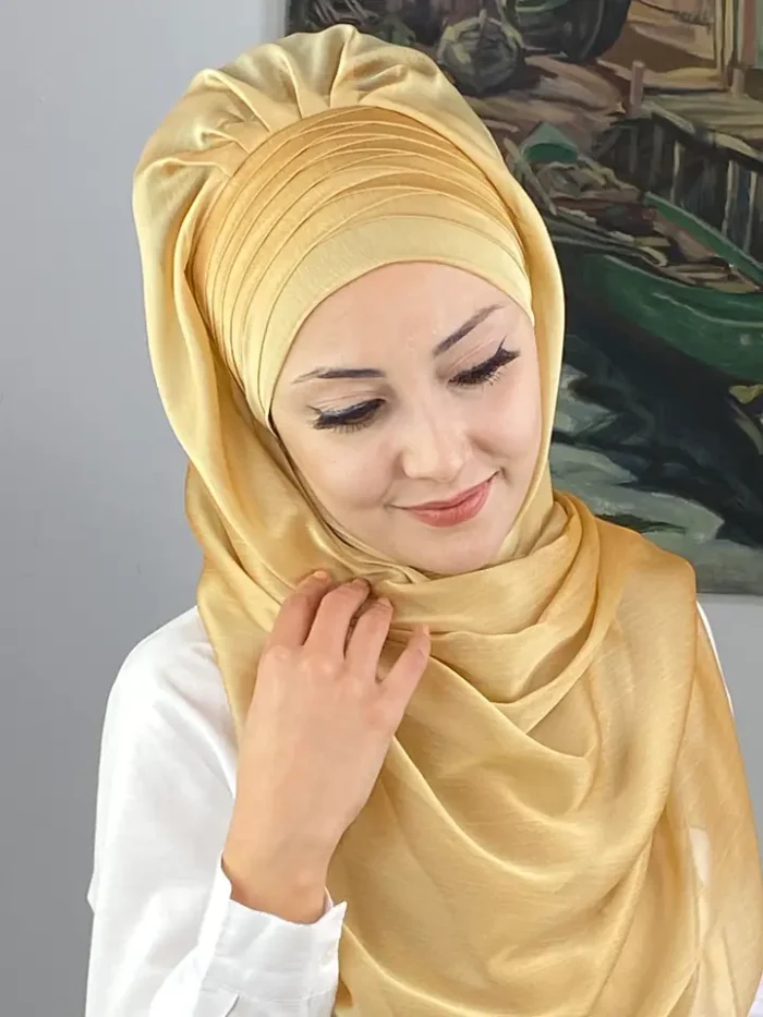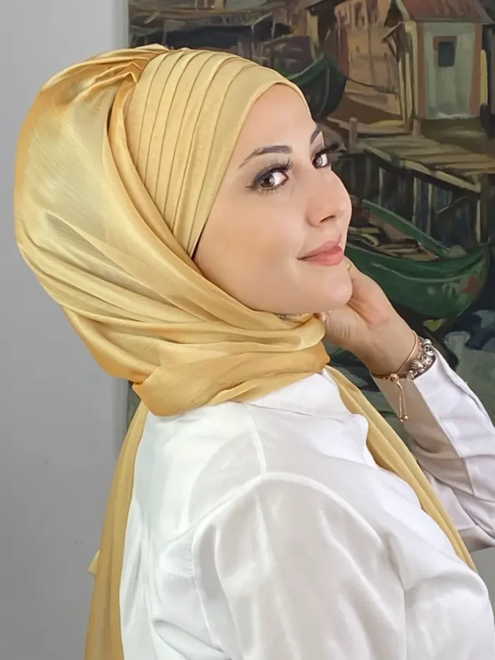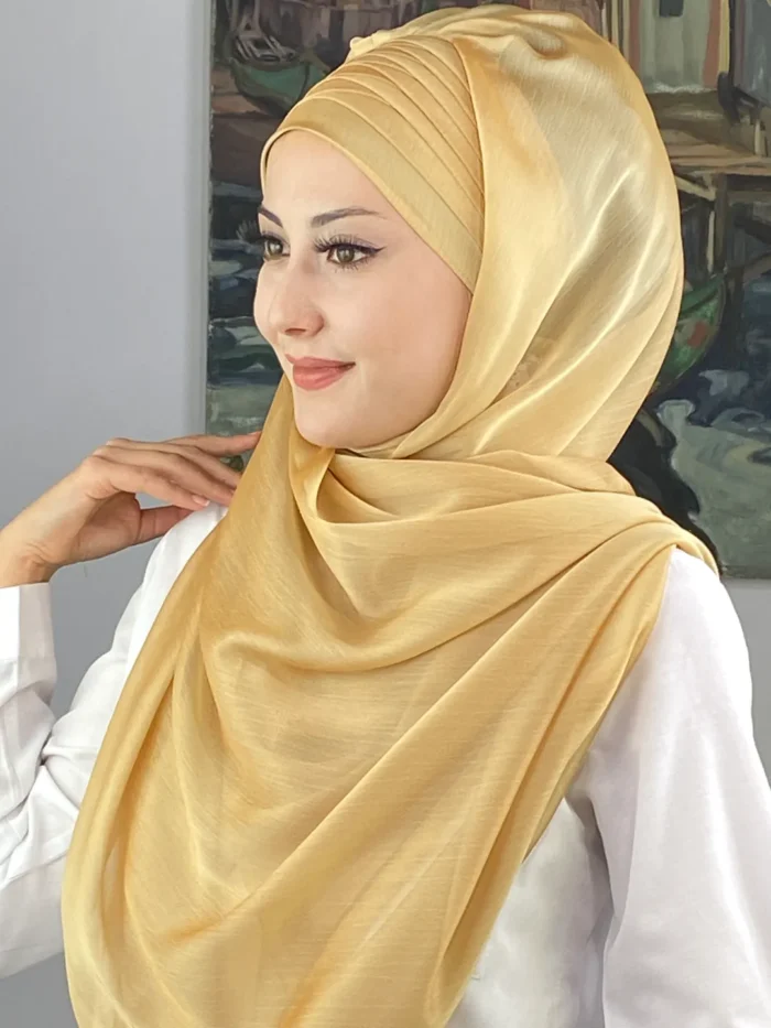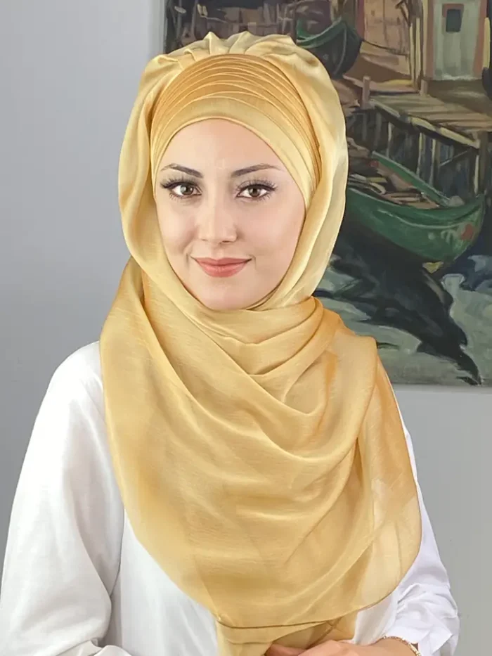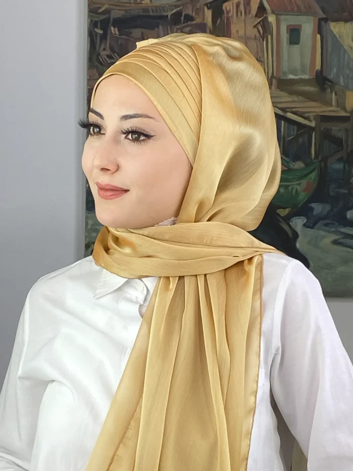 Altın, ihtişamın ve zarafetin sembolüdür. Topkapı Çapraz Drapeli Fransız Şifon Hazır Şal – Altın, sade şıklıkla lüks detayları bir araya getiriyor. Parlak ama göz yormayan bu ton, her cilt rengine zarif bir sıcaklık kazandırır.