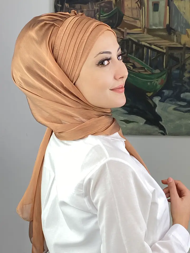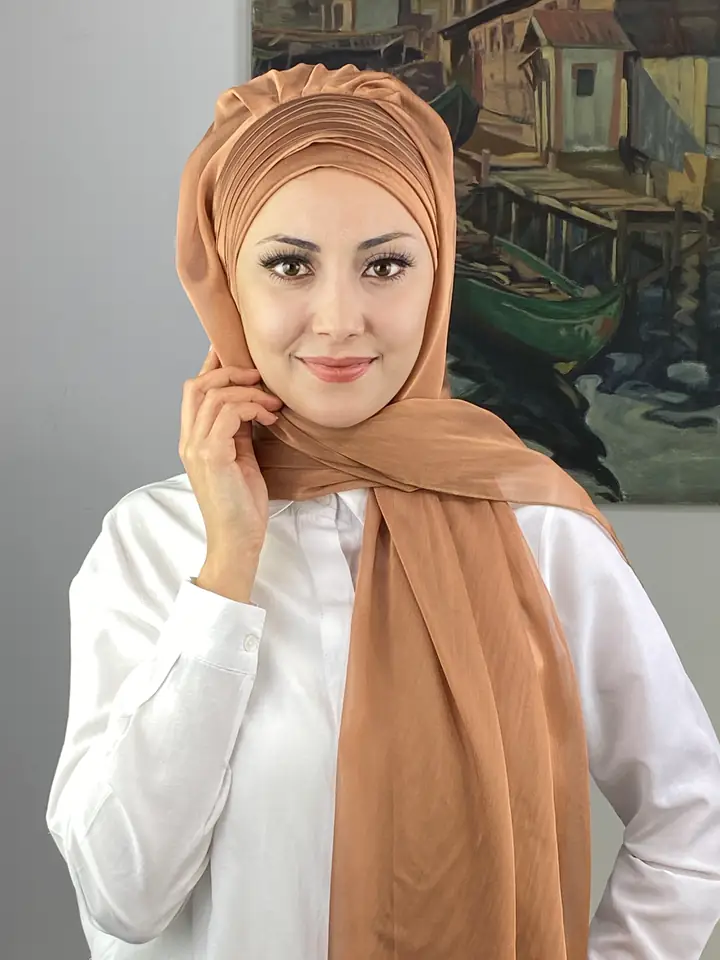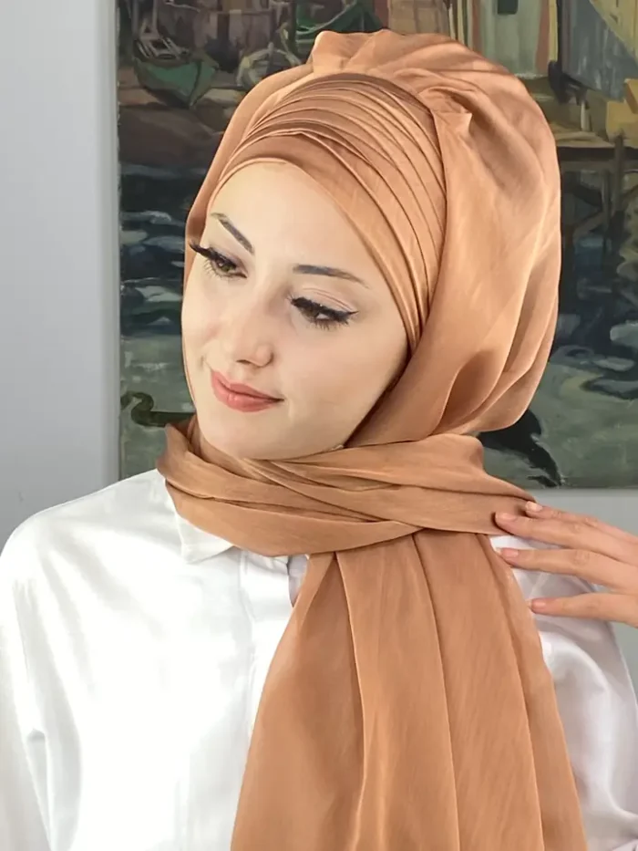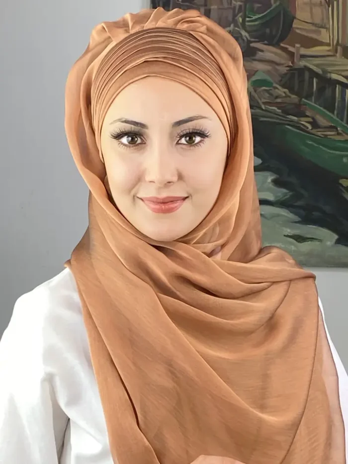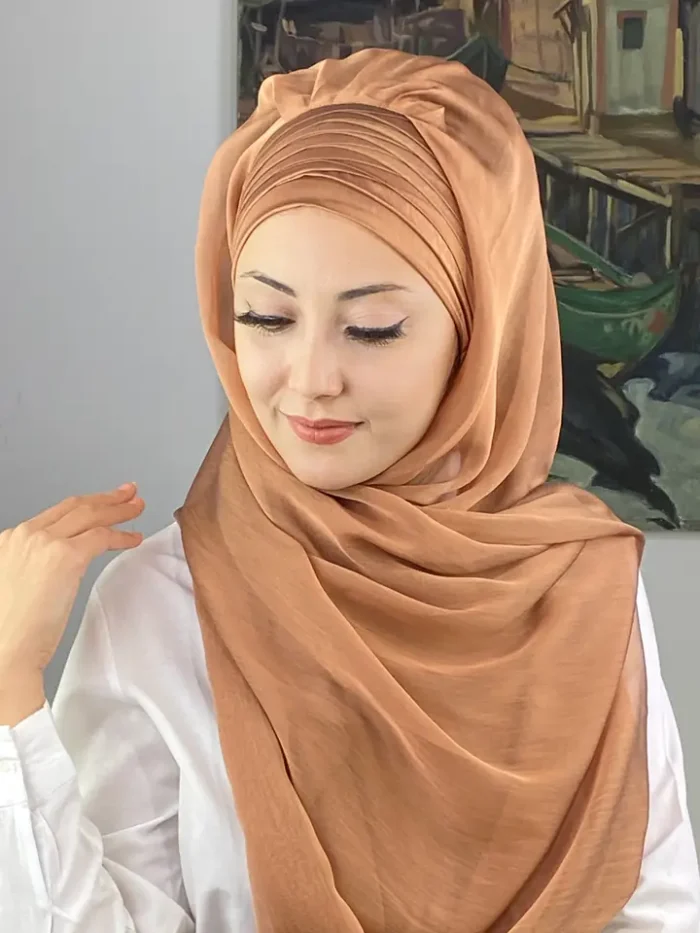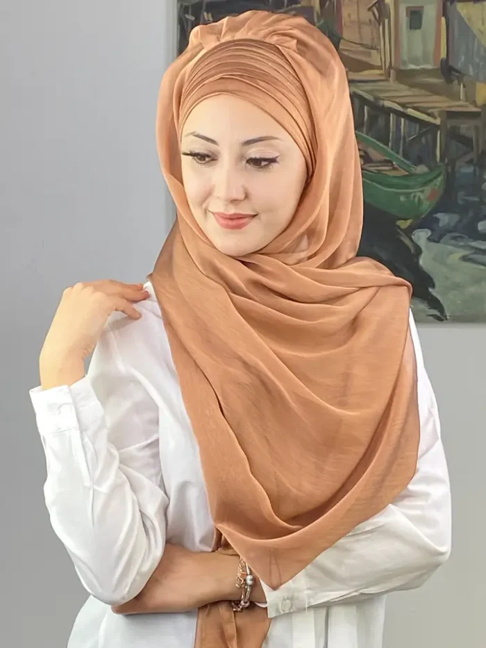 Açık bakır rengi, son yılların en trend tonlarından biridir. Doğal sıcaklığı ve metalik yansımasıyla dikkat çeker. Topkapı Çapraz Drapeli Fransız Şifon Hazır Şal – Açık Bakır, klasik şifon zarafetini modern bir ışıltıyla yeniden yorumluyor.
