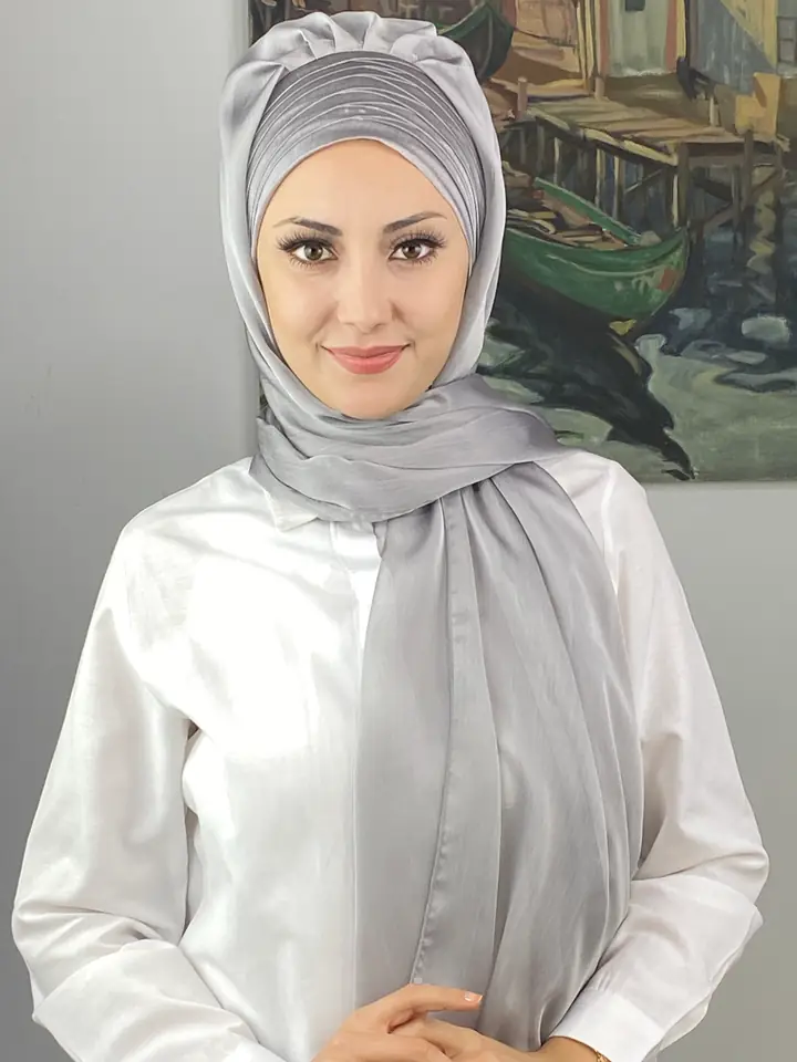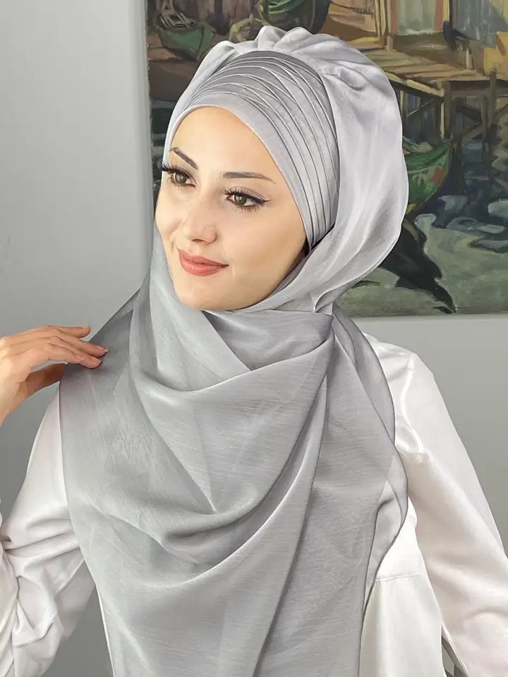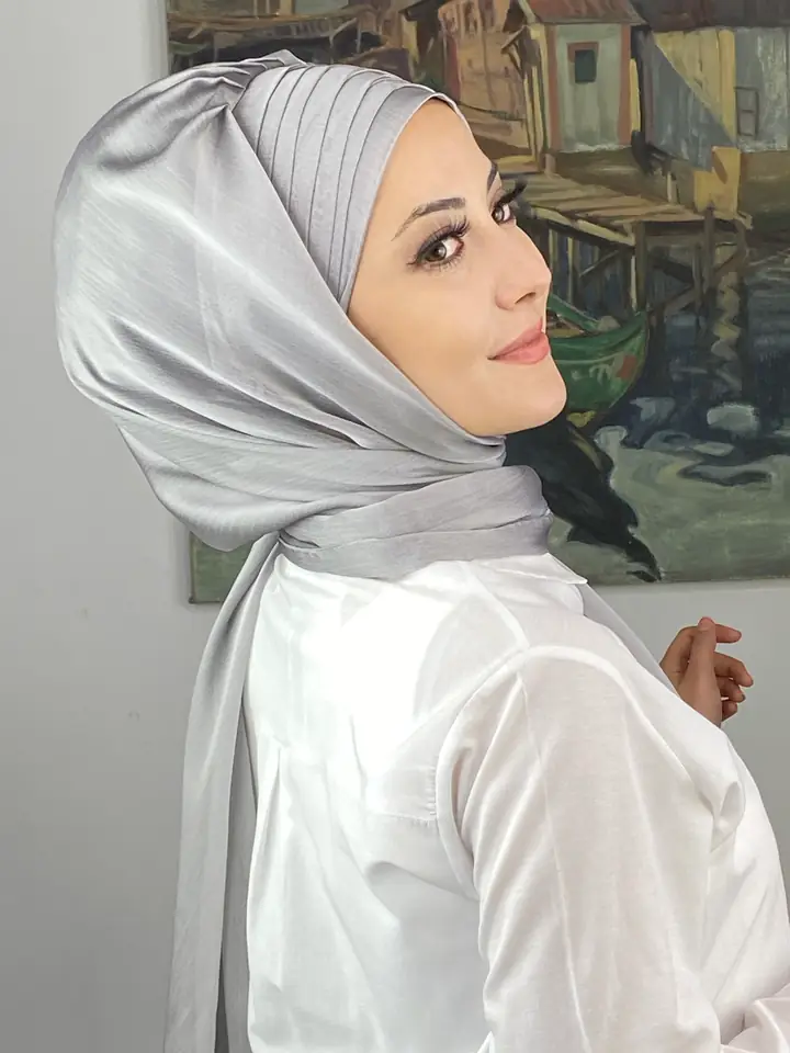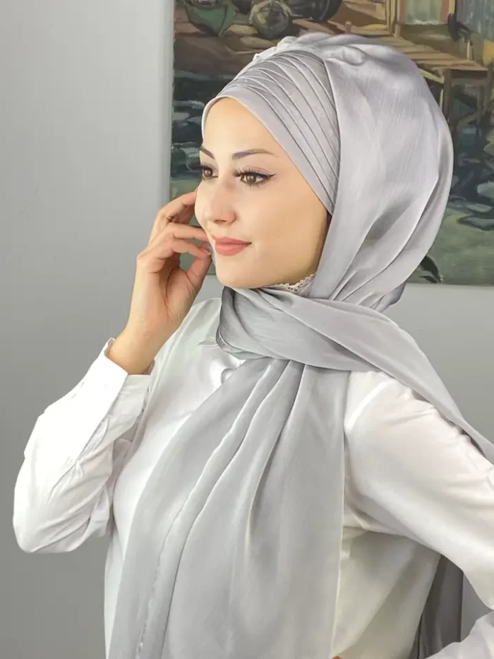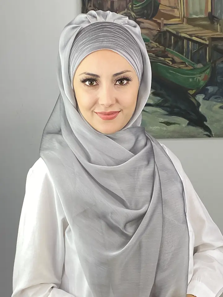 Topkapı Çapraz Drapeli Fransız Şifon Hazır Şal – Açık Gri