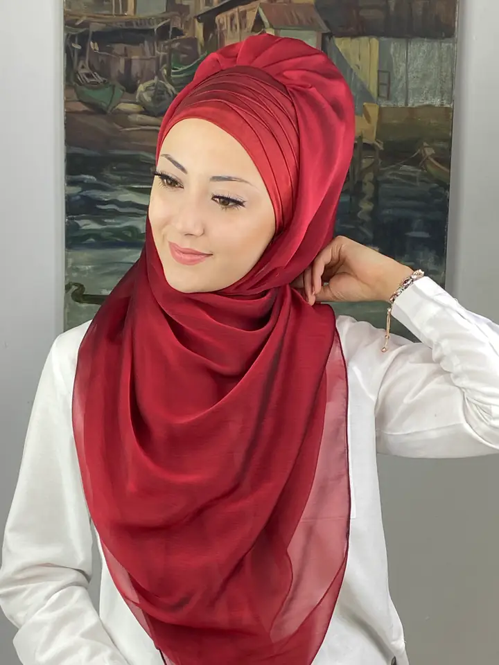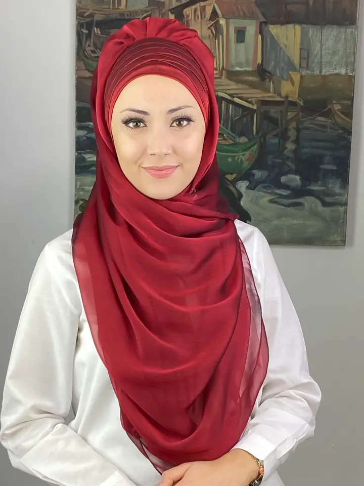 Topkapı Çapraz Drapeli Fransız Şifon Hazır Şal – Bordo