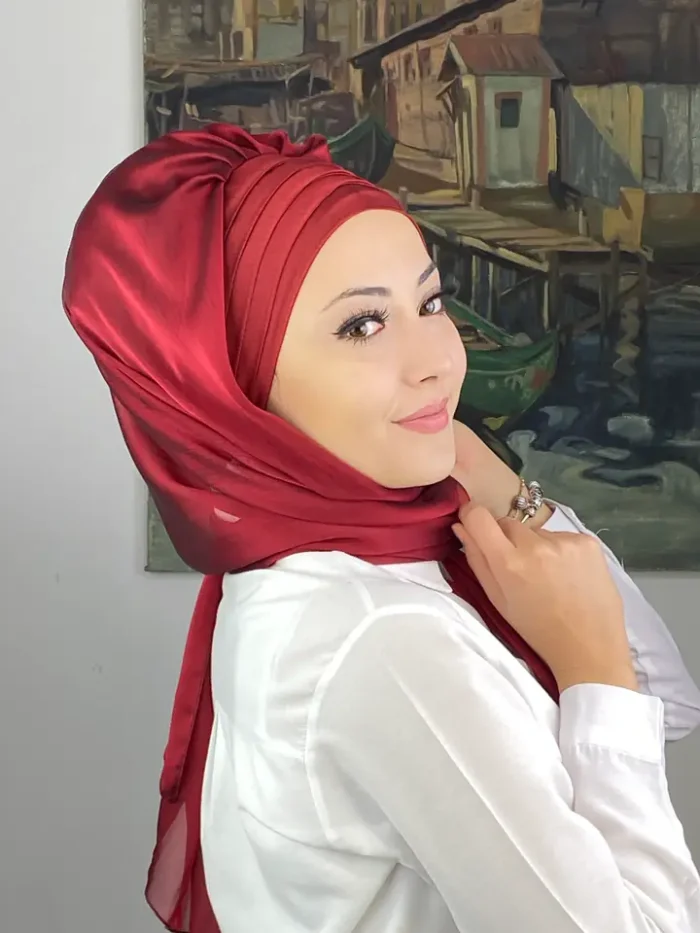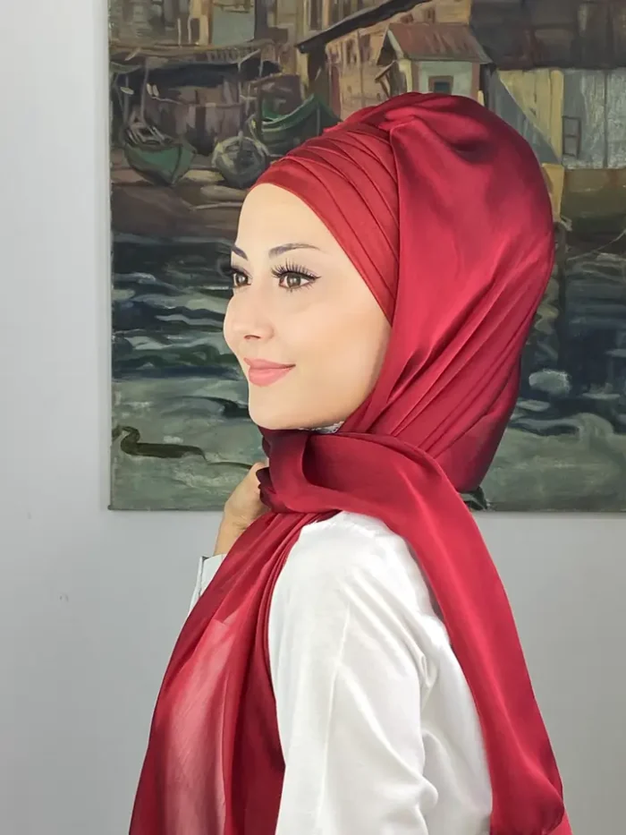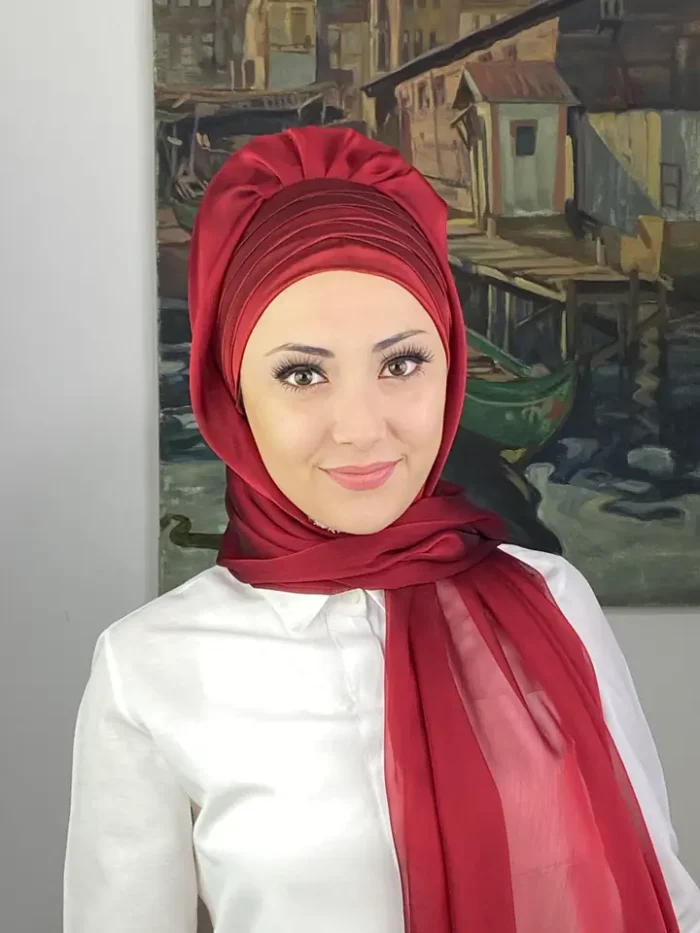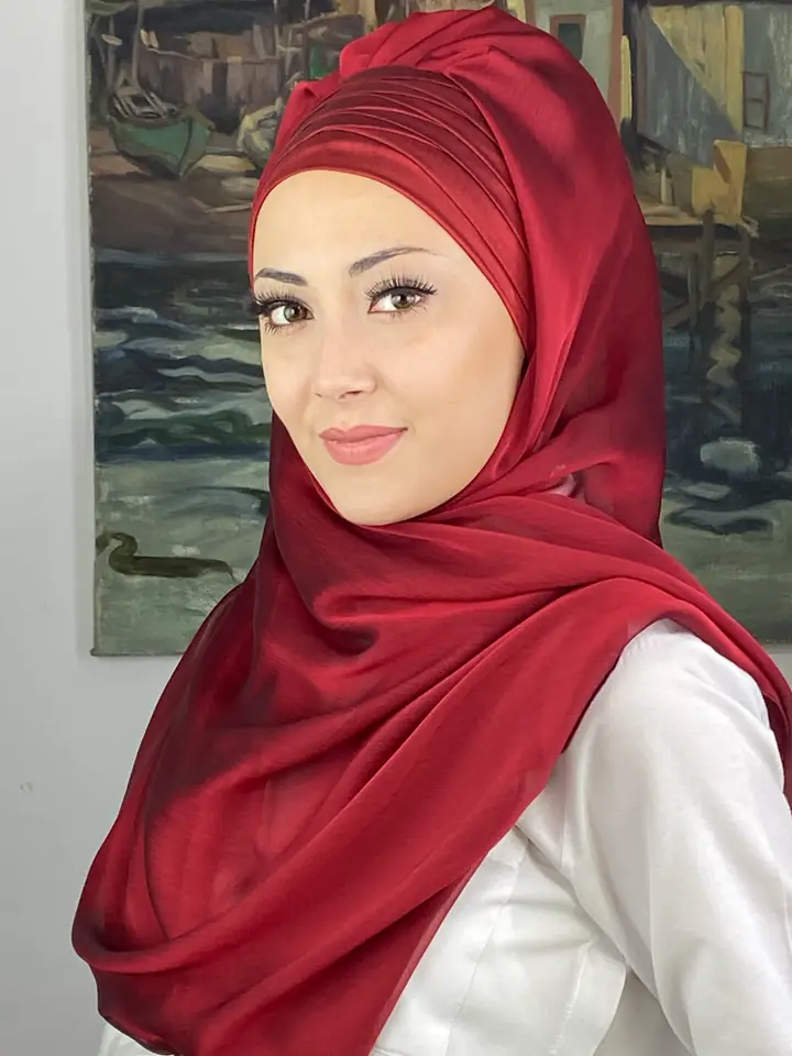 Topkapı Çapraz Drapeli Fransız Şifon Hazır Şal – Bordo, klasik zarafetin modern bir yorumu. Bordo rengin derinliği, Fransız şifonun dökümlü yapısıyla birleşerek hem sade hem etkileyici bir görünüm kazandırır. Gücü, zarafeti ve özgüveni aynı anda temsil eden bordo ton, her dönemin vazgeçilmez rengidir.
