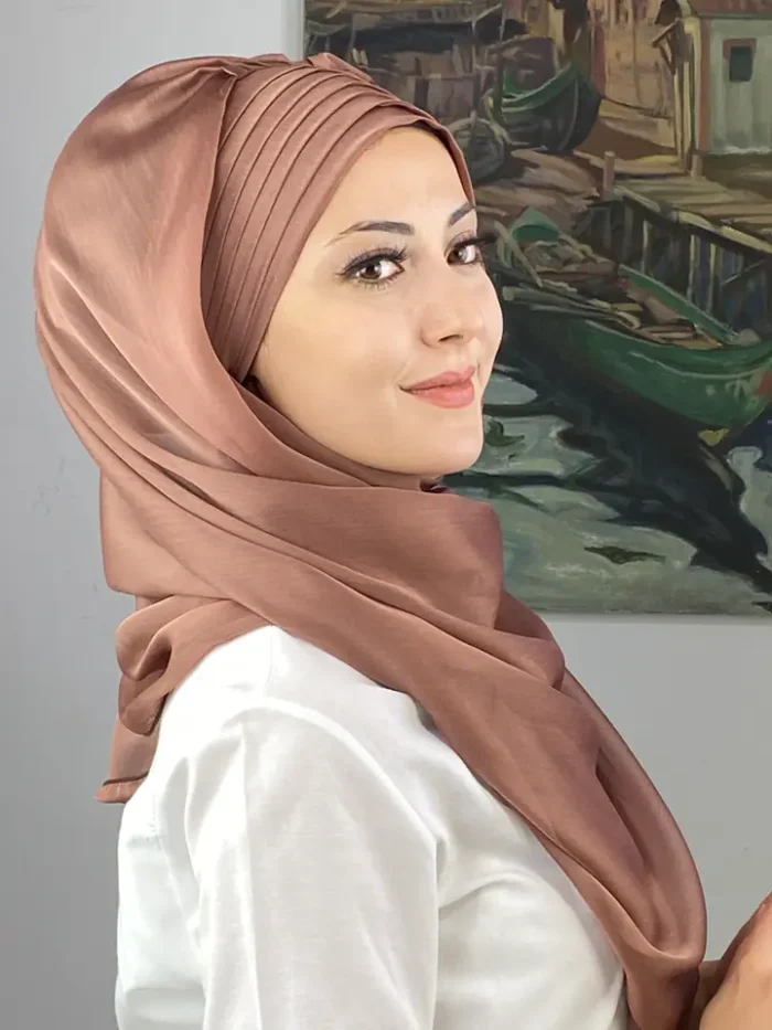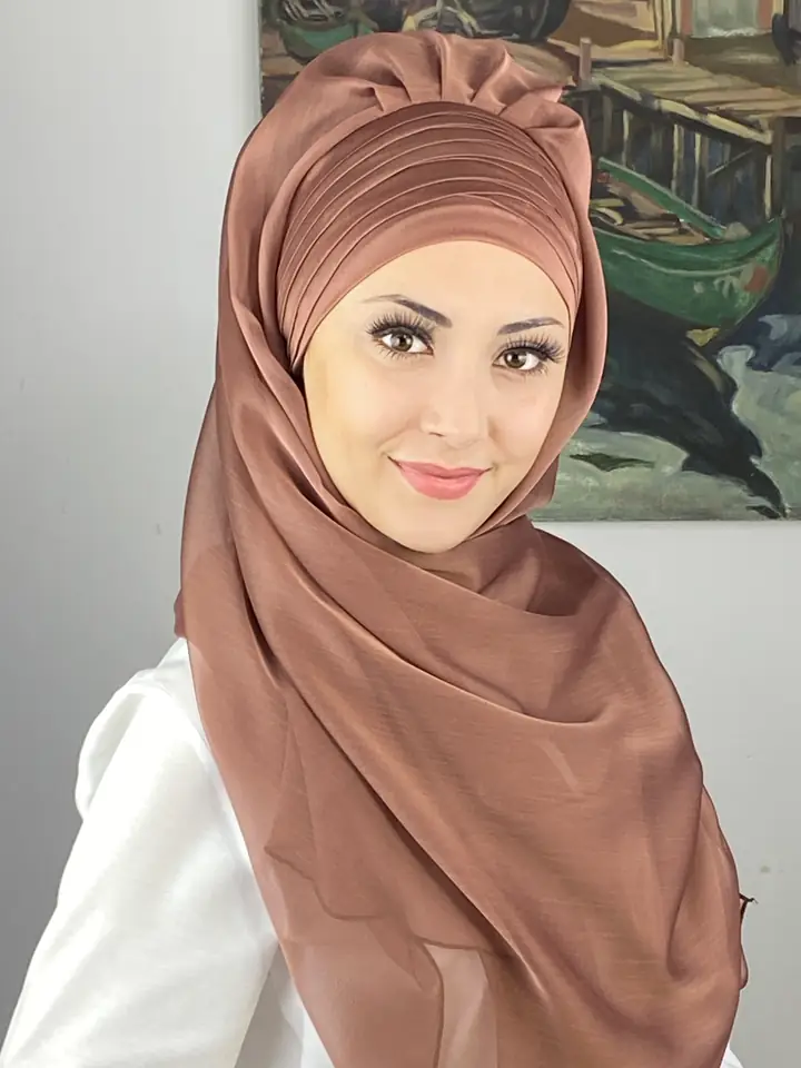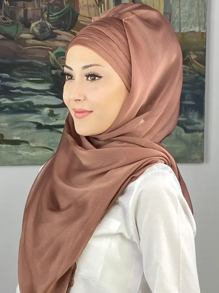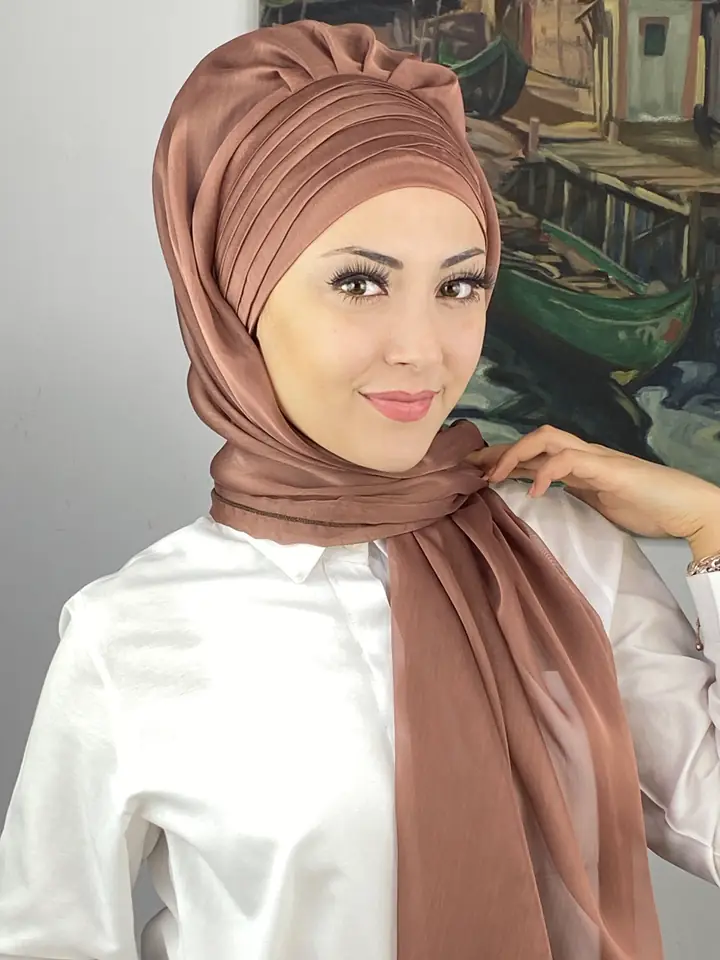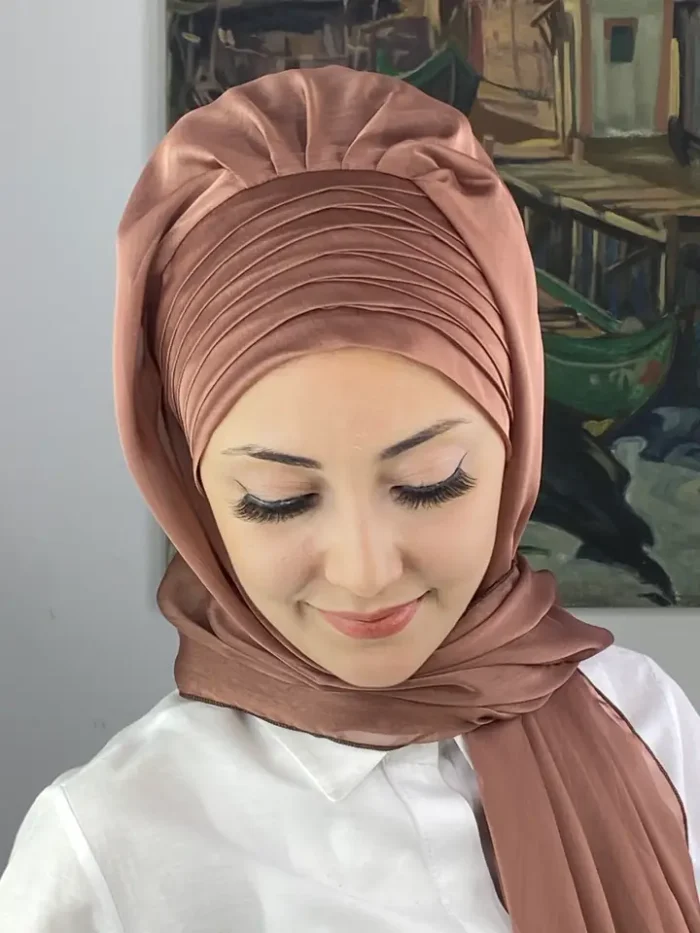 Sütlü kahve rengi, yumuşak geçişleriyle zarif, sade ve şık bir görünüm sunar. Topkapı Çapraz Drapeli Fransız Şifon Hazır Şal – Sütlü Kahve, minimal şıklığın en zarif halini temsil eder.