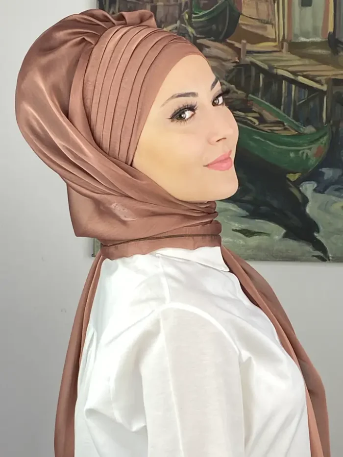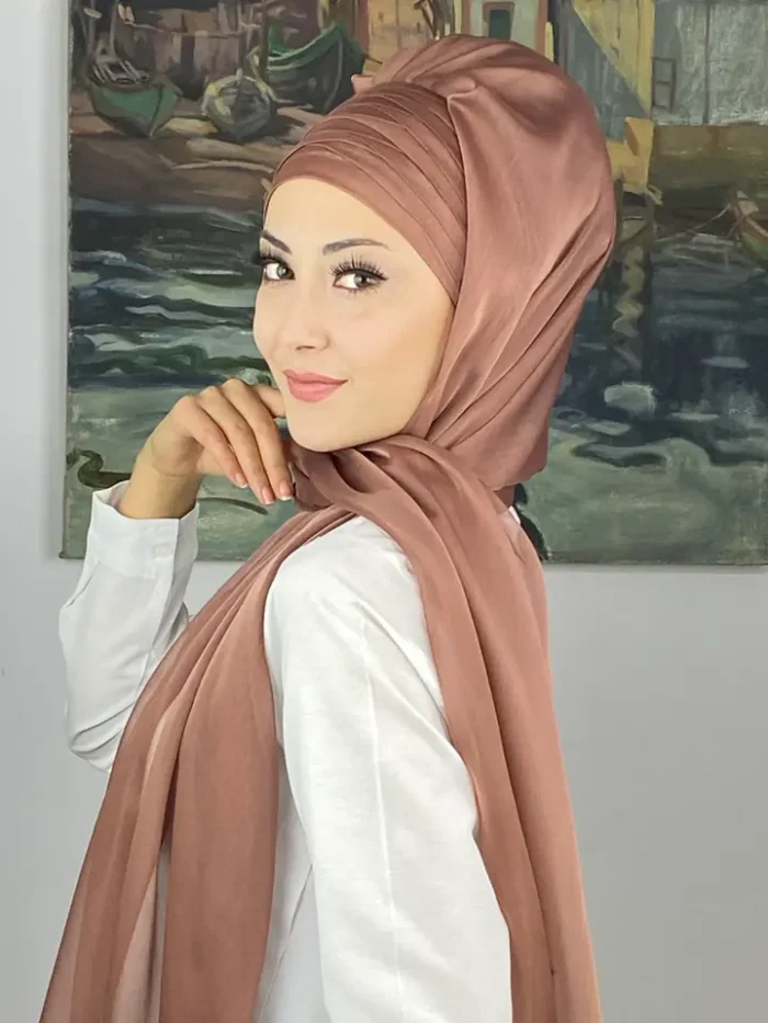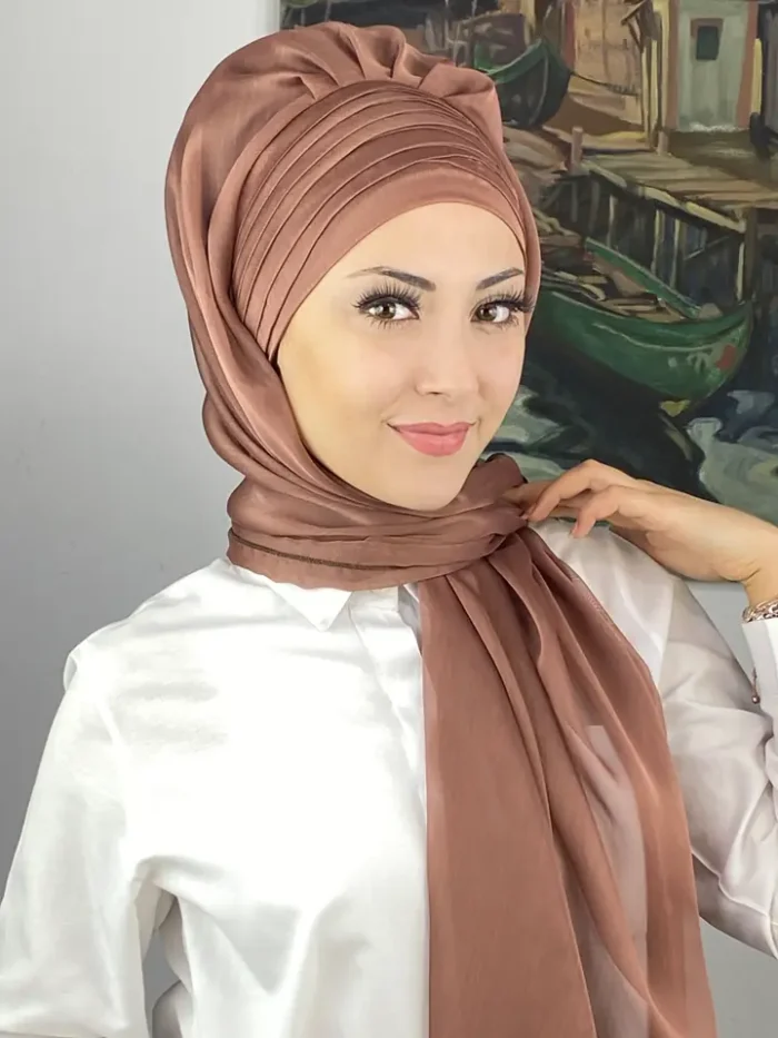 Topkapı Çapraz Drapeli Fransız Şifon Hazır Şal – Sütlü Kahve