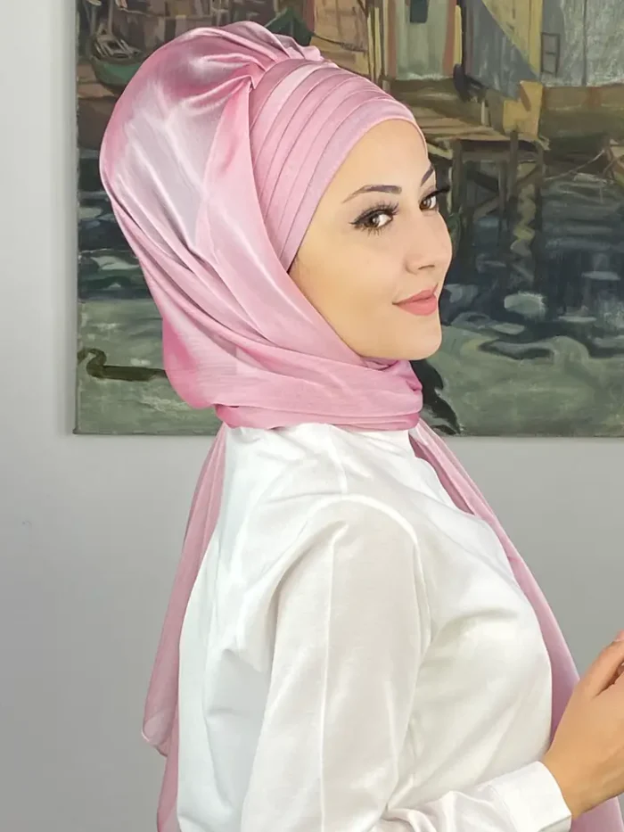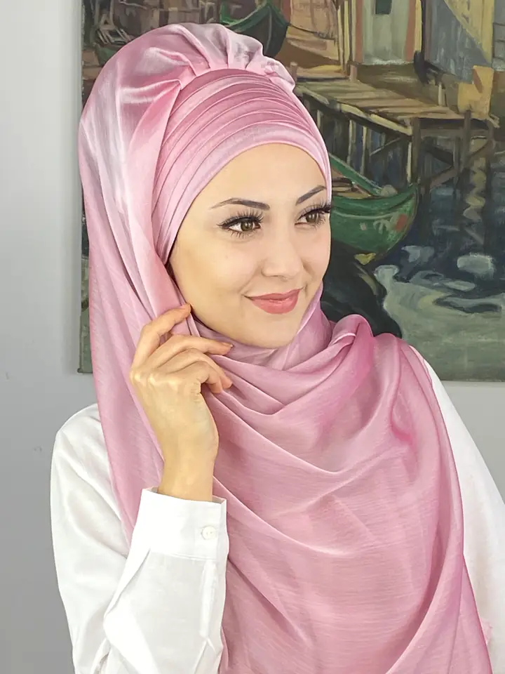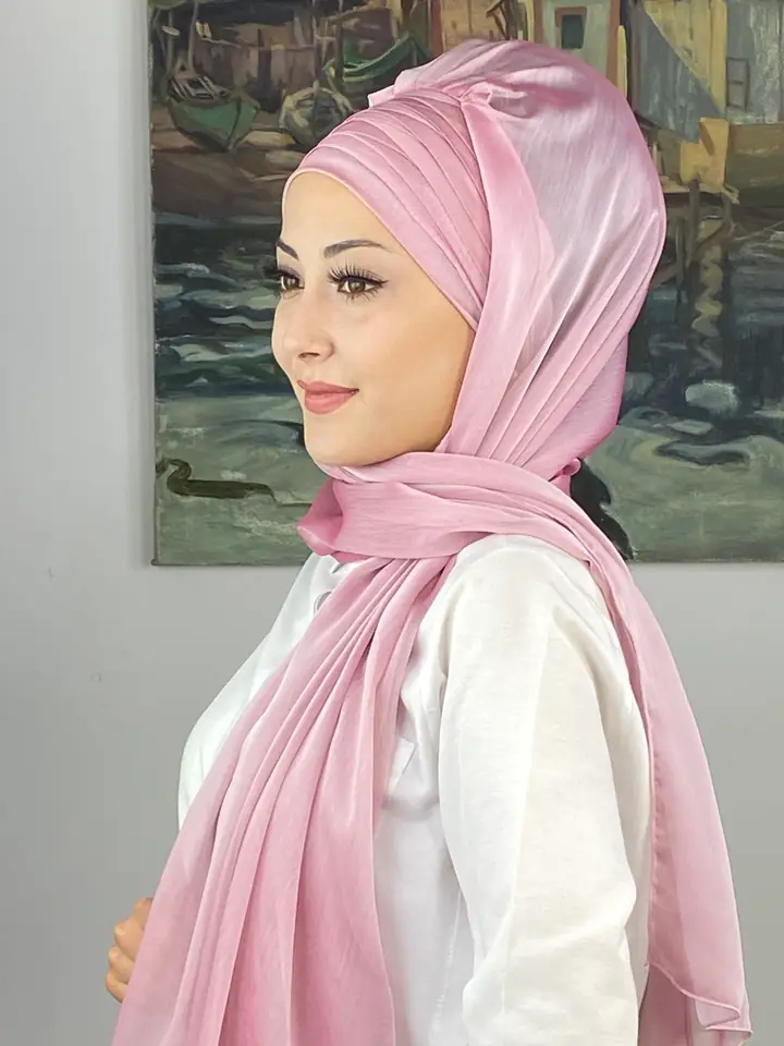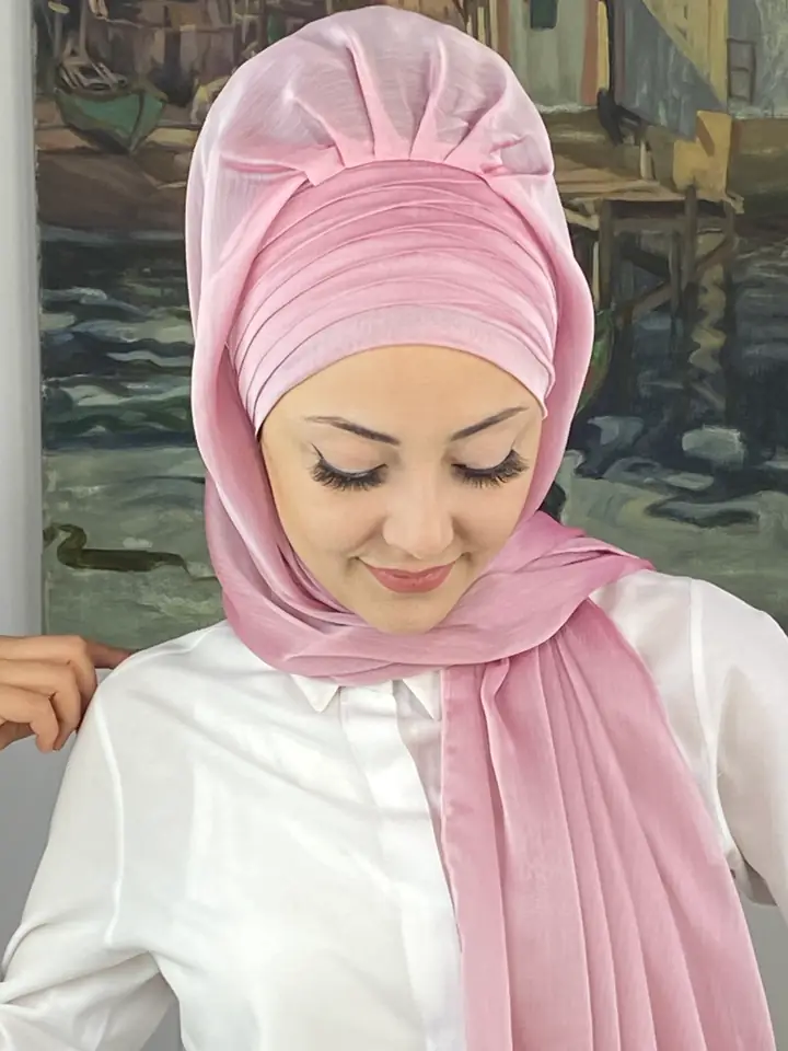 Topkapı Çapraz Drapeli Fransız Şifon Hazır Şal – Uçuk Pembe