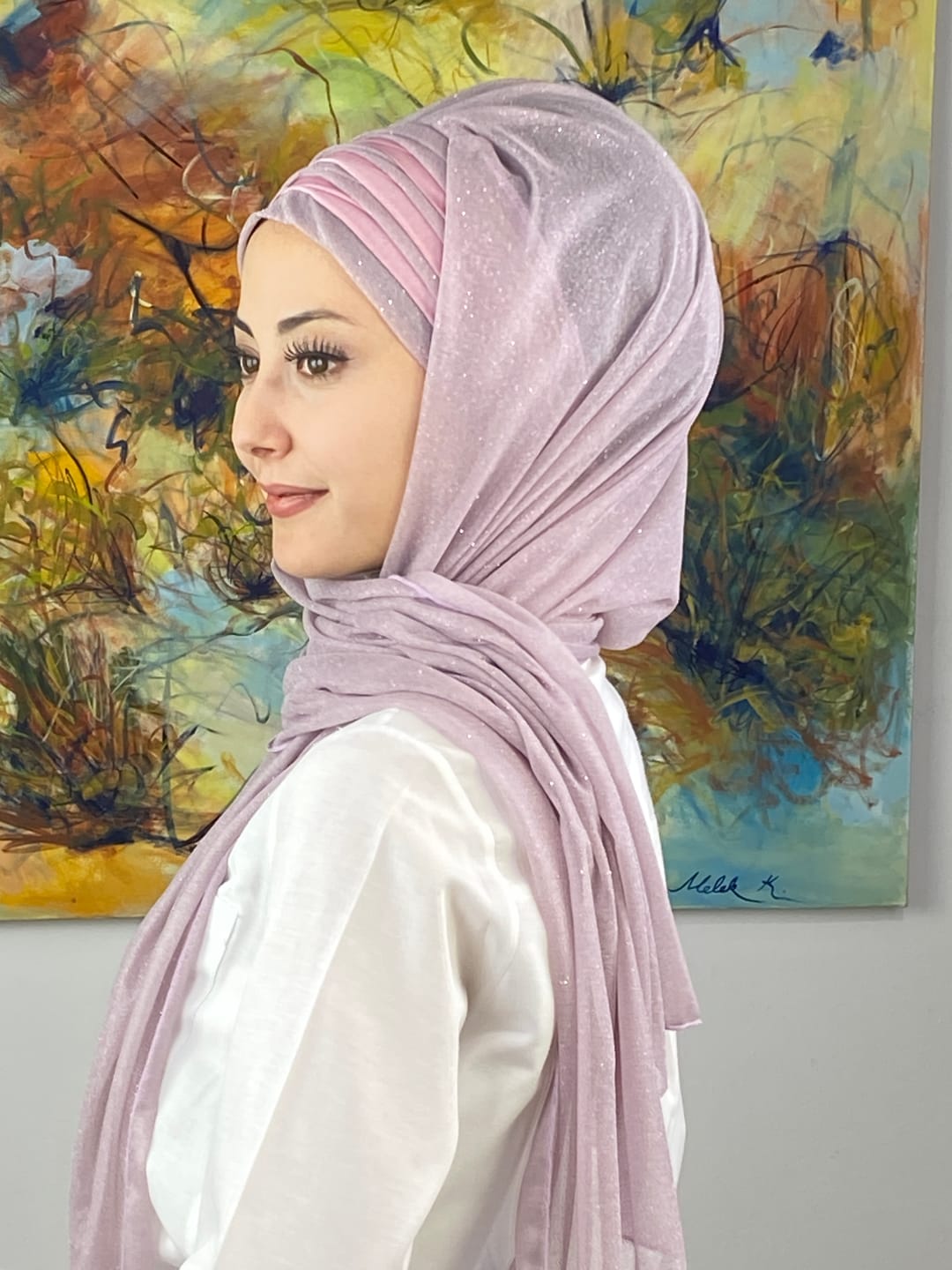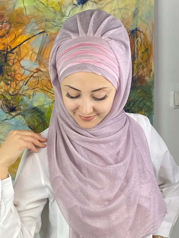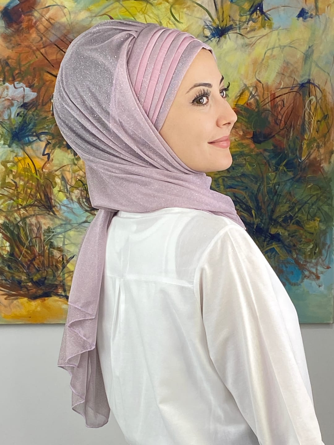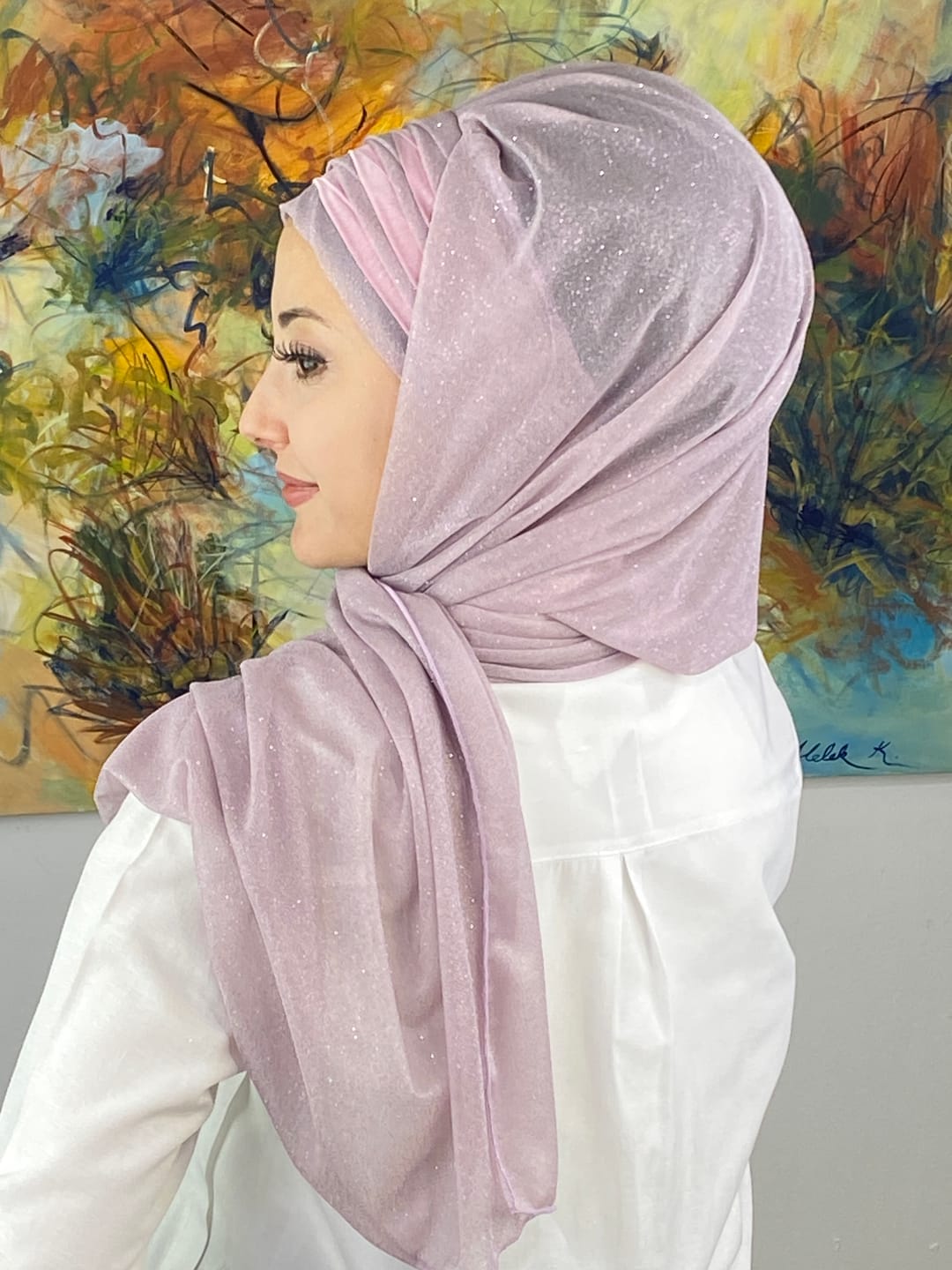 Topkapı Model Çapraz Drapeli Fransız Şifon Simli Şal – Açık Lila, gardırobunuzda mutlaka yer alması gereken romantik ve zarif bir parçadır.