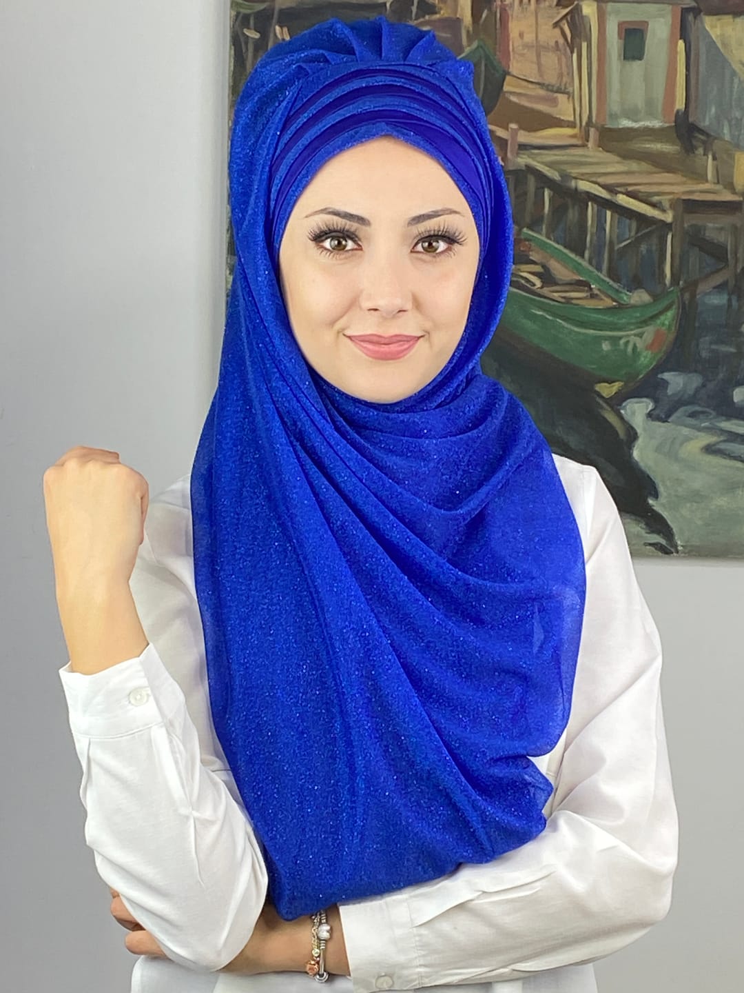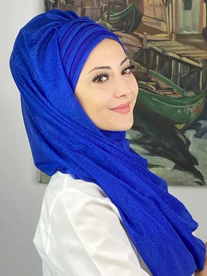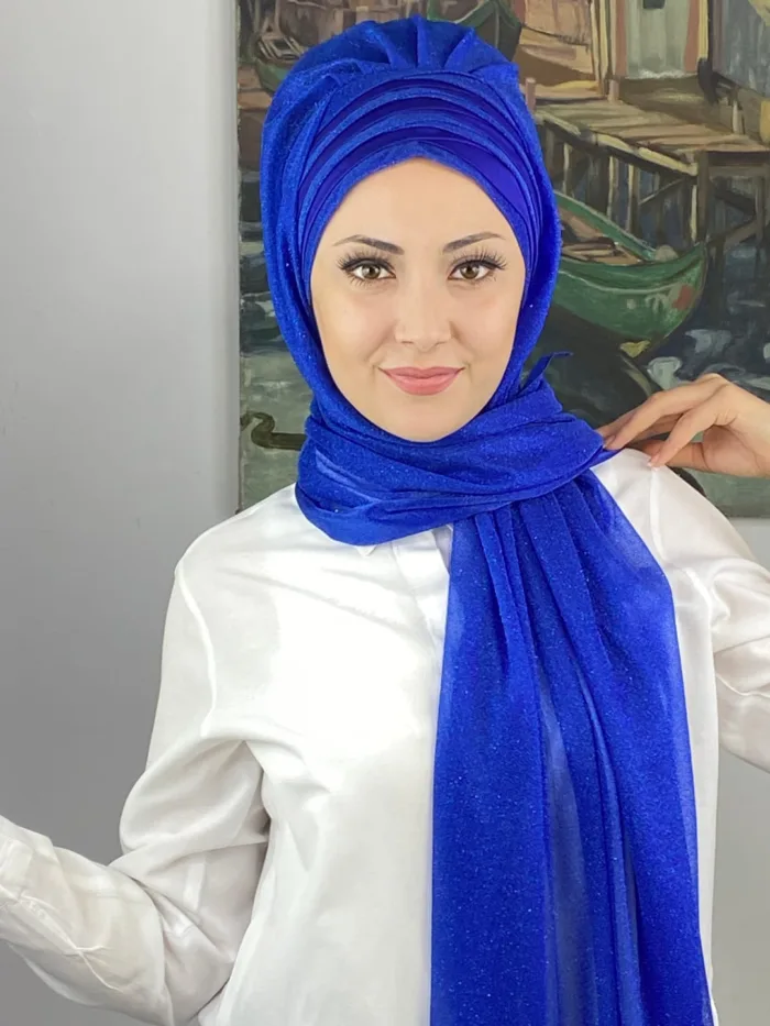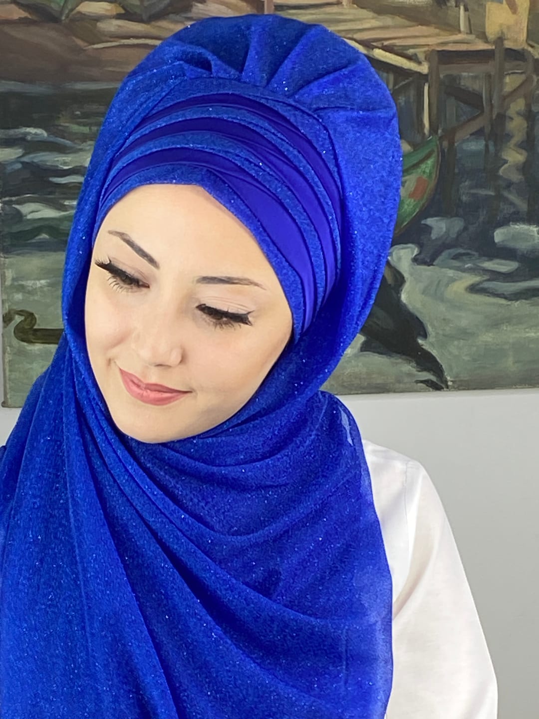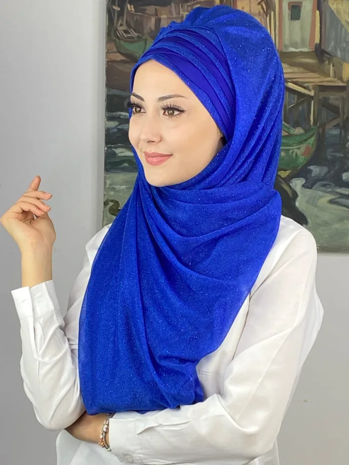 Çapraz drape detayı; yüz hattını belirginleştirir ve başı daha zarif gösterir. Hazır model olduğu için hem pratik hem de kusursuz bir duruş sağlar.