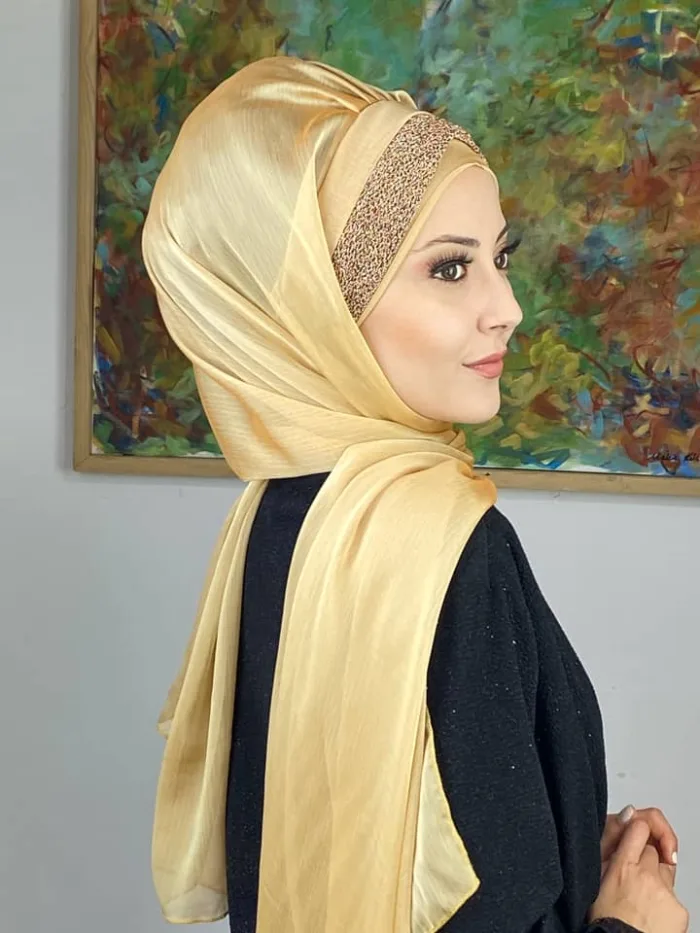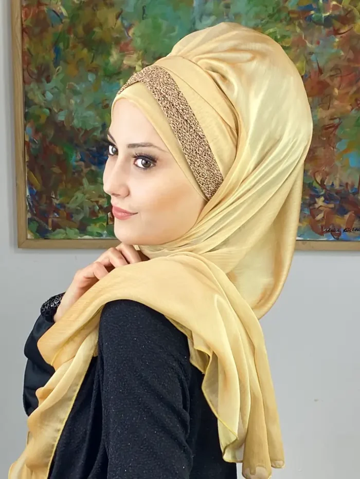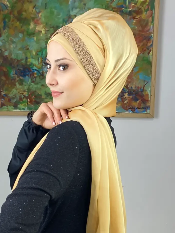 Altın rengin zarafeti, Topkapı Model Drapeli Şal’da yeniden hayat buluyor. Işıltılı ama göz yormayan altın tonu, bu şalı özel günlerin en zarif parçası haline getiriyor. Drapeli formu ise modern bir dokunuş katarak kusursuz bir görünüm sağlar.