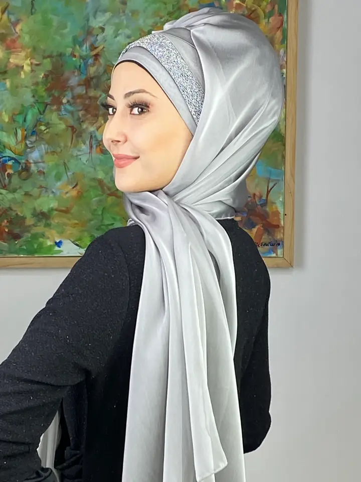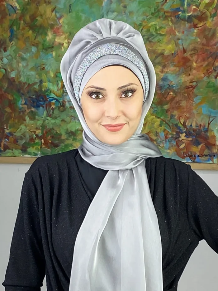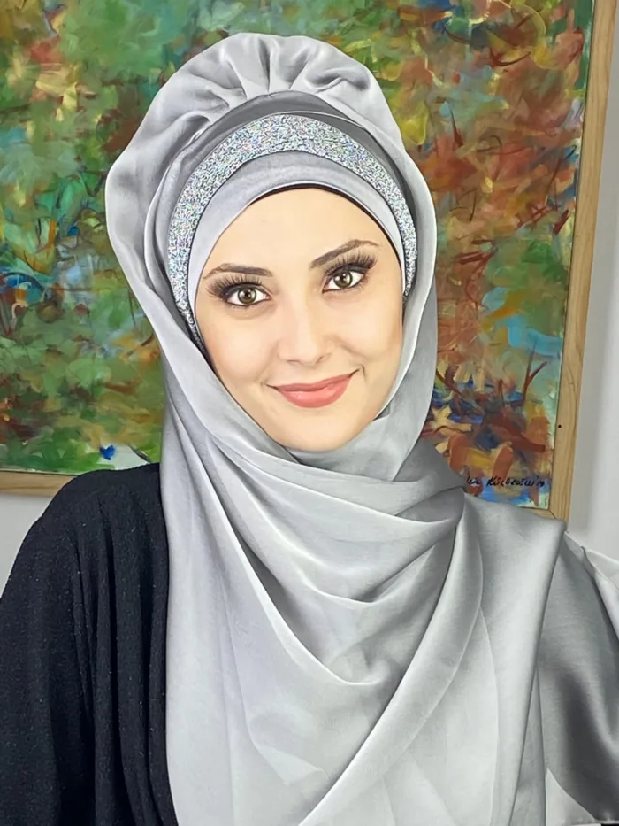 Topkapı Model Drapeli Şal – Gümüş, modern çizgileriyle klasik zarafeti buluşturan özel bir tasarımdır. Gümüş tonunun yansıttığı sofistike duruş, drapeli formun zarafetiyle birleşerek her ortamda dikkat çekici bir görünüm sunar. Gümüşün yumuşak ışıltısı, hem sade kombinlere şıklık katar hem de özel günlerde göz kamaştırır.