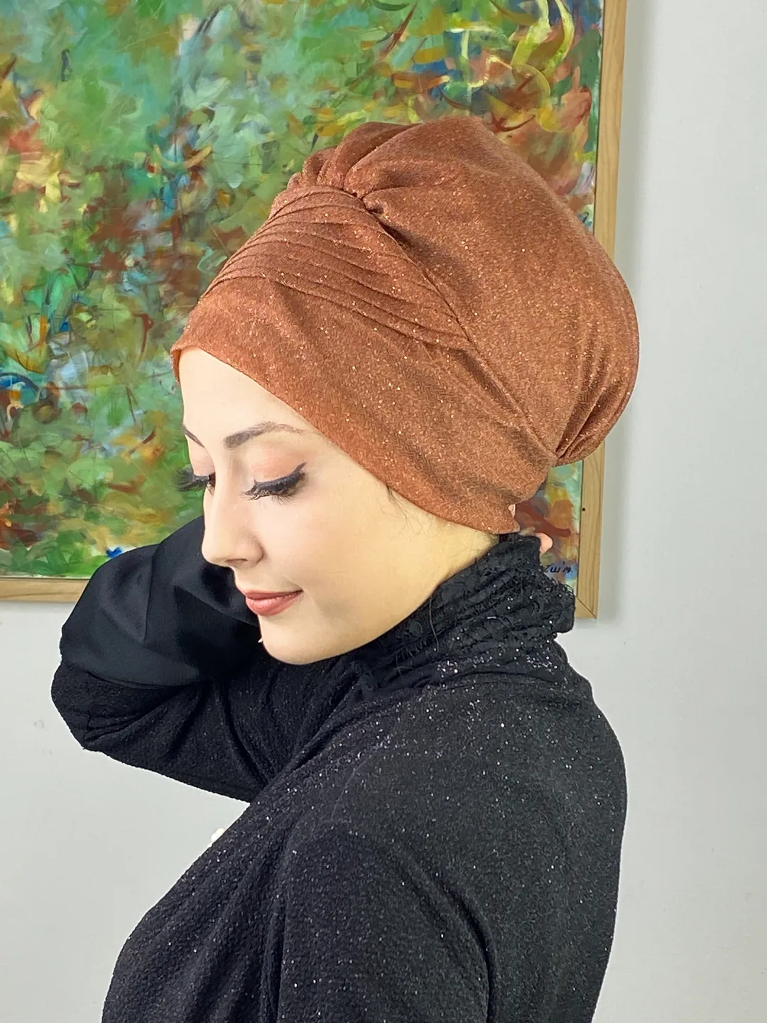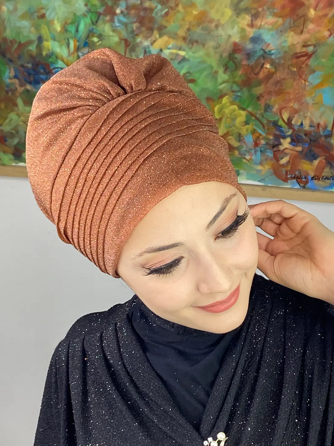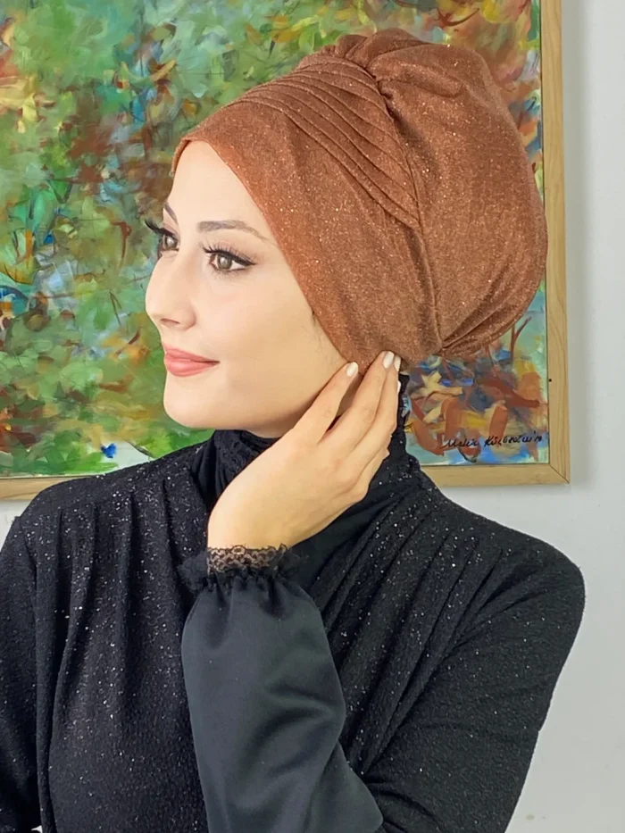 Açık bakır yan drapeli bone, zarif detayları ve modern formu ile özel bir görünüm sunar.