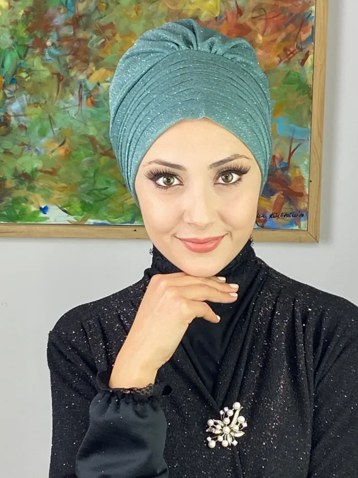 Açık zümrüt çapraz drapeli bone, hem günlük kullanım hem de özel günler için mükemmel bir seçimdir.