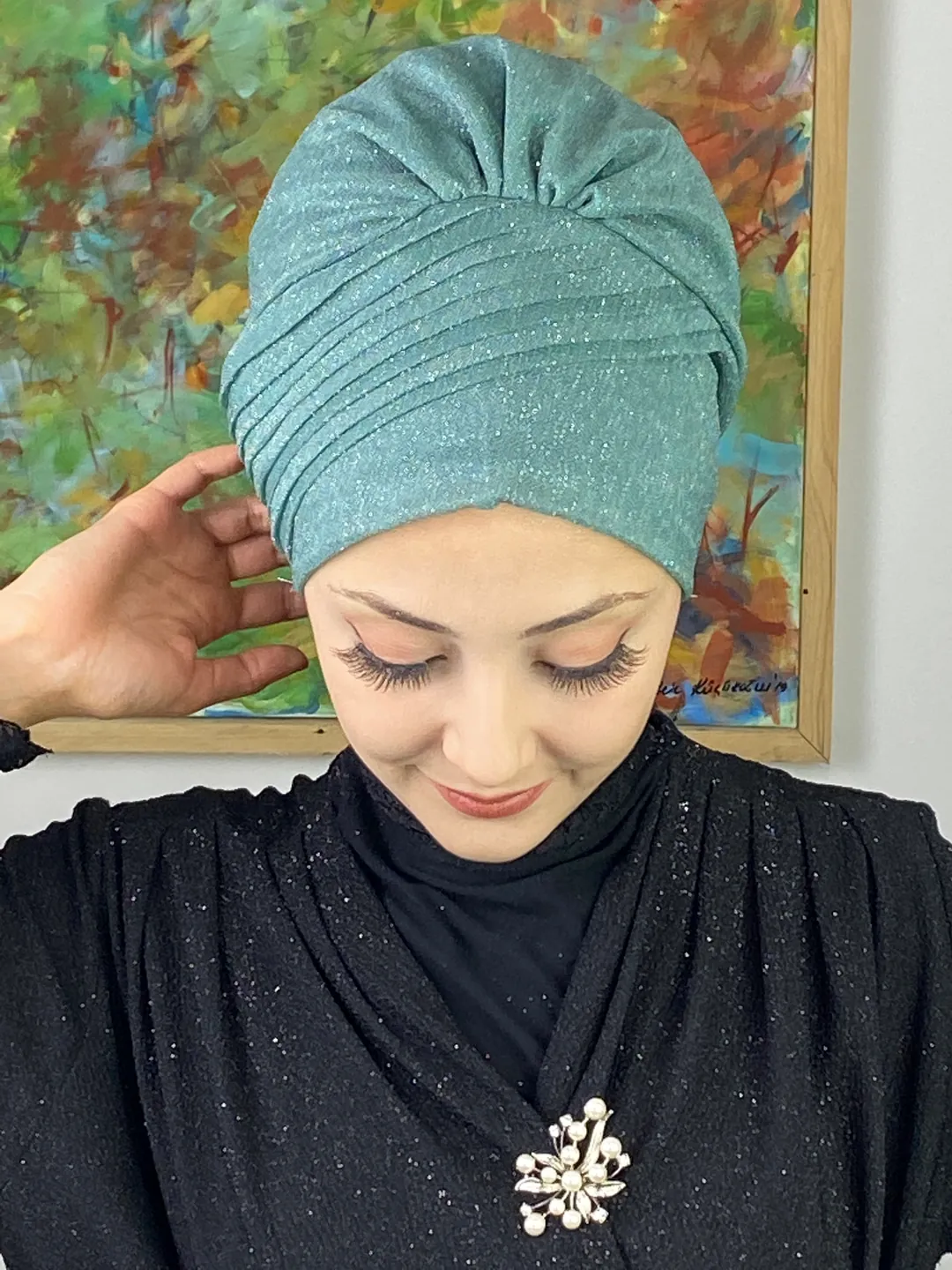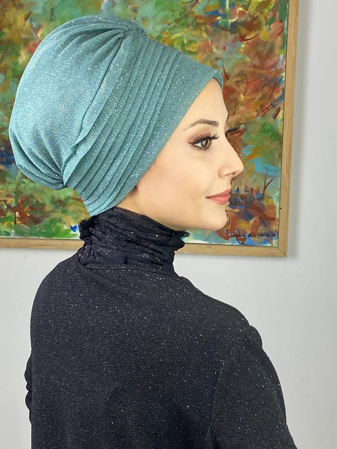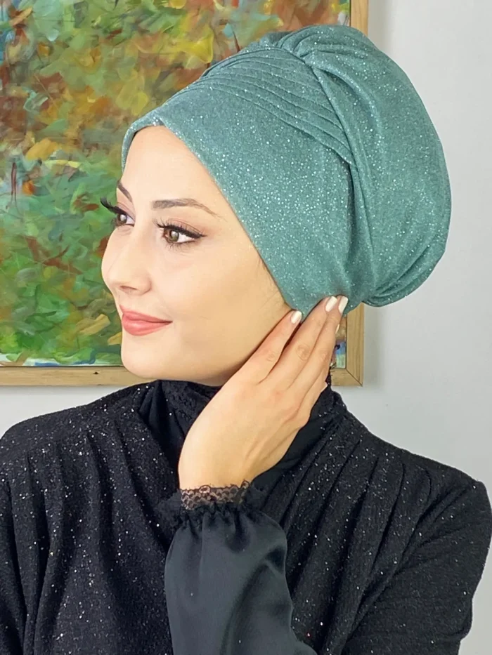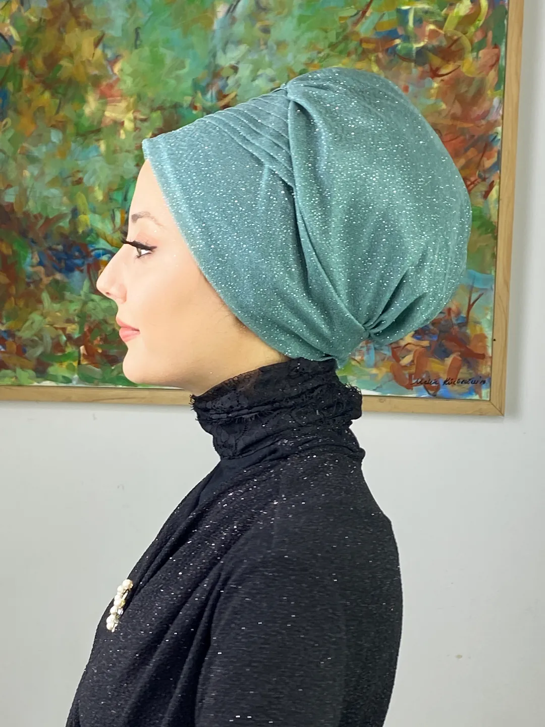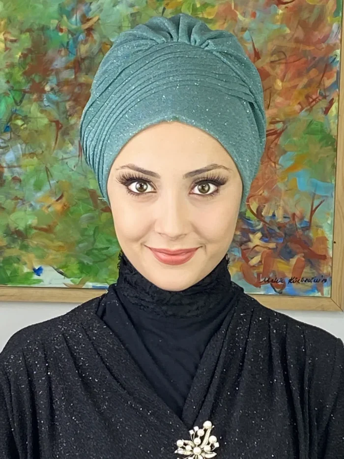Açık Zümrüt Yan Drapeli Bone ile Doğal Zarafetin Işıltısı