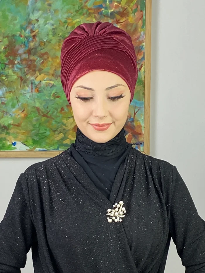Saray Model Simli Yan Drapeli Dış Bone – Bordo