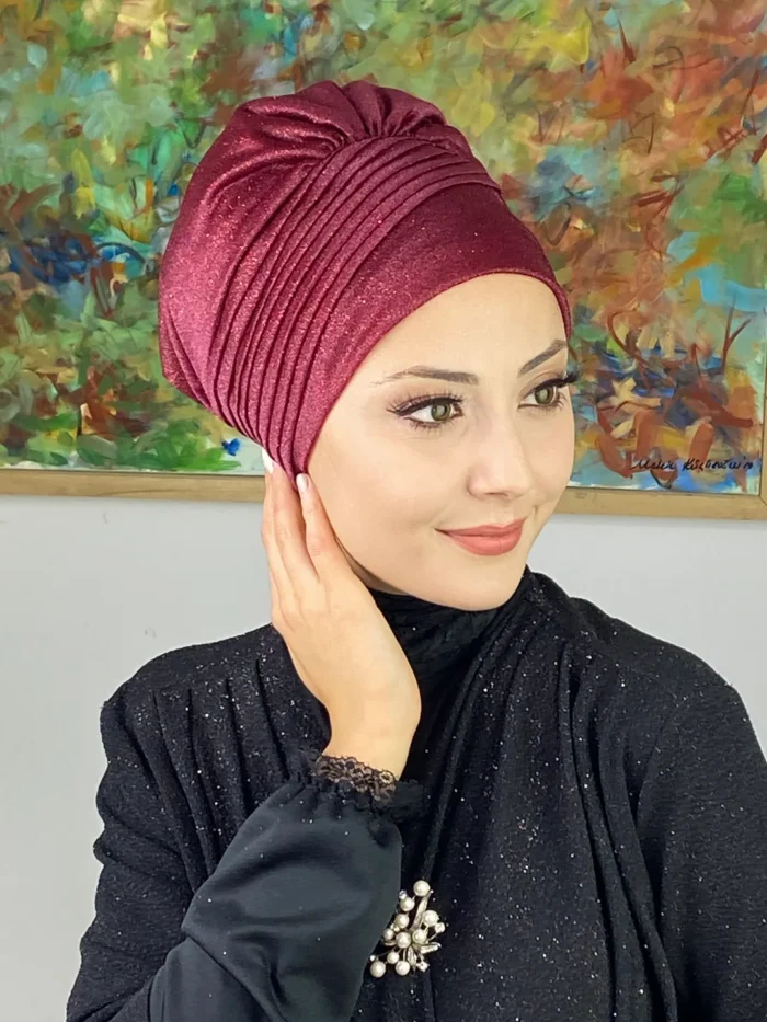 Klasik renklerin en zarif hali olan bordo, drapeli formun estetik çizgileriyle birleşerek benzersiz bir görünüm sunar.