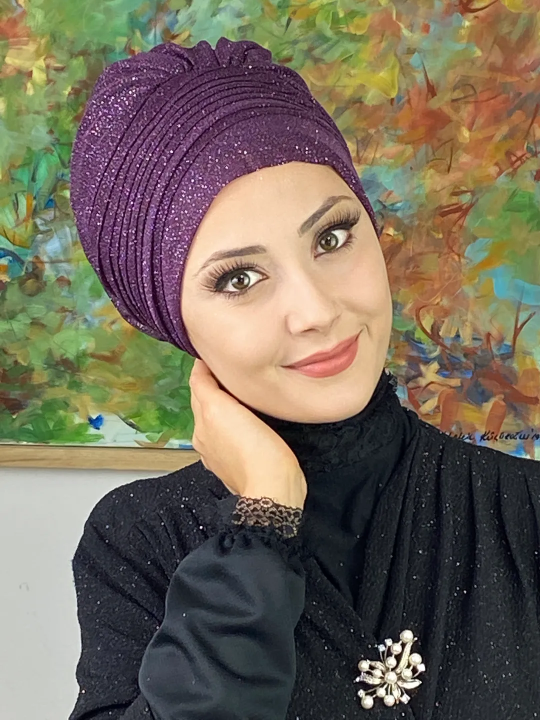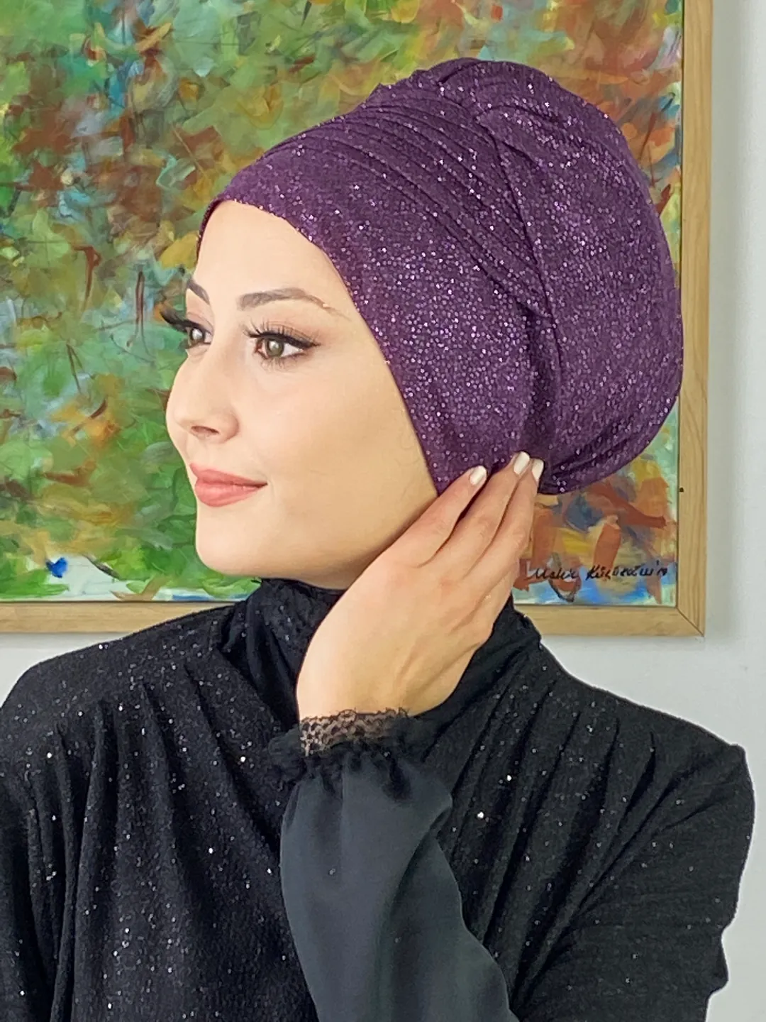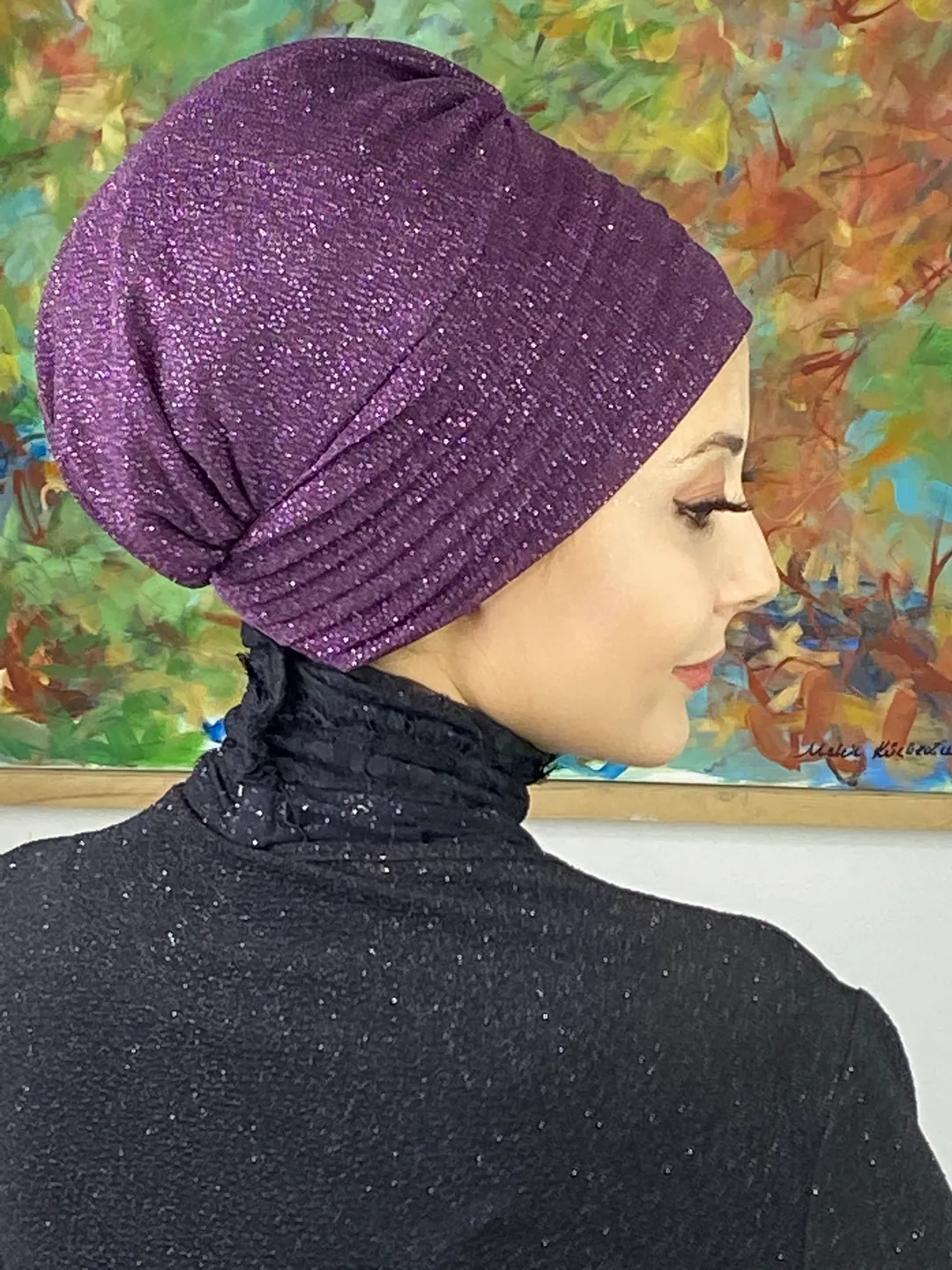 Göz alıcı mor tonuyla öne çıkan bu yan drapeli bone, sade şıklığı zarif detaylarla buluşturuyor.