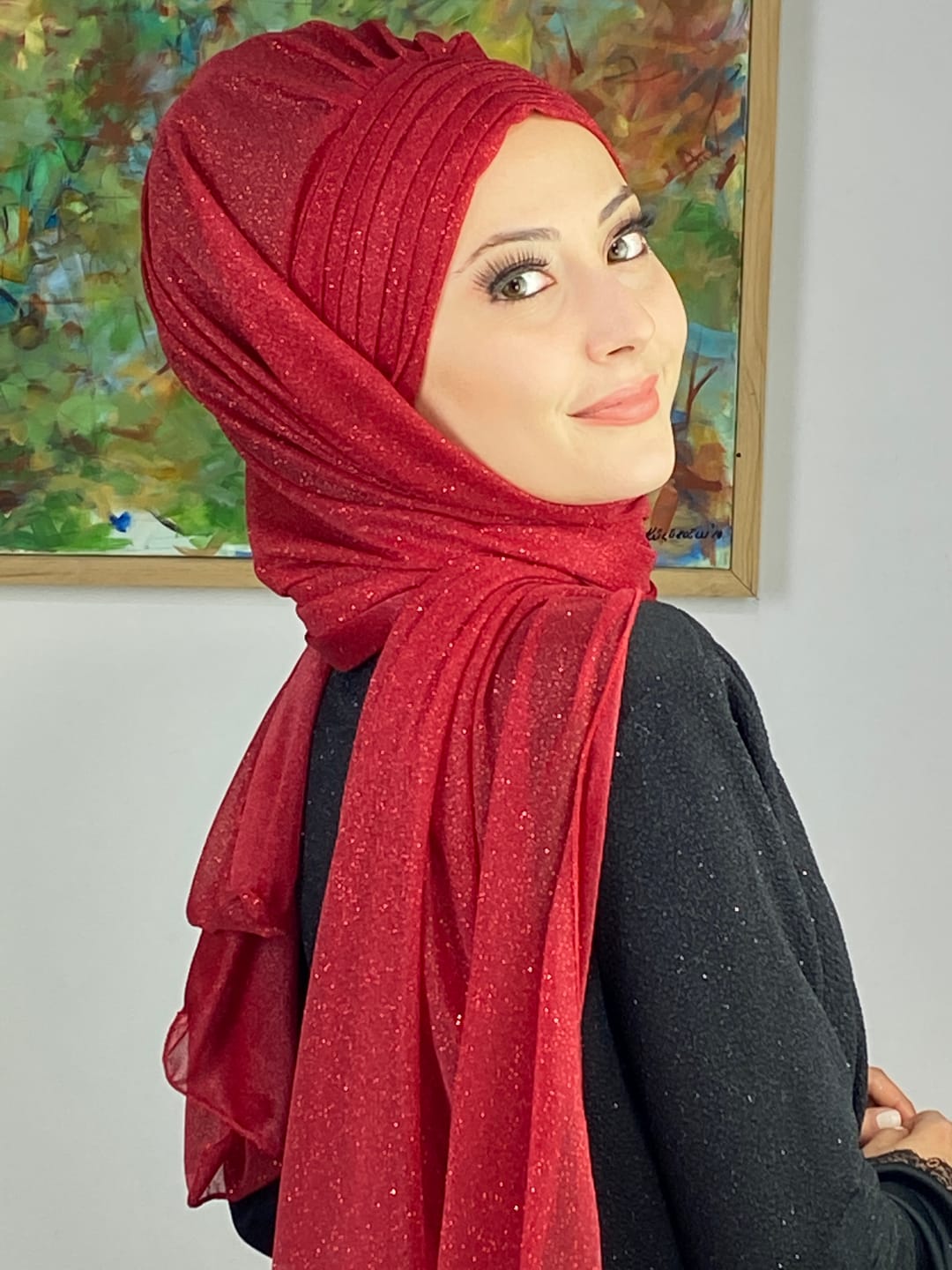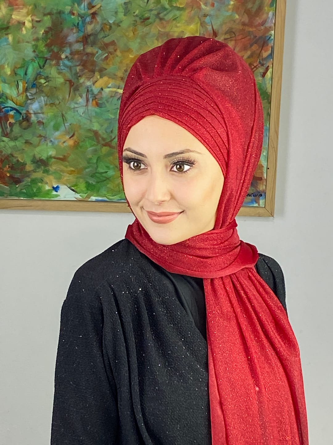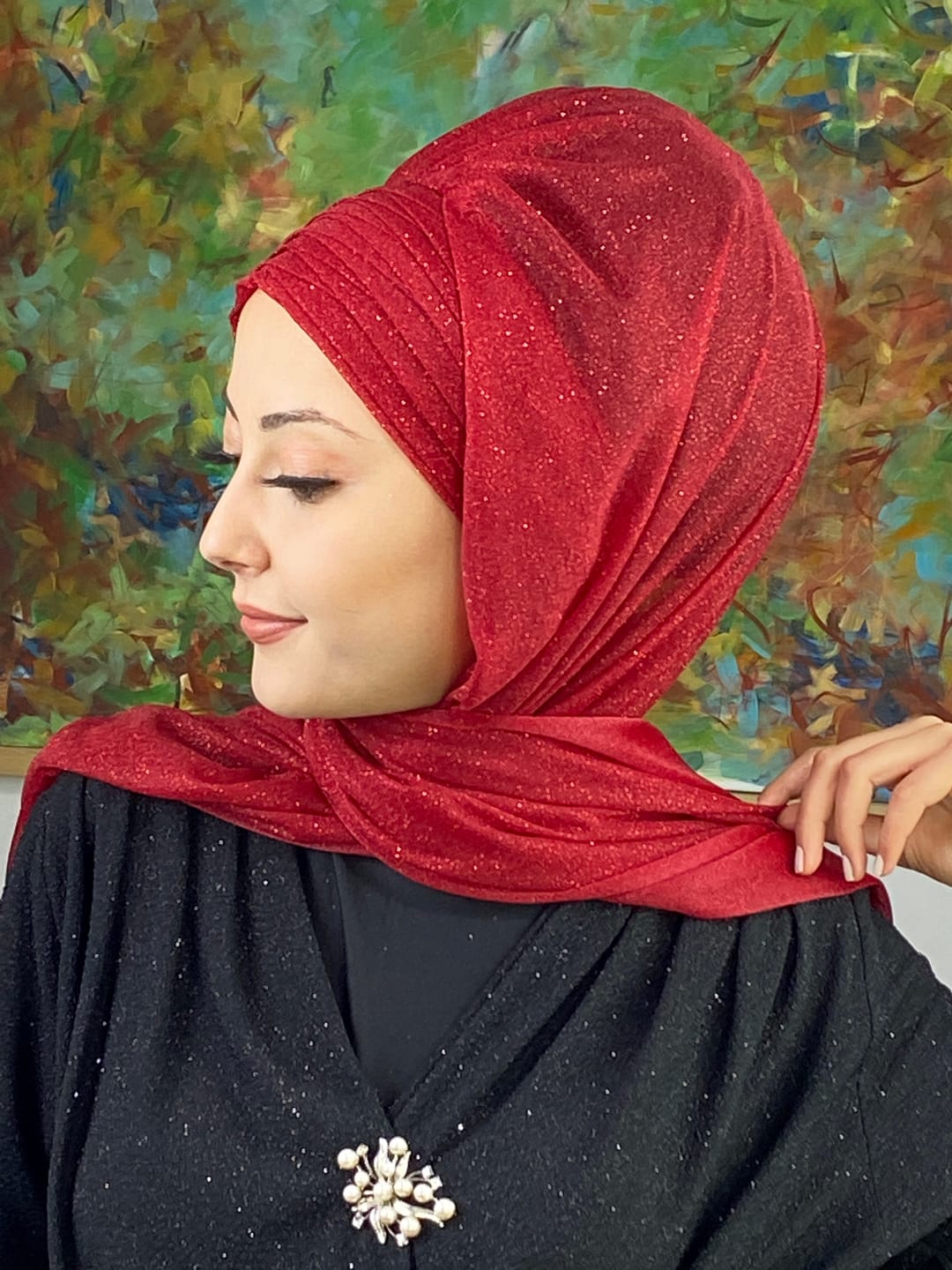 Kırmızı, Topkapı Simli Çapraz Drapeli Hazır Şal ile birleştiğinde özel günlerde hem iddialı hem sofistike bir şıklık sunar. Kırmızının canlı ve dikkat çekici tonu, simli şifon dokusuyla birleşerek abiye kombinlerde göz alıcı bir son dokunuş sağlar. Çapraz drape yapısı, yüz hatlarını toplar ve başta kusursuz bir duruş sunar. Simli detaylar ışıkla birleştiğinde tüm bakışları üzerinize çeker.