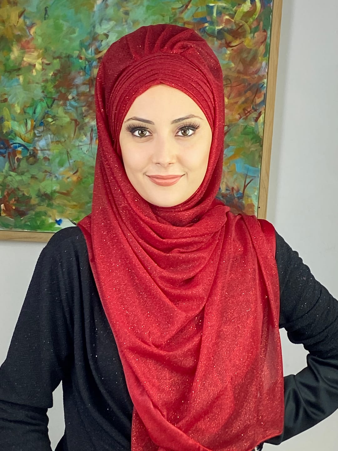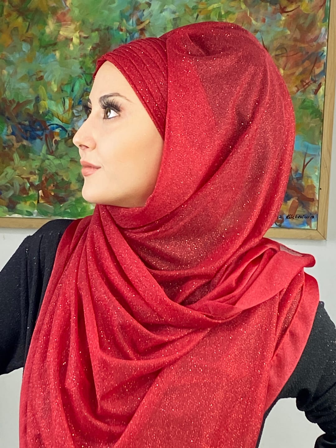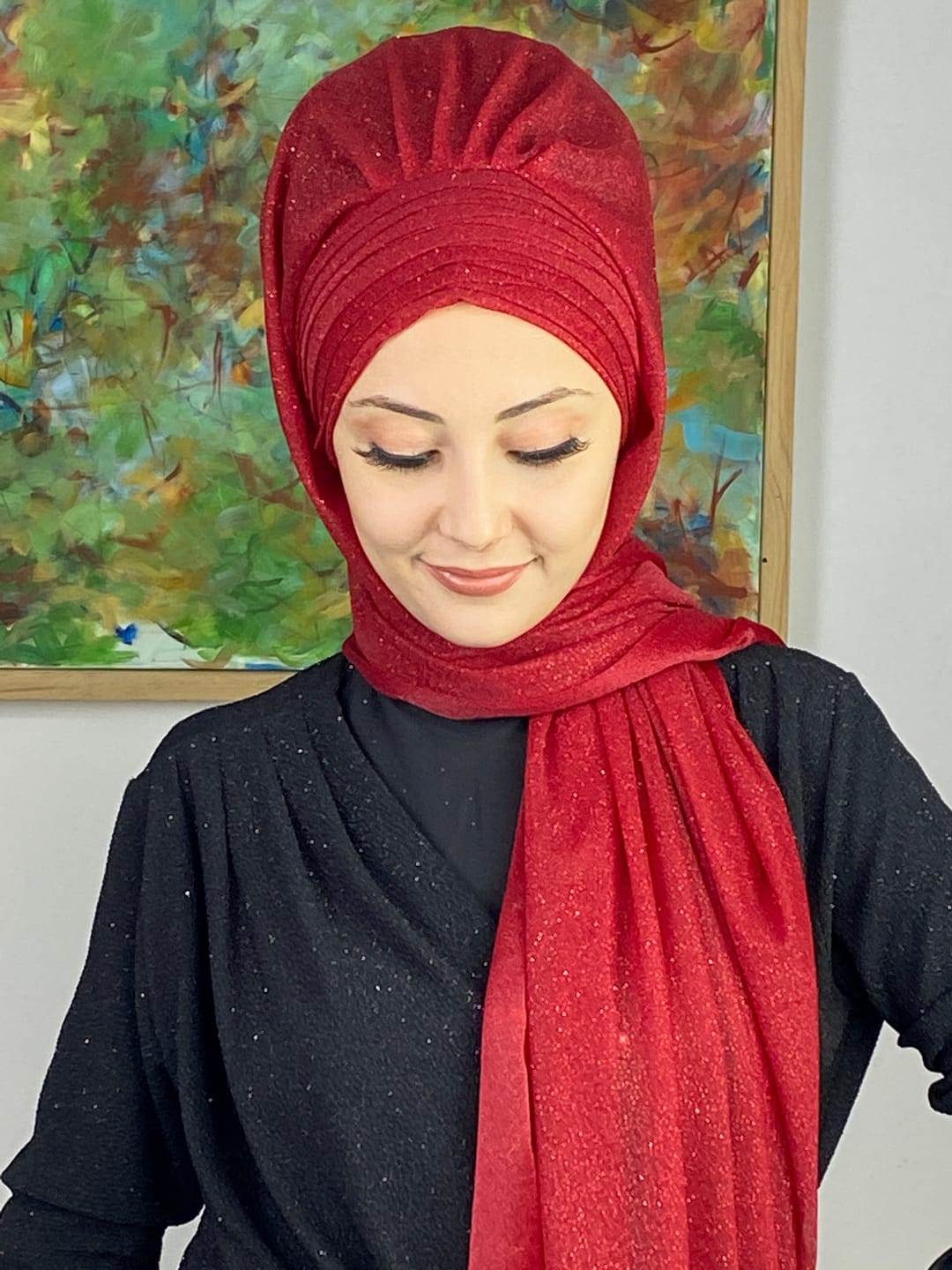 Kırmızı, Topkapı Simli Çapraz Drapeli Hazır Şal ile birleştiğinde özel günlerde hem iddialı hem sofistike bir şıklık sunar. Kırmızının canlı ve dikkat çekici tonu, simli şifon dokusuyla birleşerek abiye kombinlerde göz alıcı bir son dokunuş sağlar. Çapraz drape yapısı, yüz hatlarını toplar ve başta kusursuz bir duruş sunar. Simli detaylar ışıkla birleştiğinde tüm bakışları üzerinize çeker.