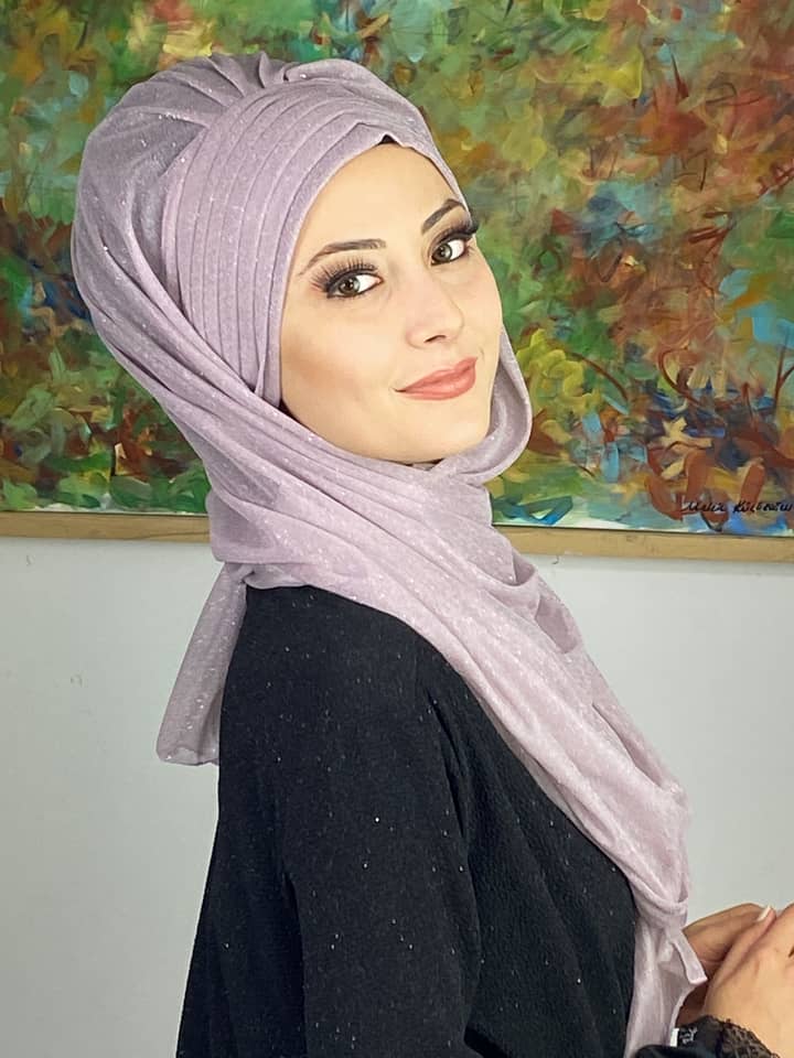 Topkapı Simli Çapraz Drapeli Hazır Şal – Lila, gardırobunuzda mutlaka bulunması gereken romantik ve zarif bir parçadır.