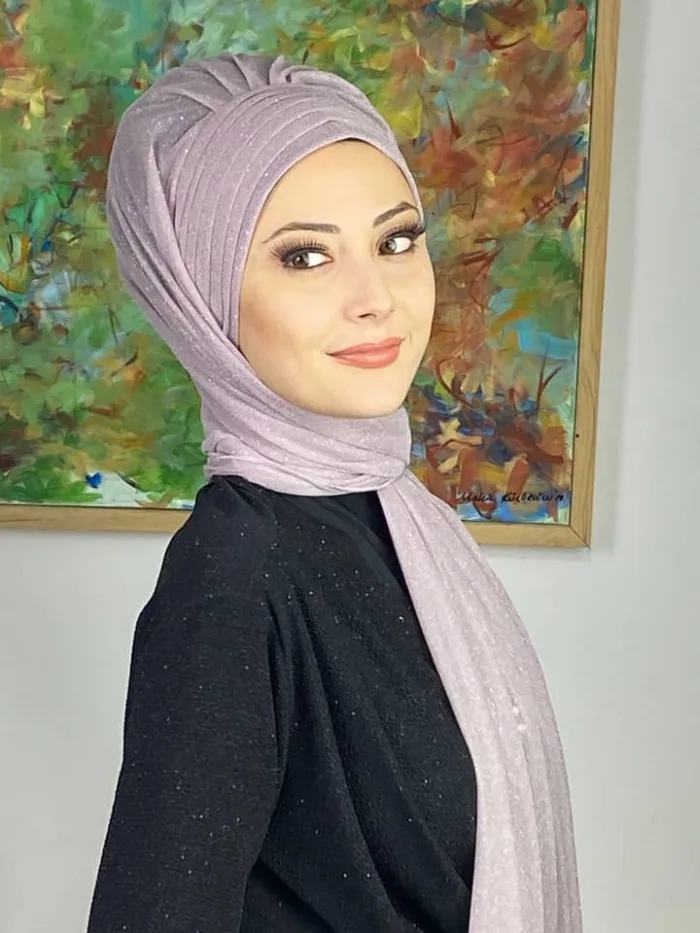 Topkapı Simli Çapraz Drapeli Hazır Şal – Lila, özel günlerde romantik ve zarif bir şıklık sunar. Lila rengin yumuşak ve dingin tonu, simli şifon dokusuyla birleşerek abiye kombinlerde göz alıcı bir son dokunuş sağlar. Çapraz drape tasarımı, yüz hatlarını toparlar ve başta kusursuz bir duruş sağlar. Simli detaylar ışıkla buluştuğunda tüm bakışlar üzerinize çevrilir.
