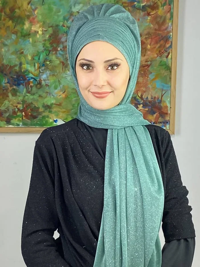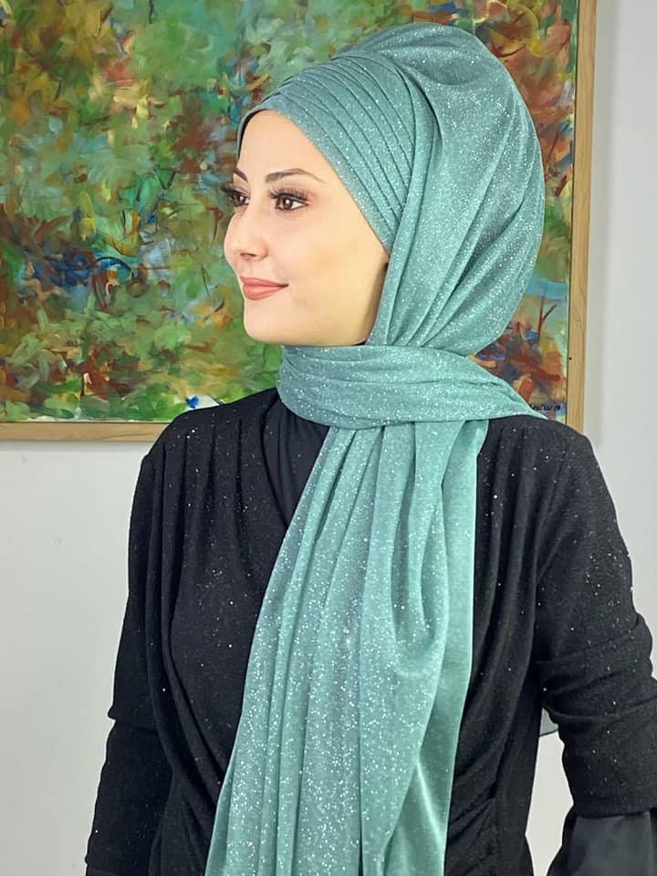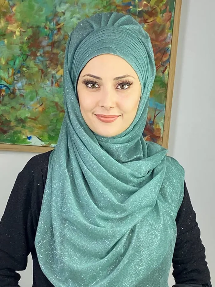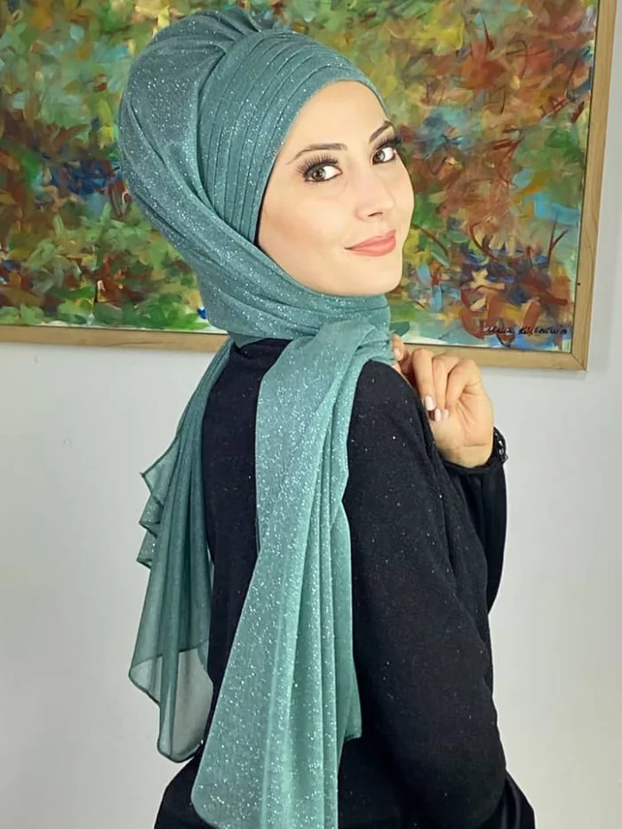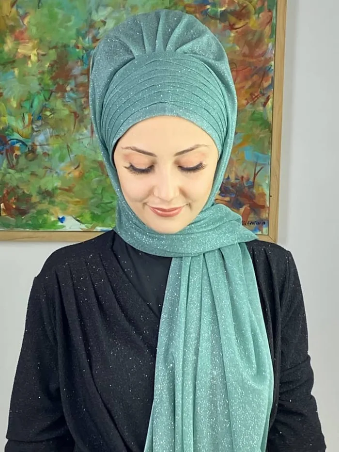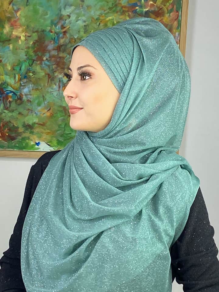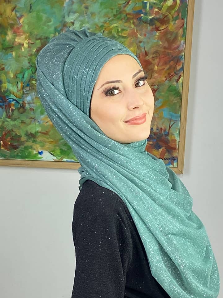 Topkapı Simli Çapraz Drapeli Hazır Şal – Su Yeşili, gardırobunuzda mutlaka bulunması gereken ferah ve zarif bir parçadır.