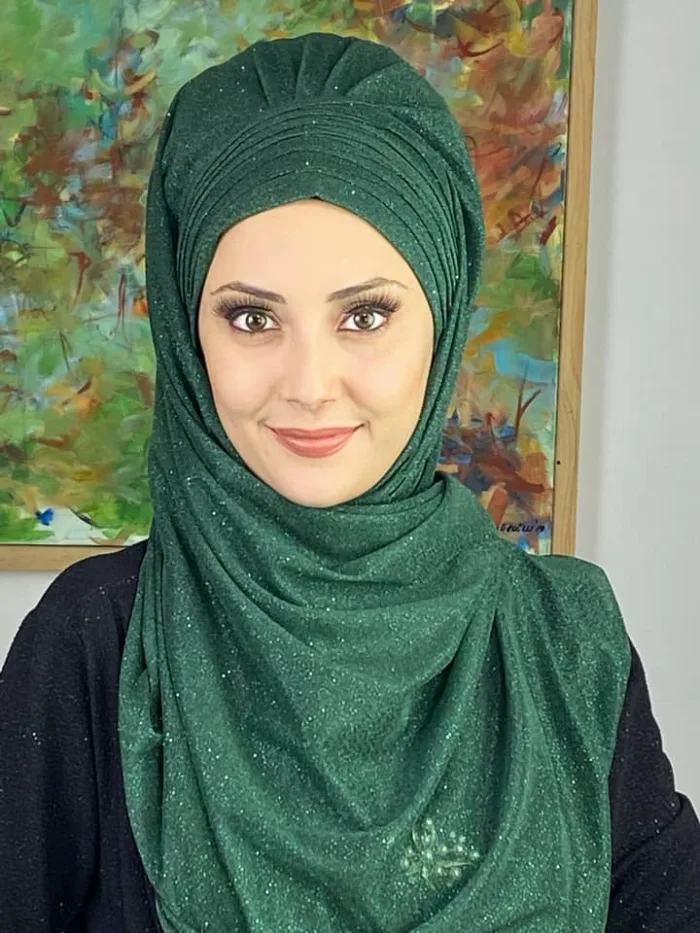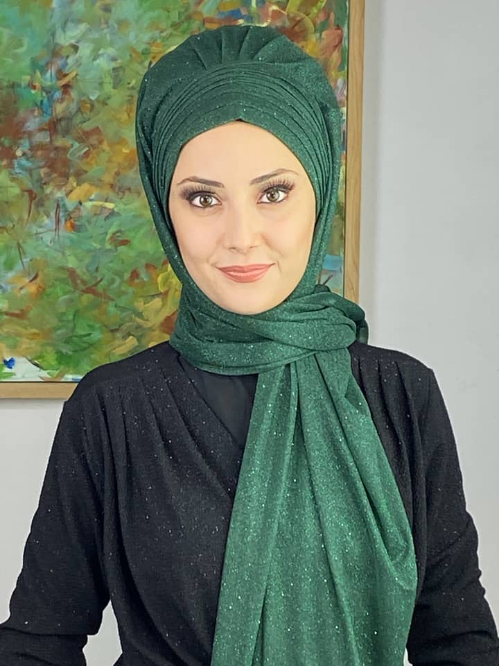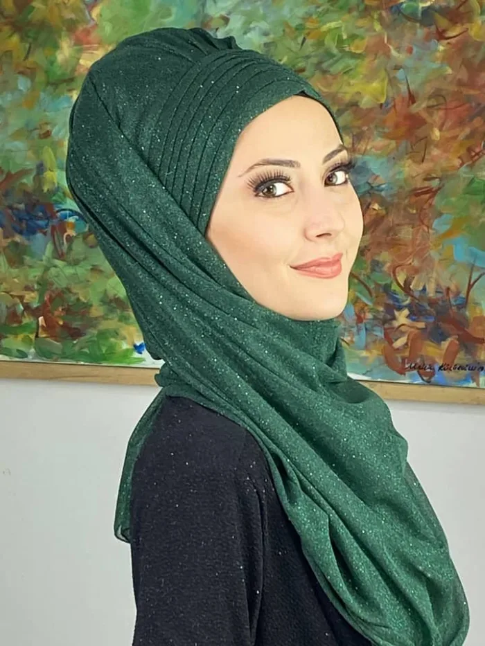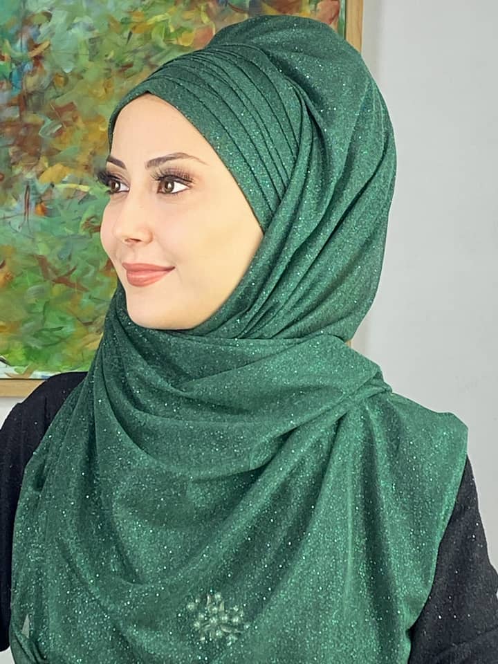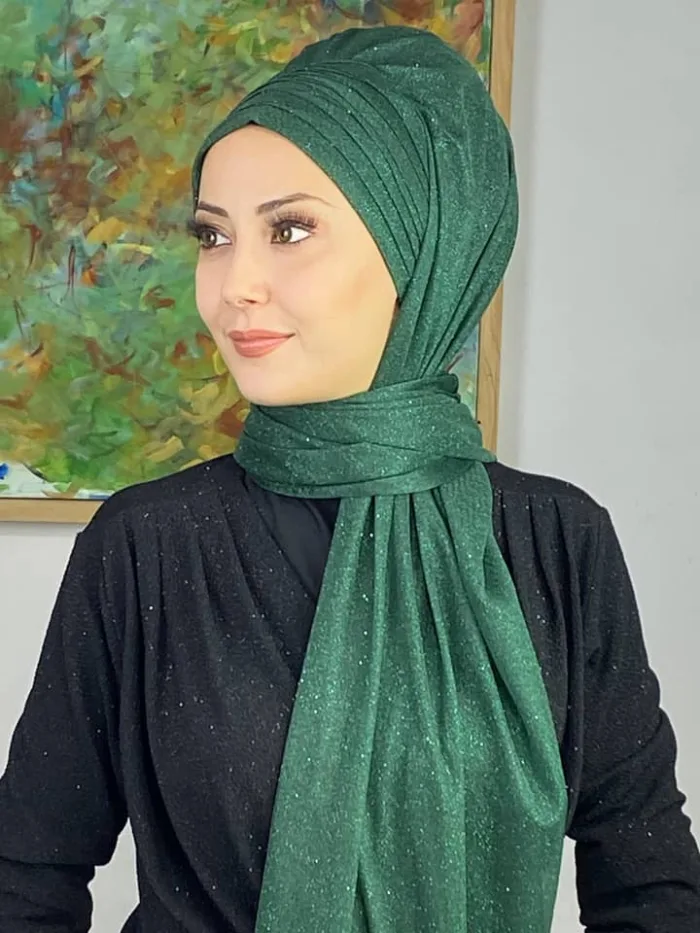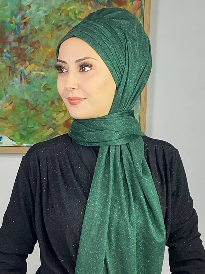 Topkapı Simli Çapraz Drapeli Hazır Şal – Yakut Yeşili, gardırobunuzda bulunması gereken asil ve göz alıcı bir parçadır.