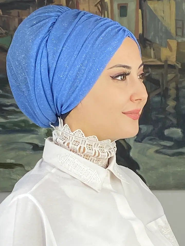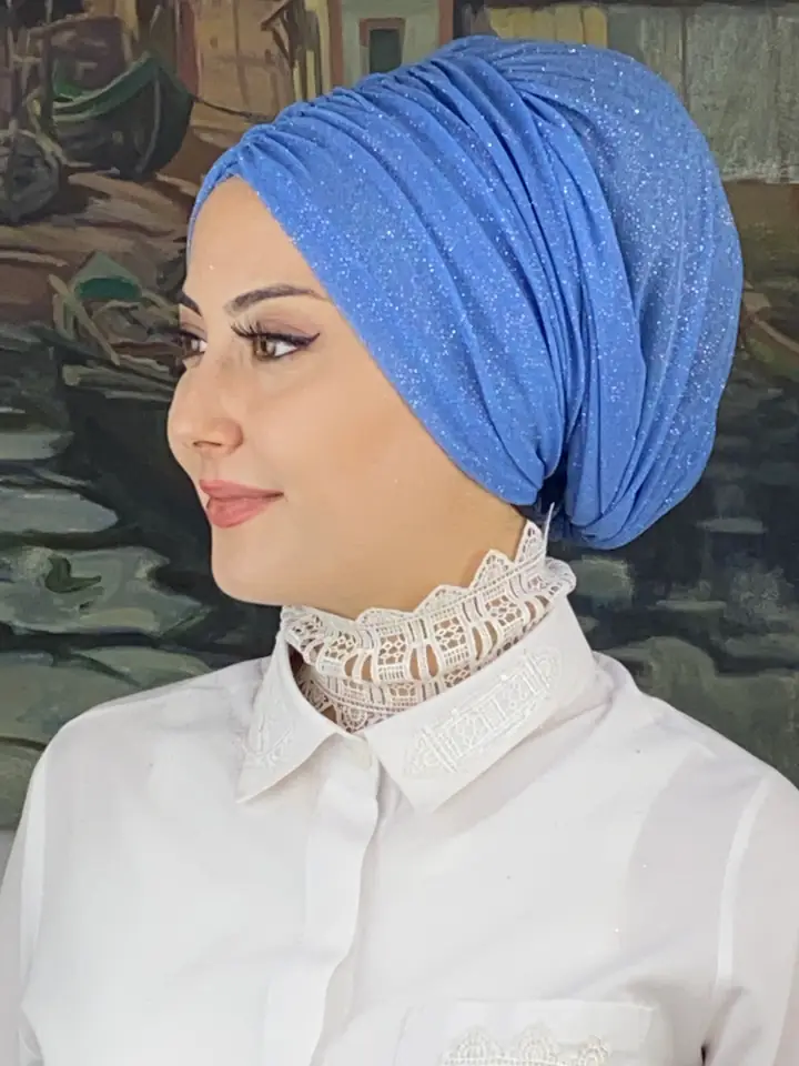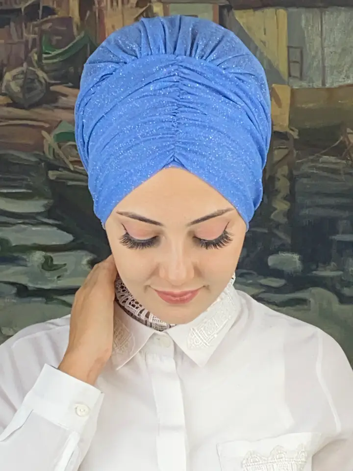 Trend Abiye Büzgülü Bone Şal – Bebe Mavisi