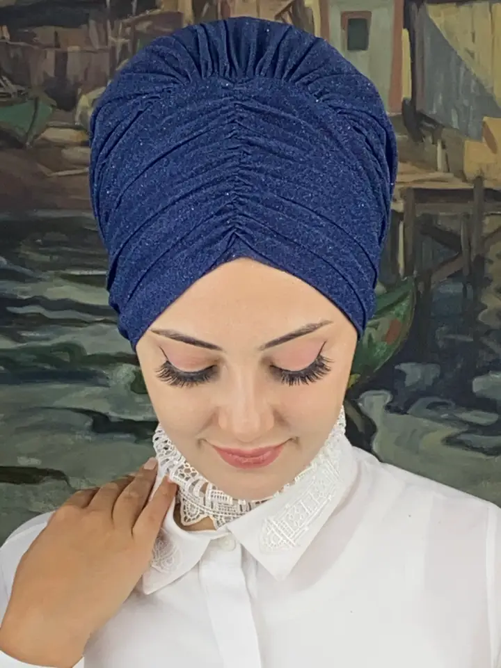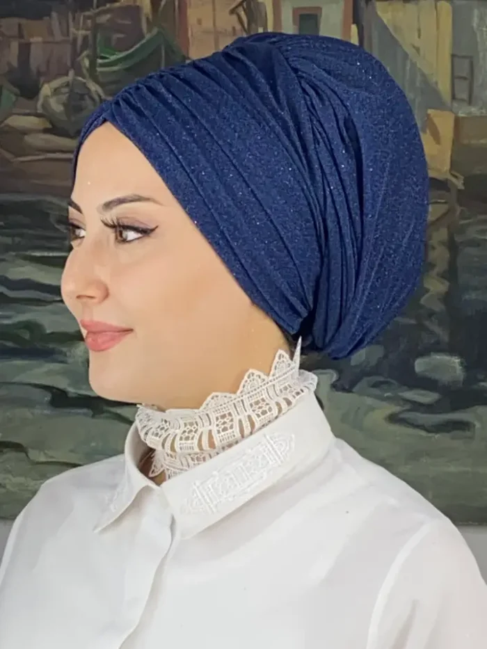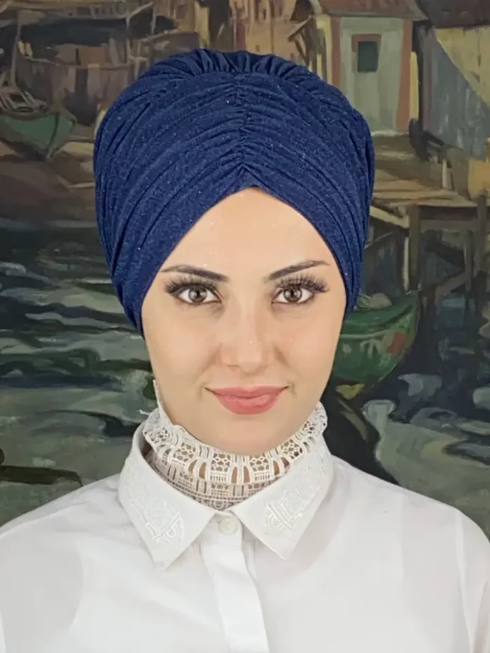 Koyu lacivert şıklığını yakalamak için Trend Abiye Büzgülü Bone Şal – Koyu Lacivert’i hemen sipariş edin!